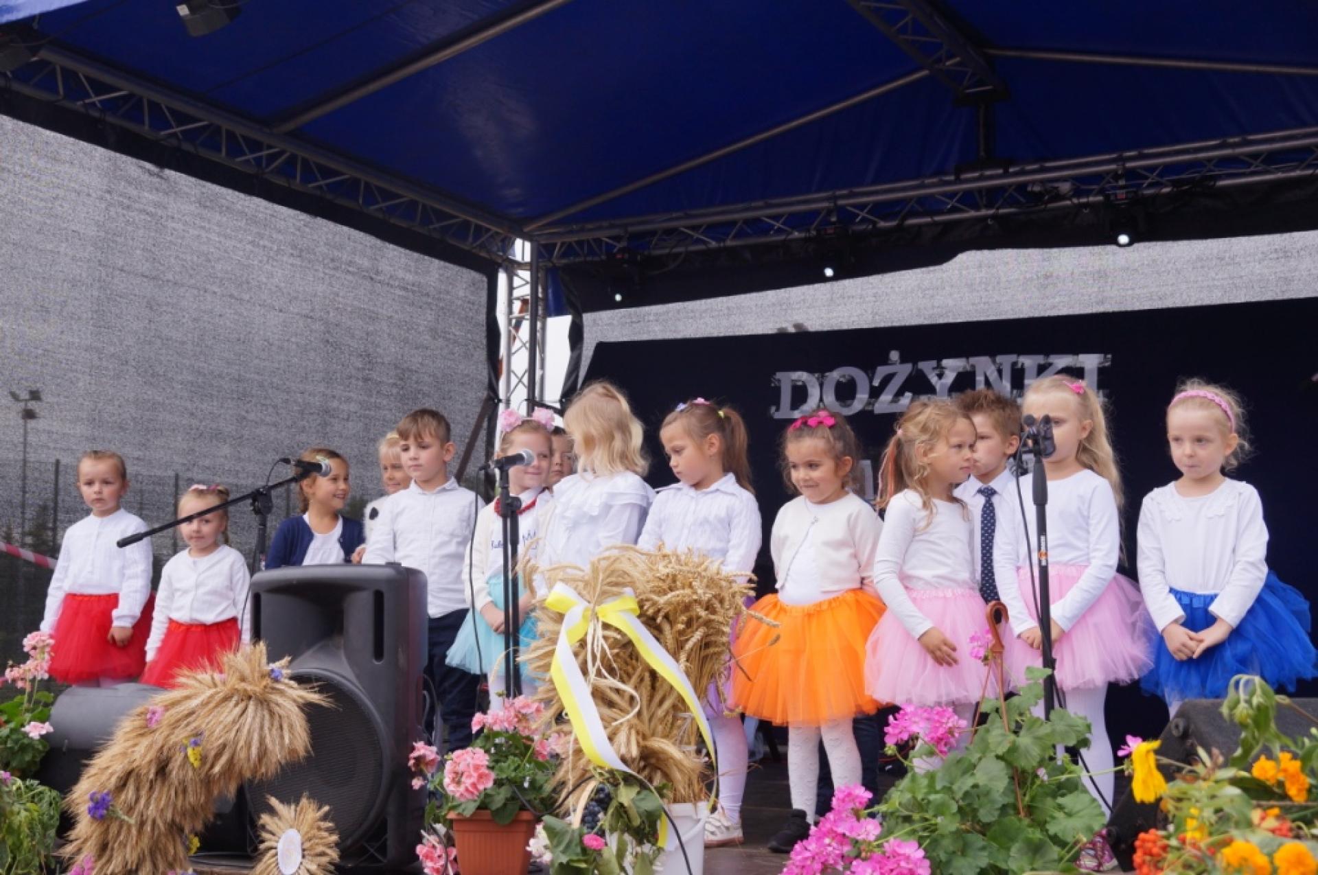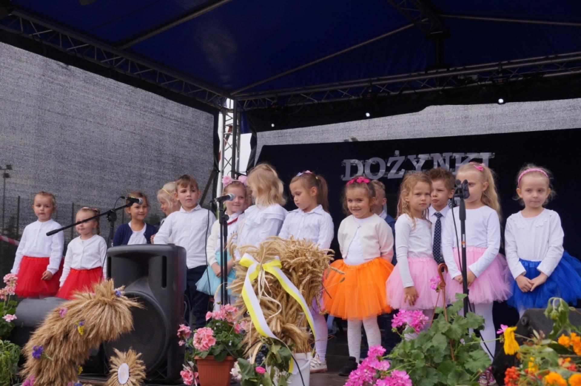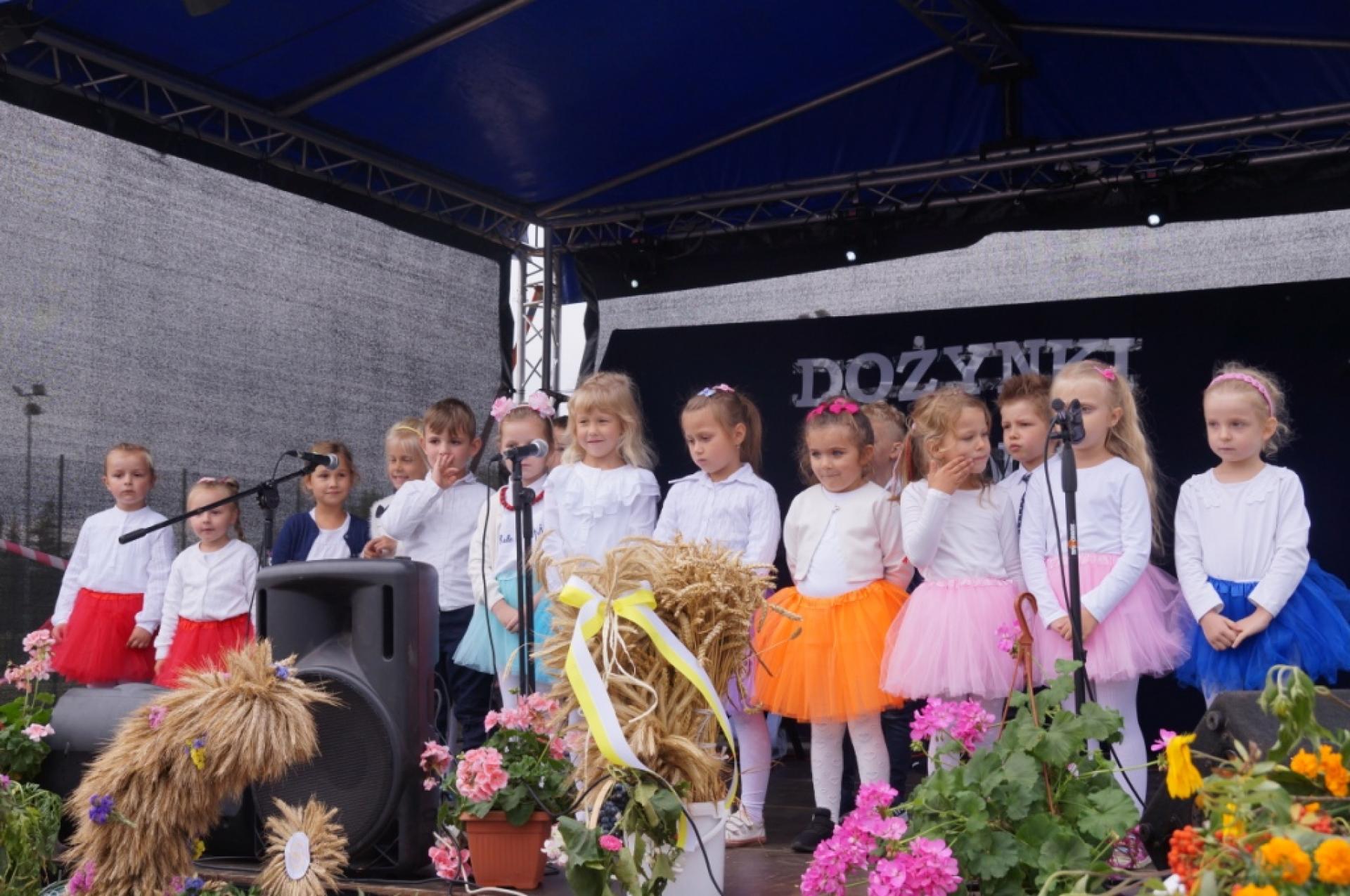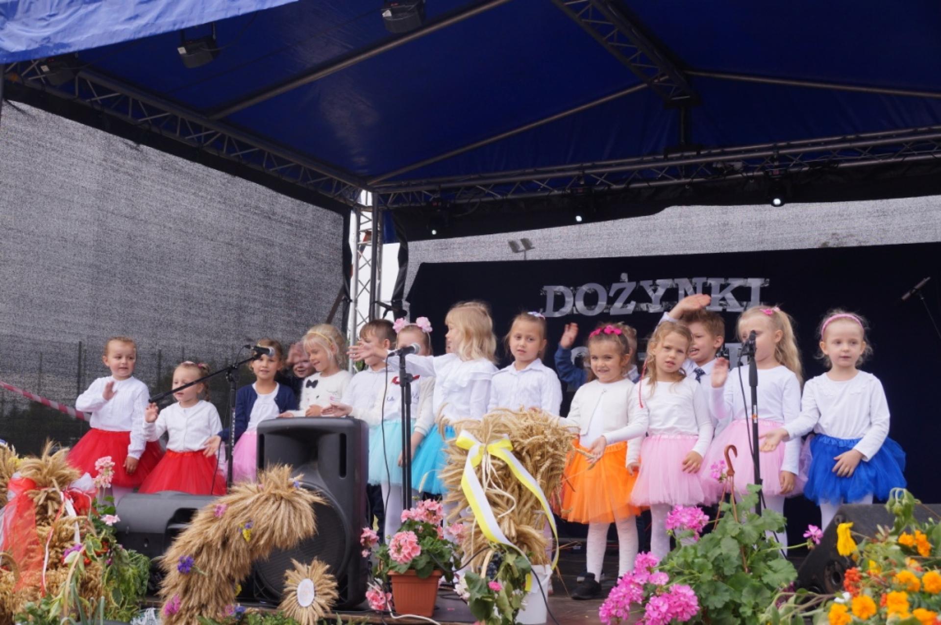 Dzisiaj dzieci z naszej grupy zaprezentowały 30 minutowy program artystyczny podczas Dożynek Gminnych w Małej Nieszawce. Przedszkolaki wystąpiły rewelacyjnie, zatańczyły, zaśpiewały i za swój występ otrzymały duże brawa. Wcześniej w korowodzie z transparentem uroczyście maszerowały ze sztandarem na plac. Dziękujemy wszystkim dzieciom i ich rodzicom za godne reprezentowanie naszego przedszkola.