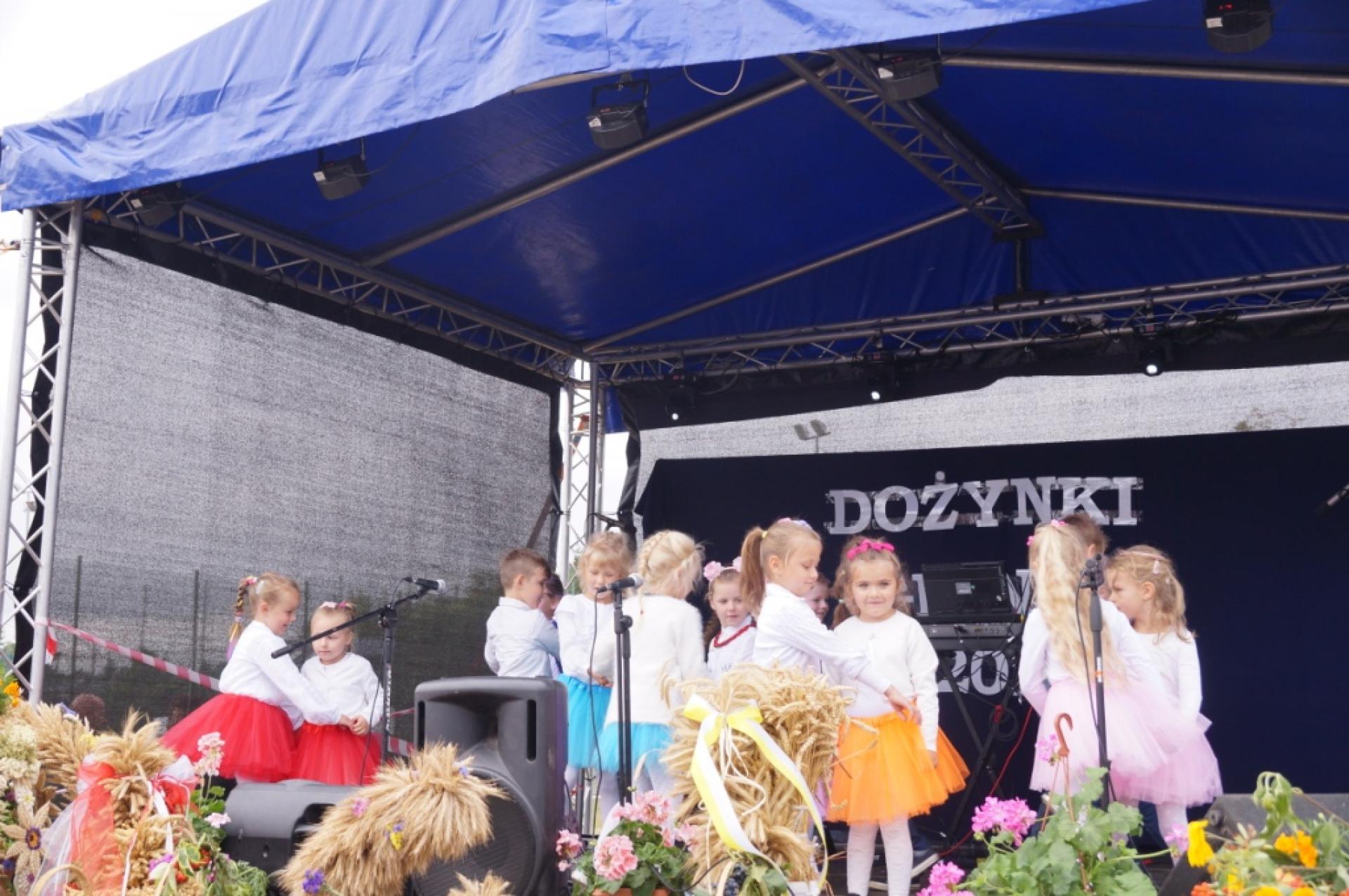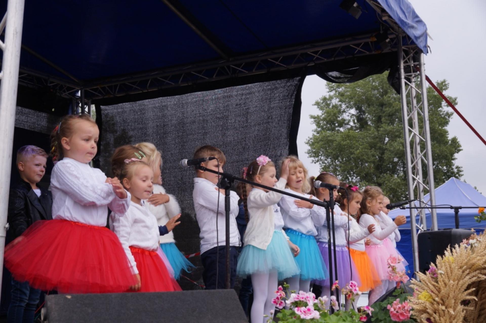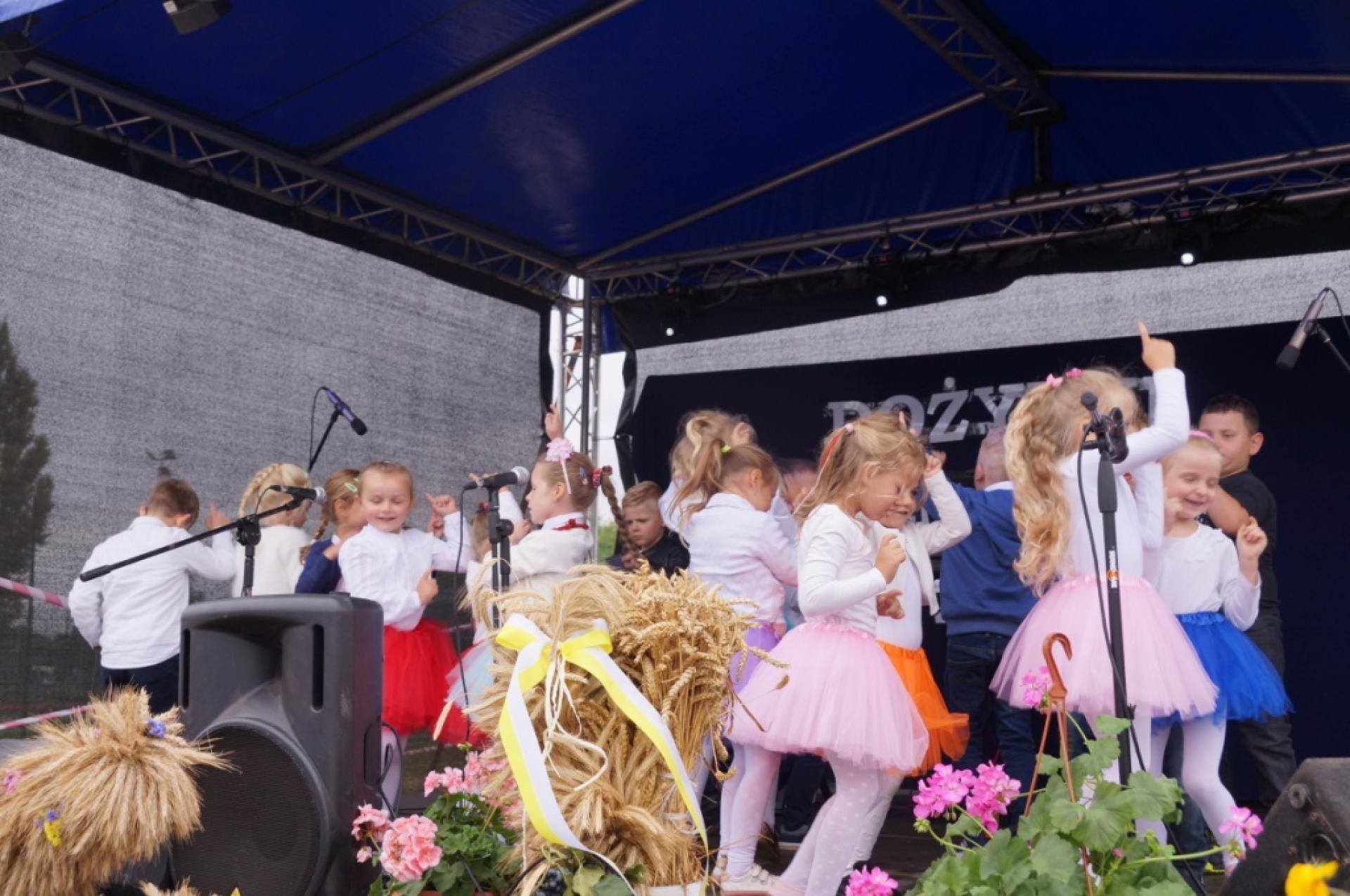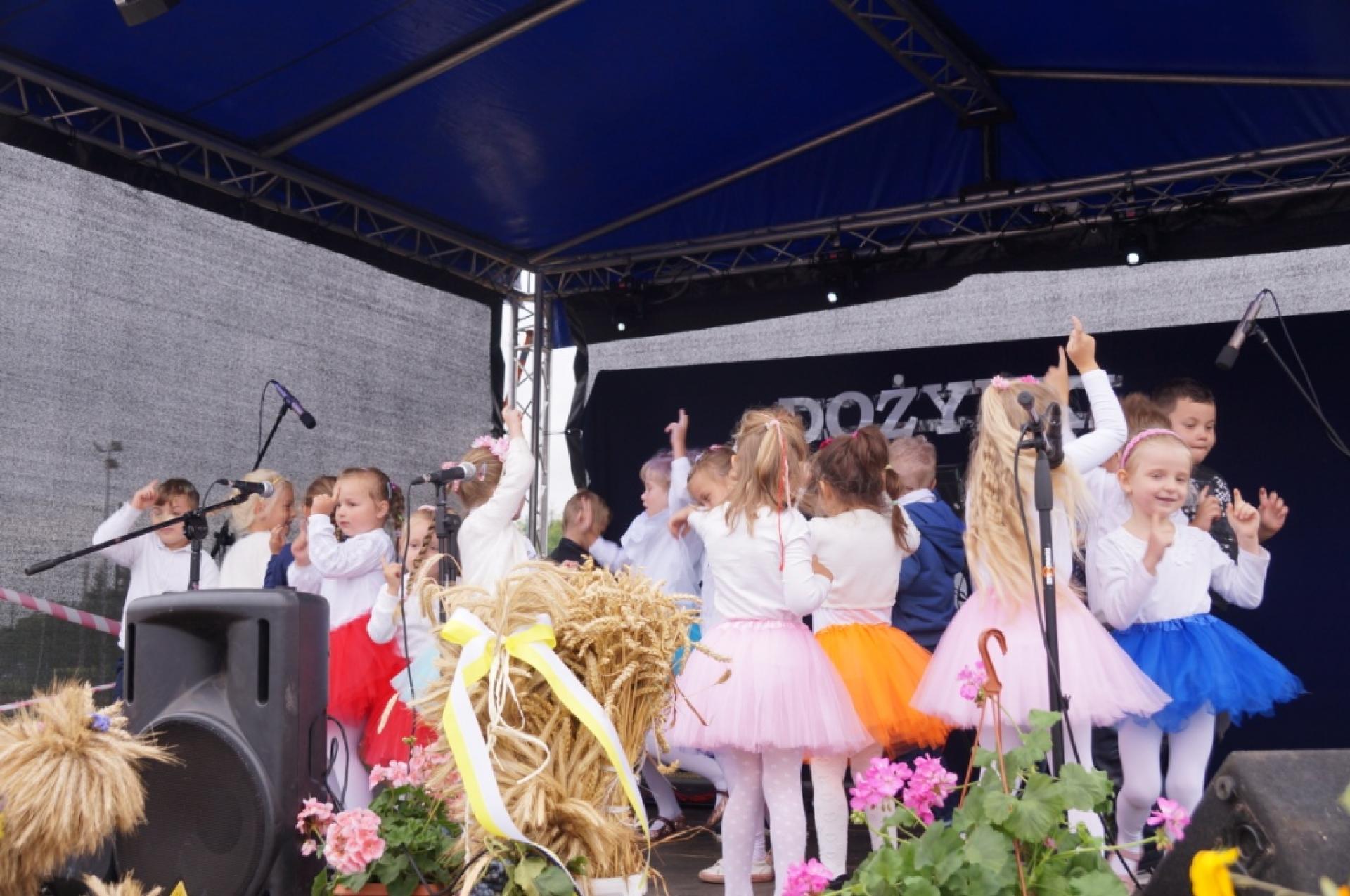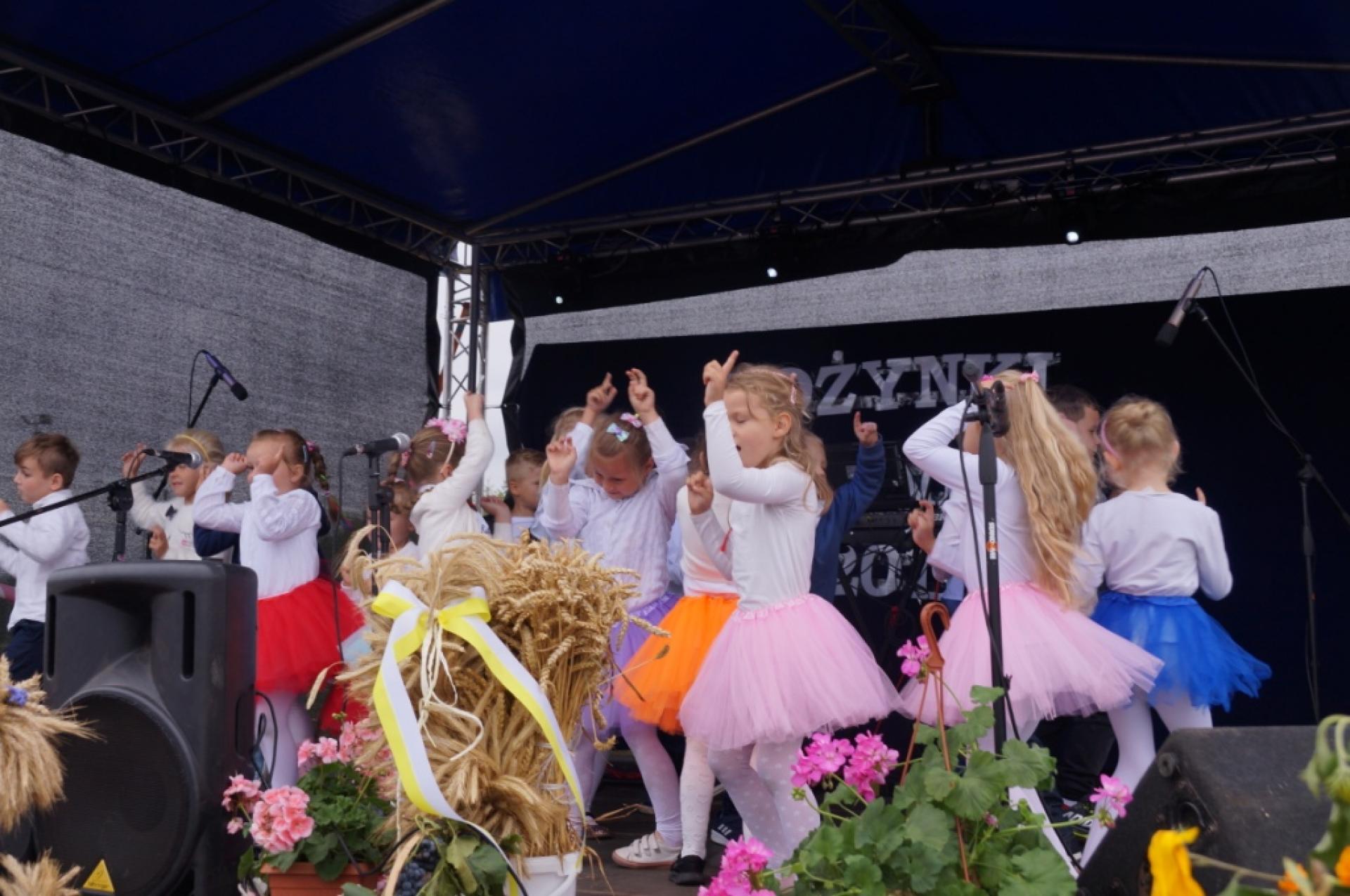 Dzisiaj dzieci z naszej grupy zaprezentowały 30 minutowy program artystyczny podczas Dożynek Gminnych w Małej Nieszawce. Przedszkolaki wystąpiły rewelacyjnie, zatańczyły, zaśpiewały i za swój występ otrzymały duże brawa. Wcześniej w korowodzie z transparentem uroczyście maszerowały ze sztandarem na plac. Dziękujemy wszystkim dzieciom i ich rodzicom za godne reprezentowanie naszego przedszkola.