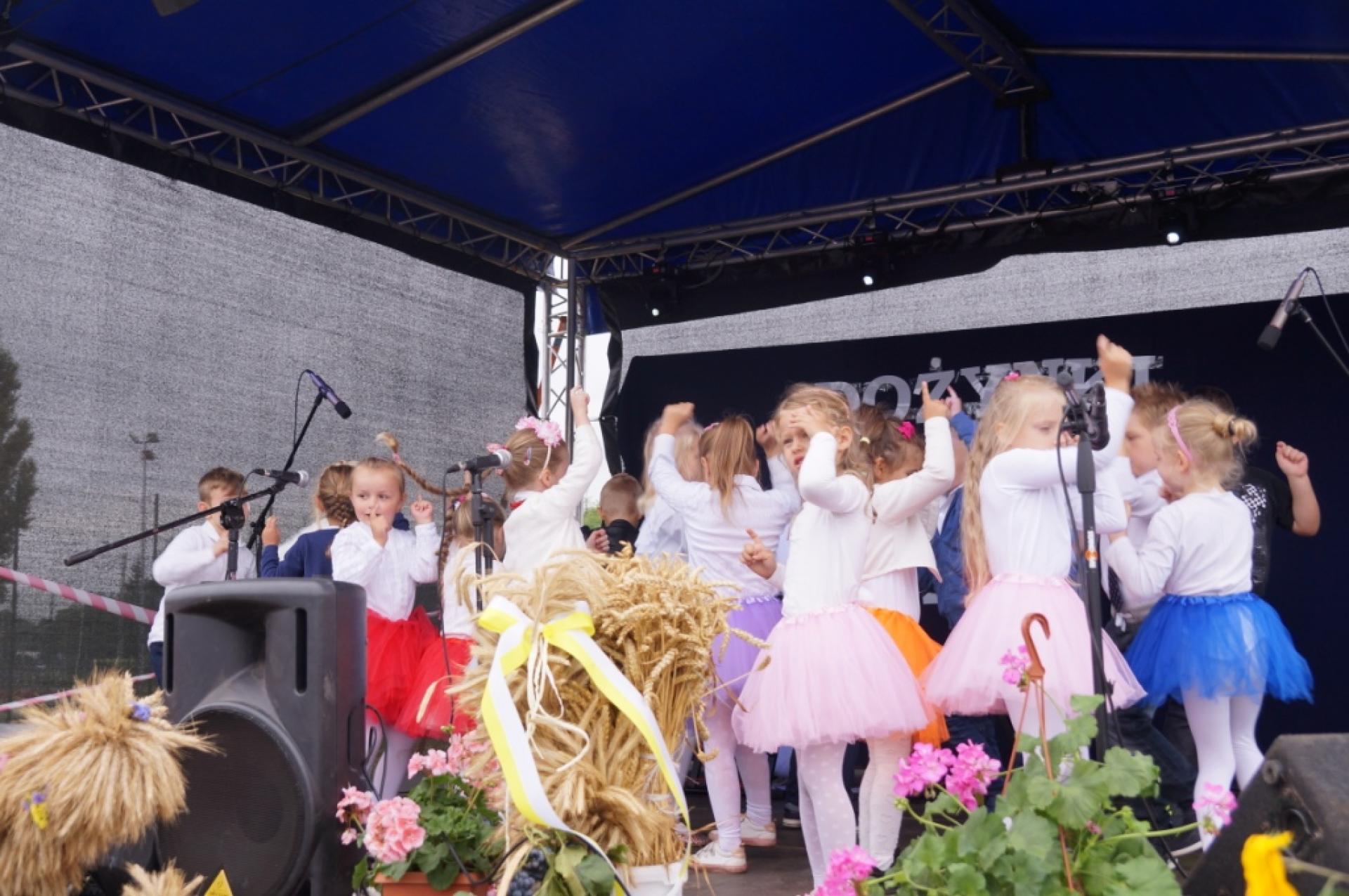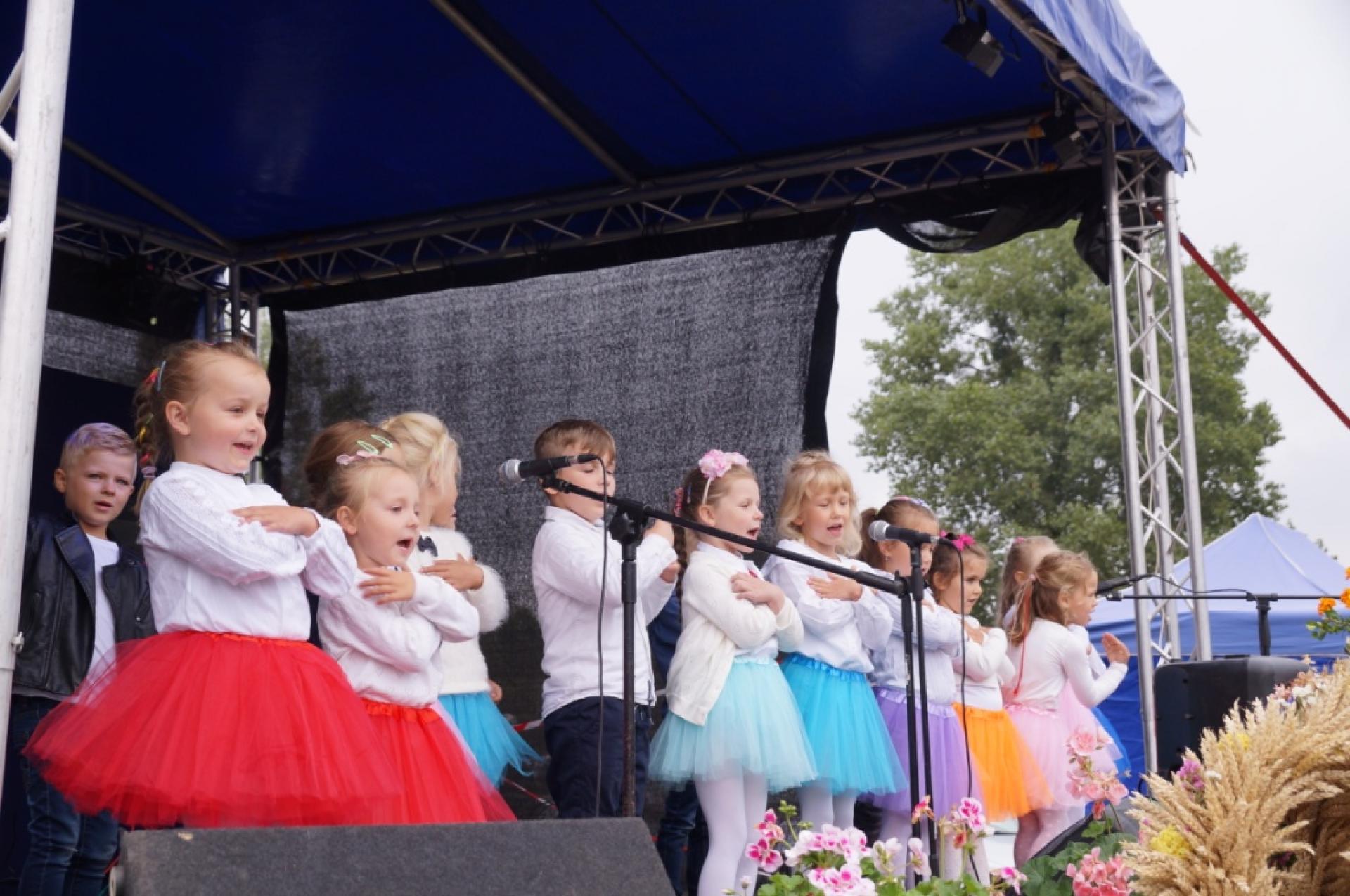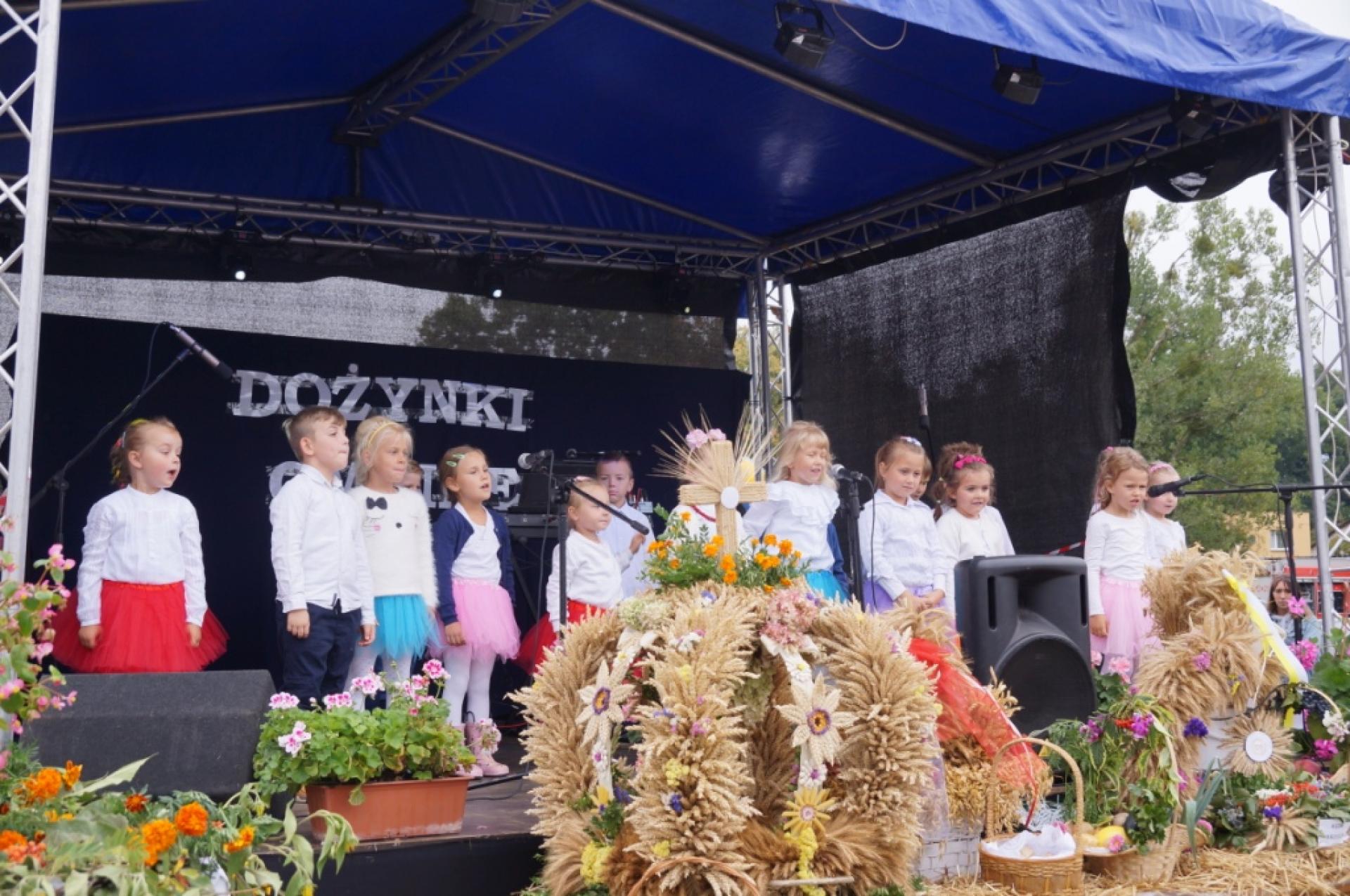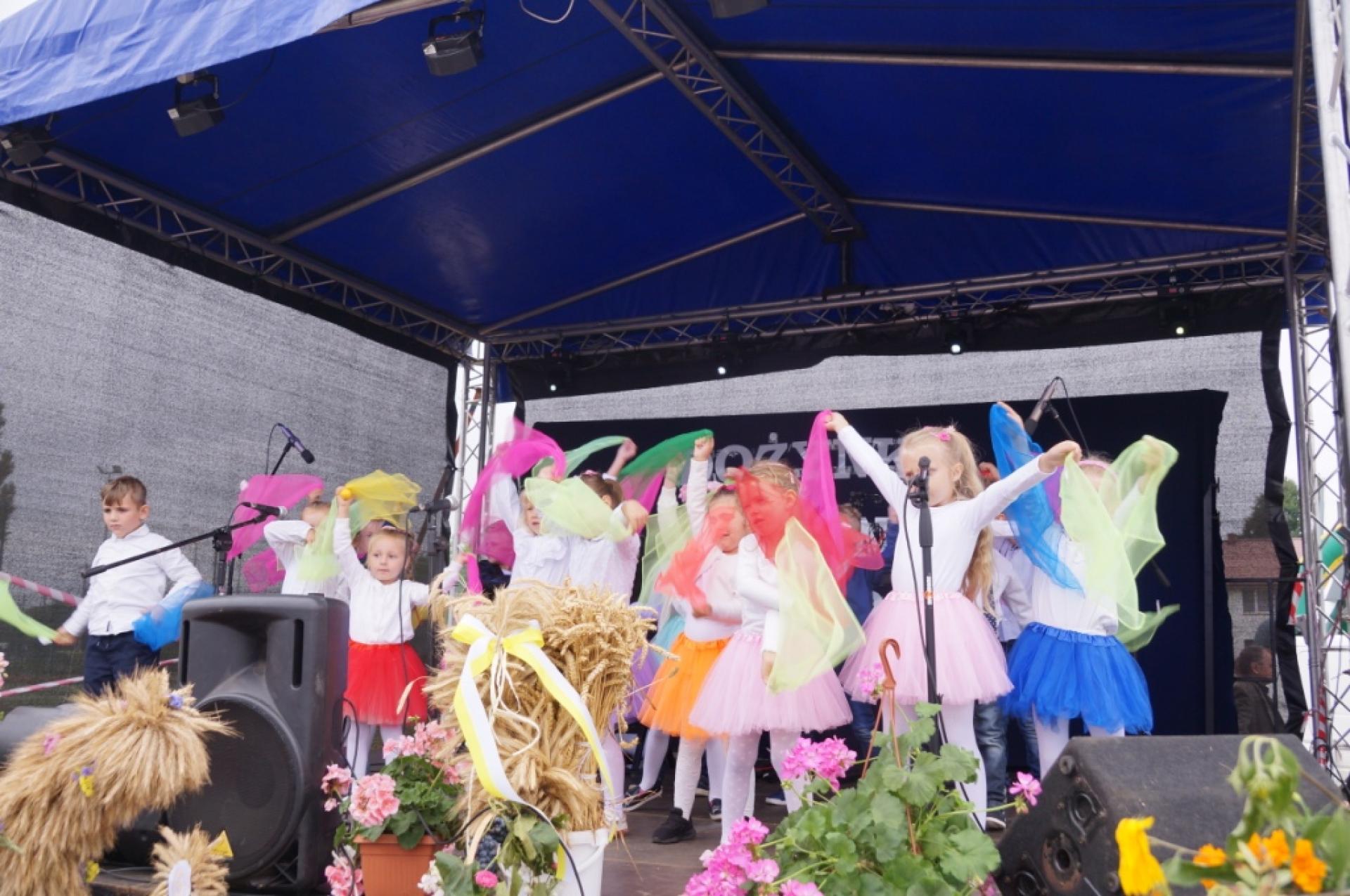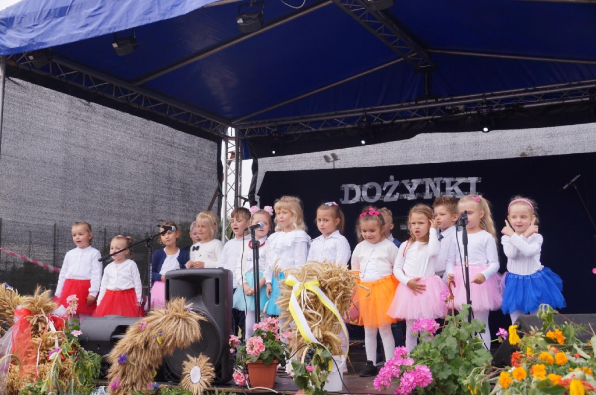 Dzisiaj dzieci z naszej grupy zaprezentowały 30 minutowy program artystyczny podczas Dożynek Gminnych w Małej Nieszawce. Przedszkolaki wystąpiły rewelacyjnie, zatańczyły, zaśpiewały i za swój występ otrzymały duże brawa. Wcześniej w korowodzie z transparentem uroczyście maszerowały ze sztandarem na plac. Dziękujemy wszystkim dzieciom i ich rodzicom za godne reprezentowanie naszego przedszkola.