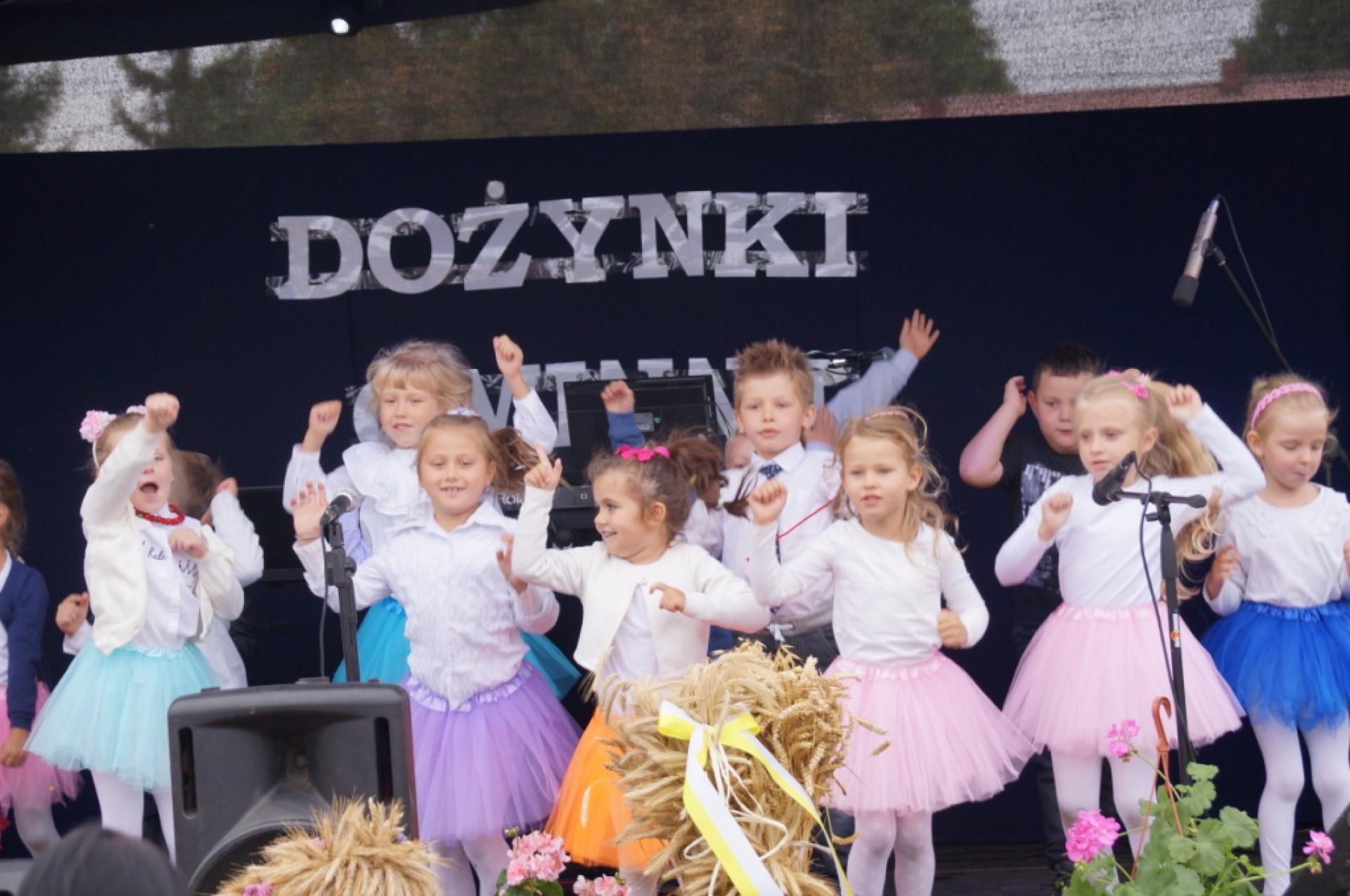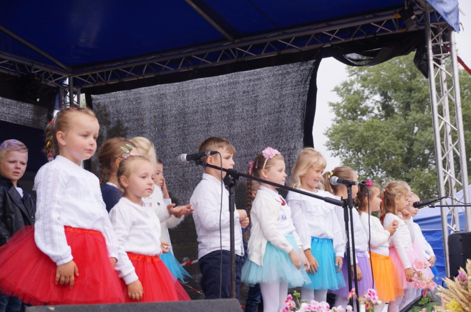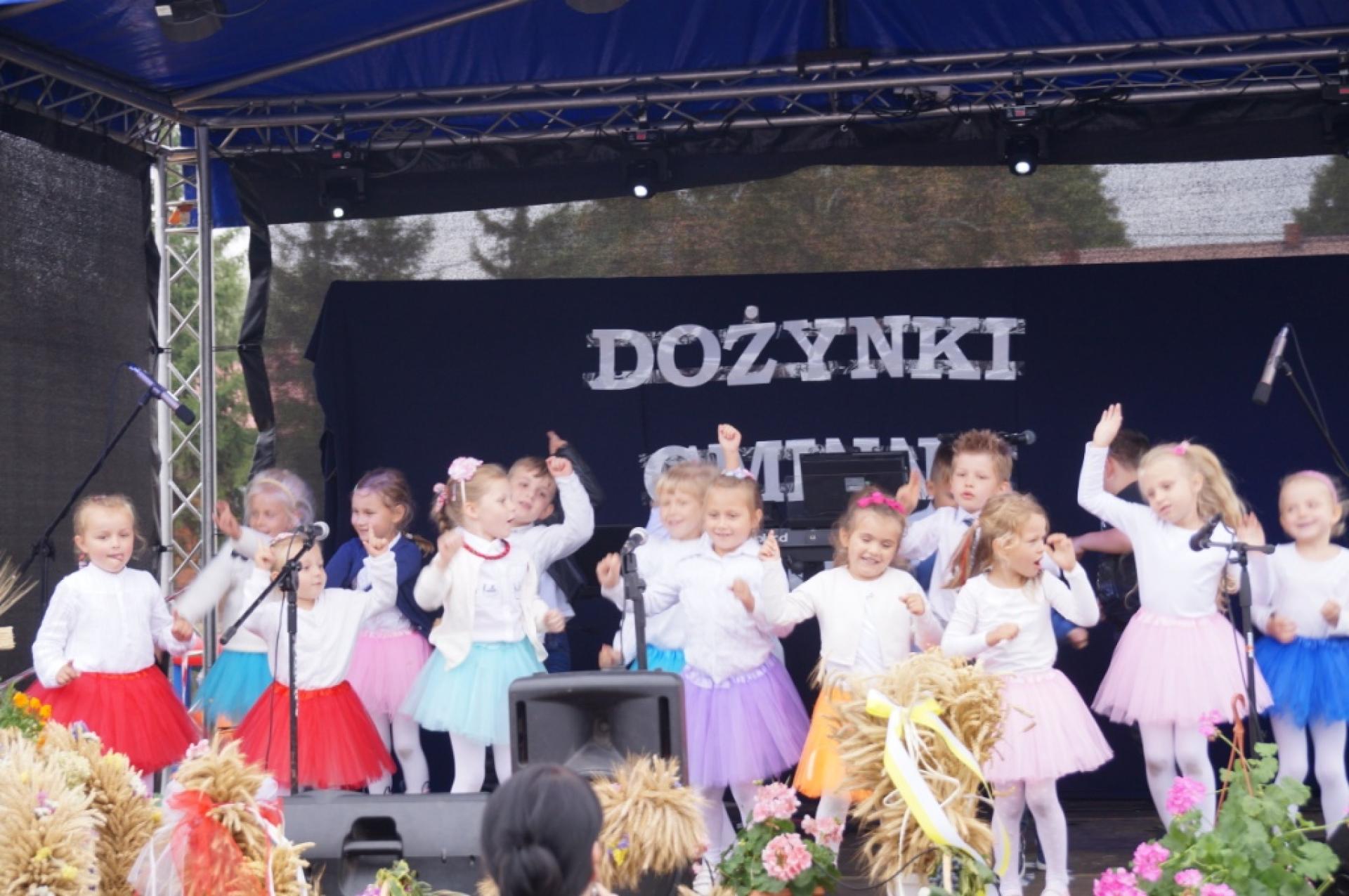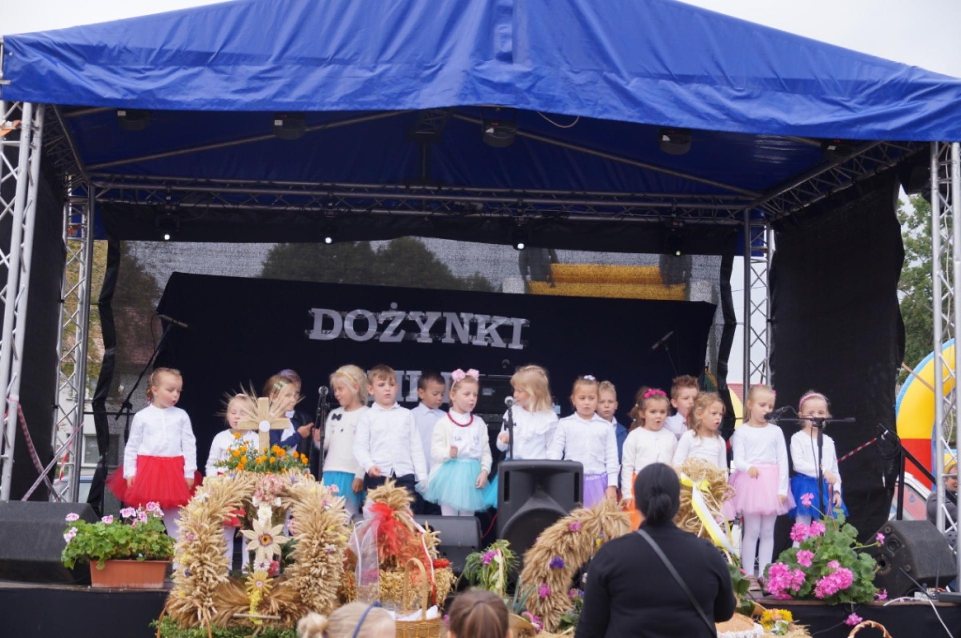 Dzisiaj dzieci z naszej grupy zaprezentowały 30 minutowy program artystyczny podczas Dożynek Gminnych w Małej Nieszawce. Przedszkolaki wystąpiły rewelacyjnie, zatańczyły, zaśpiewały i za swój występ otrzymały duże brawa. Wcześniej w korowodzie z transparentem uroczyście maszerowały ze sztandarem na plac. Dziękujemy wszystkim dzieciom i ich rodzicom za godne reprezentowanie naszego przedszkola.