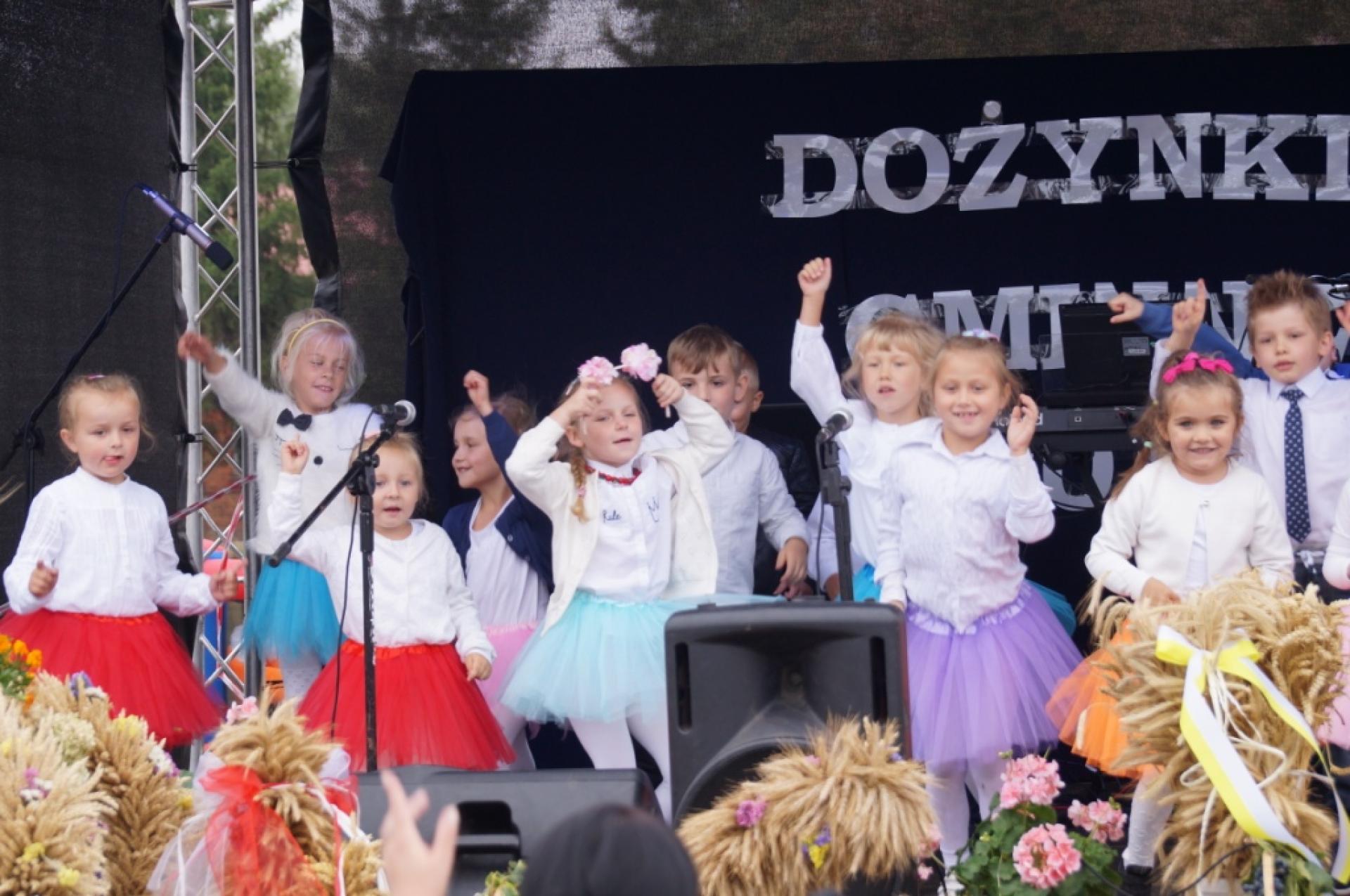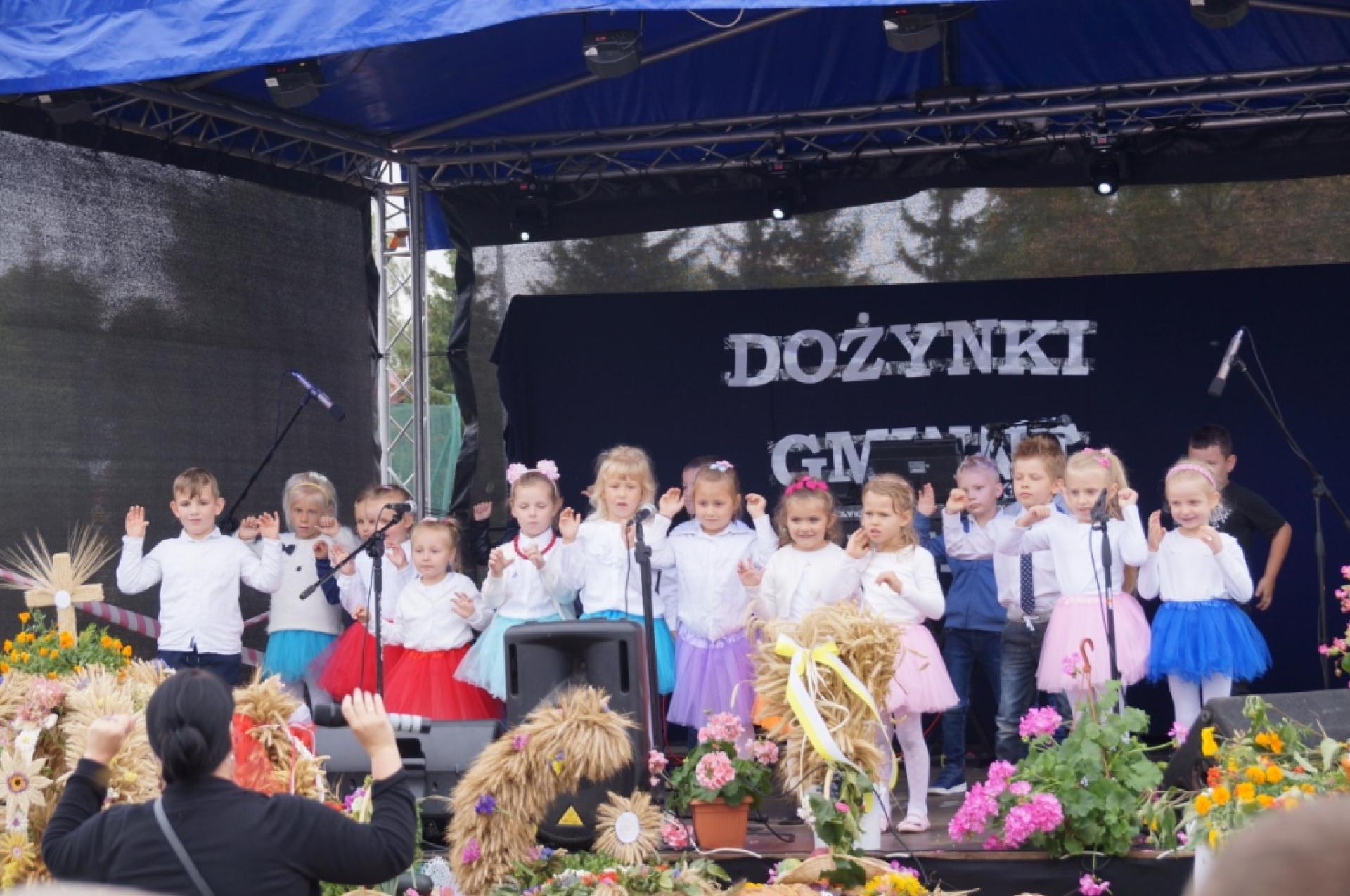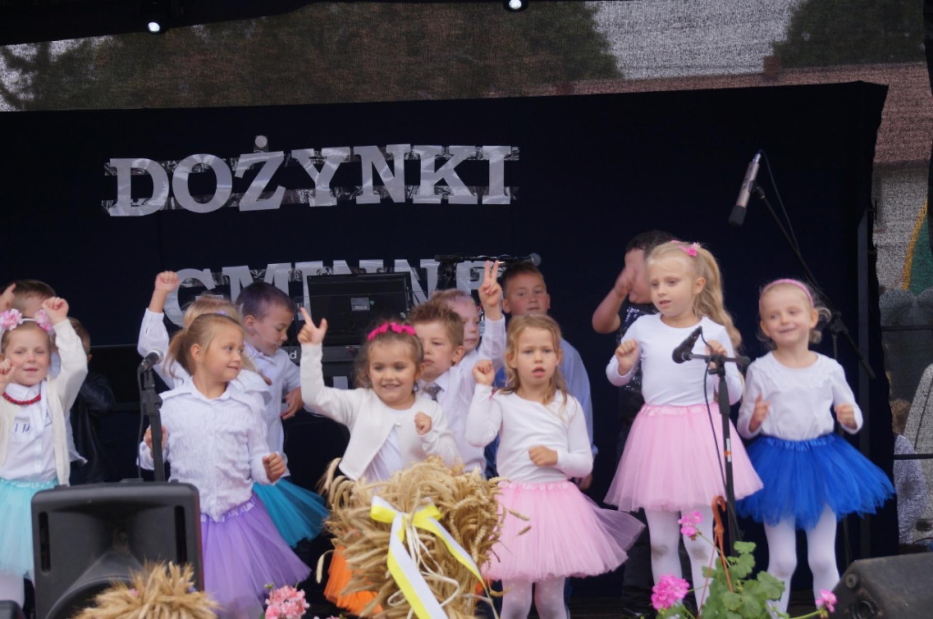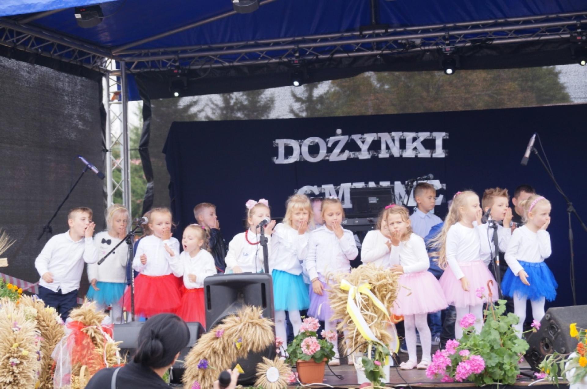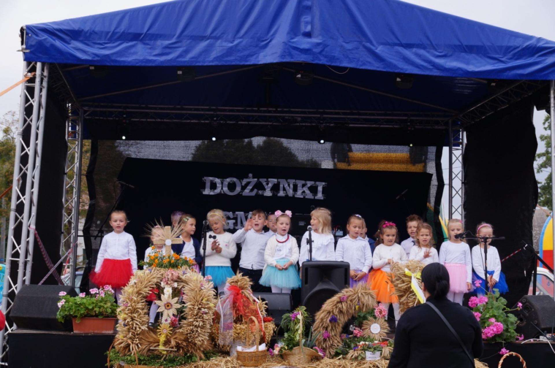 Dzisiaj dzieci z naszej grupy zaprezentowały 30 minutowy program artystyczny podczas Dożynek Gminnych w Małej Nieszawce. Przedszkolaki wystąpiły rewelacyjnie, zatańczyły, zaśpiewały i za swój występ otrzymały duże brawa. Wcześniej w korowodzie z transparentem uroczyście maszerowały ze sztandarem na plac. Dziękujemy wszystkim dzieciom i ich rodzicom za godne reprezentowanie naszego przedszkola.
