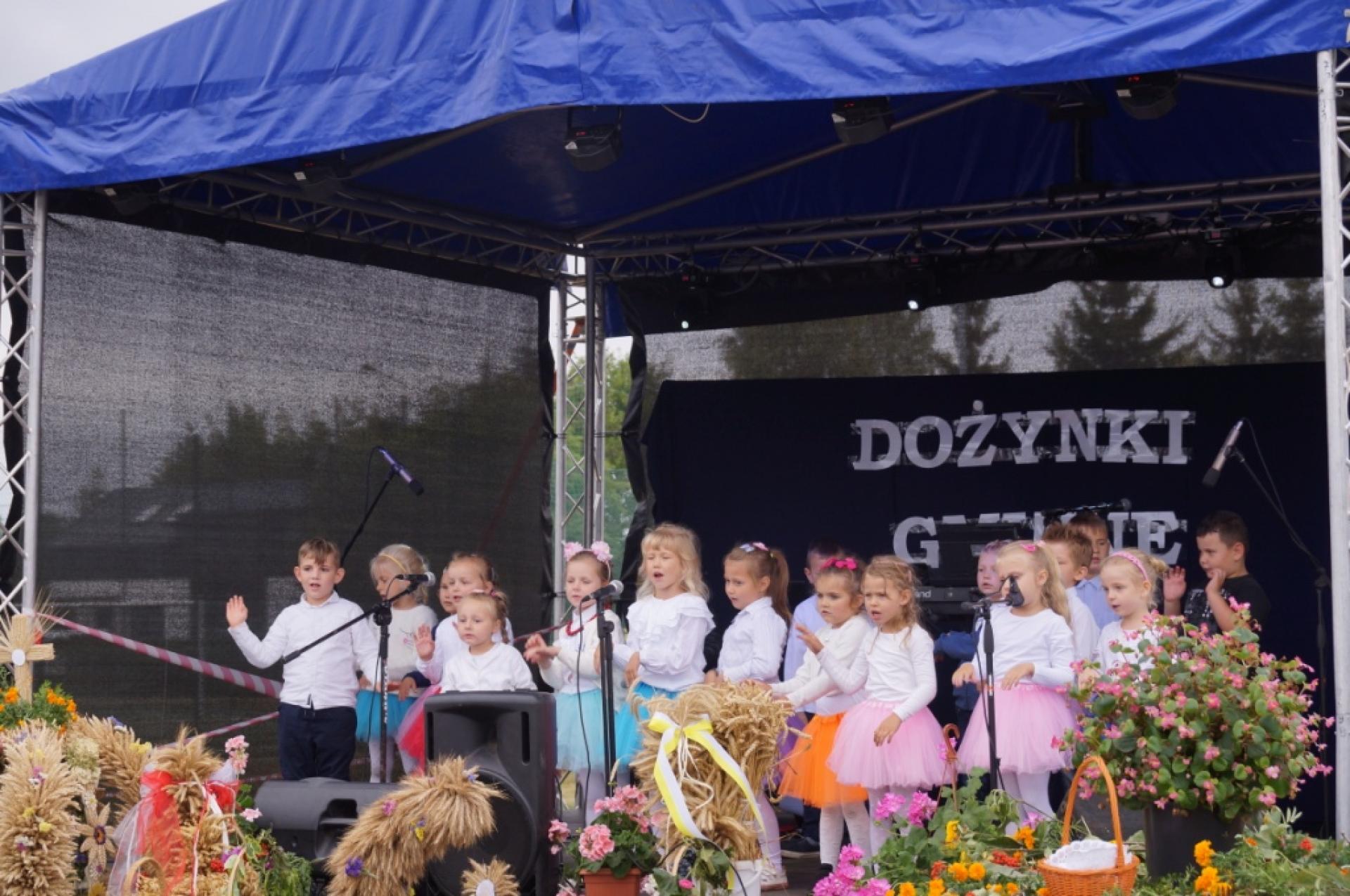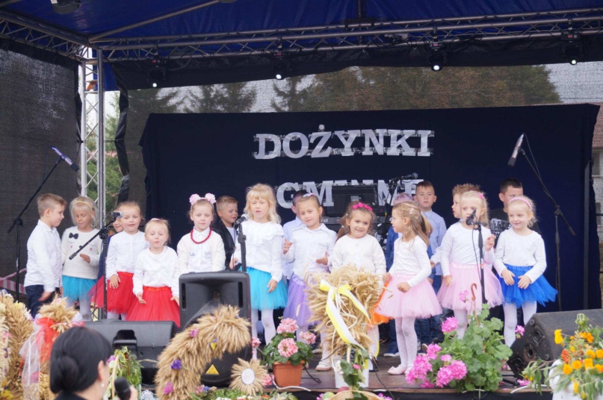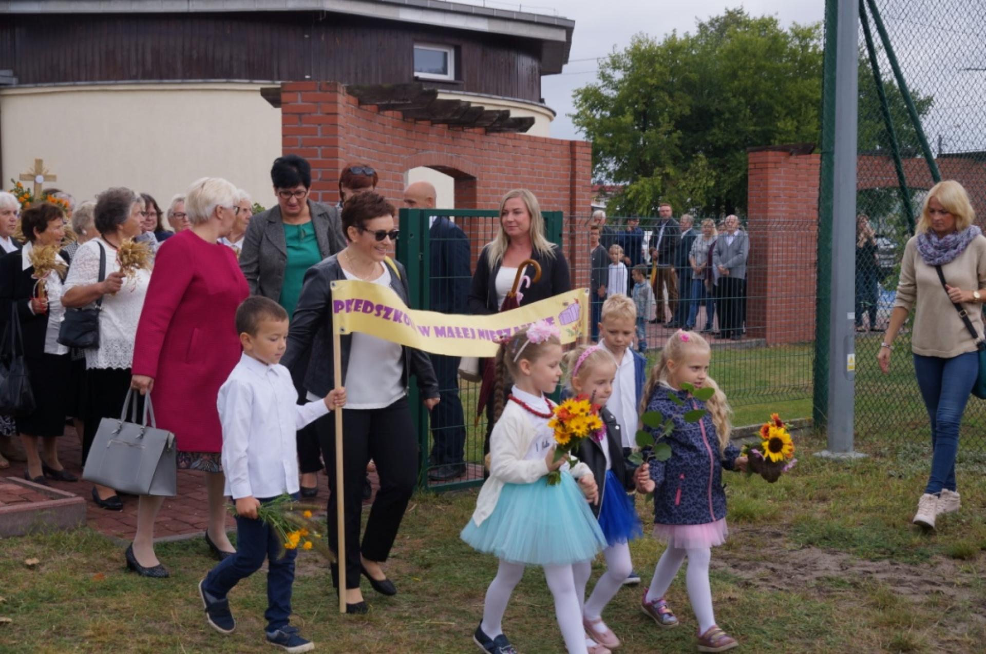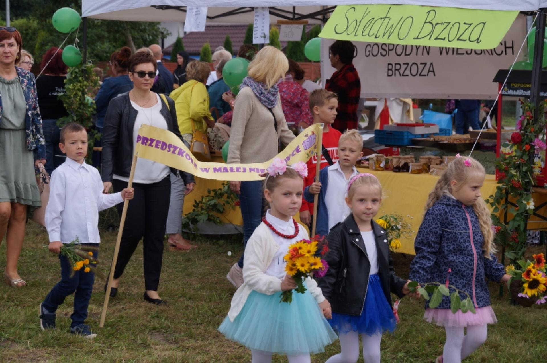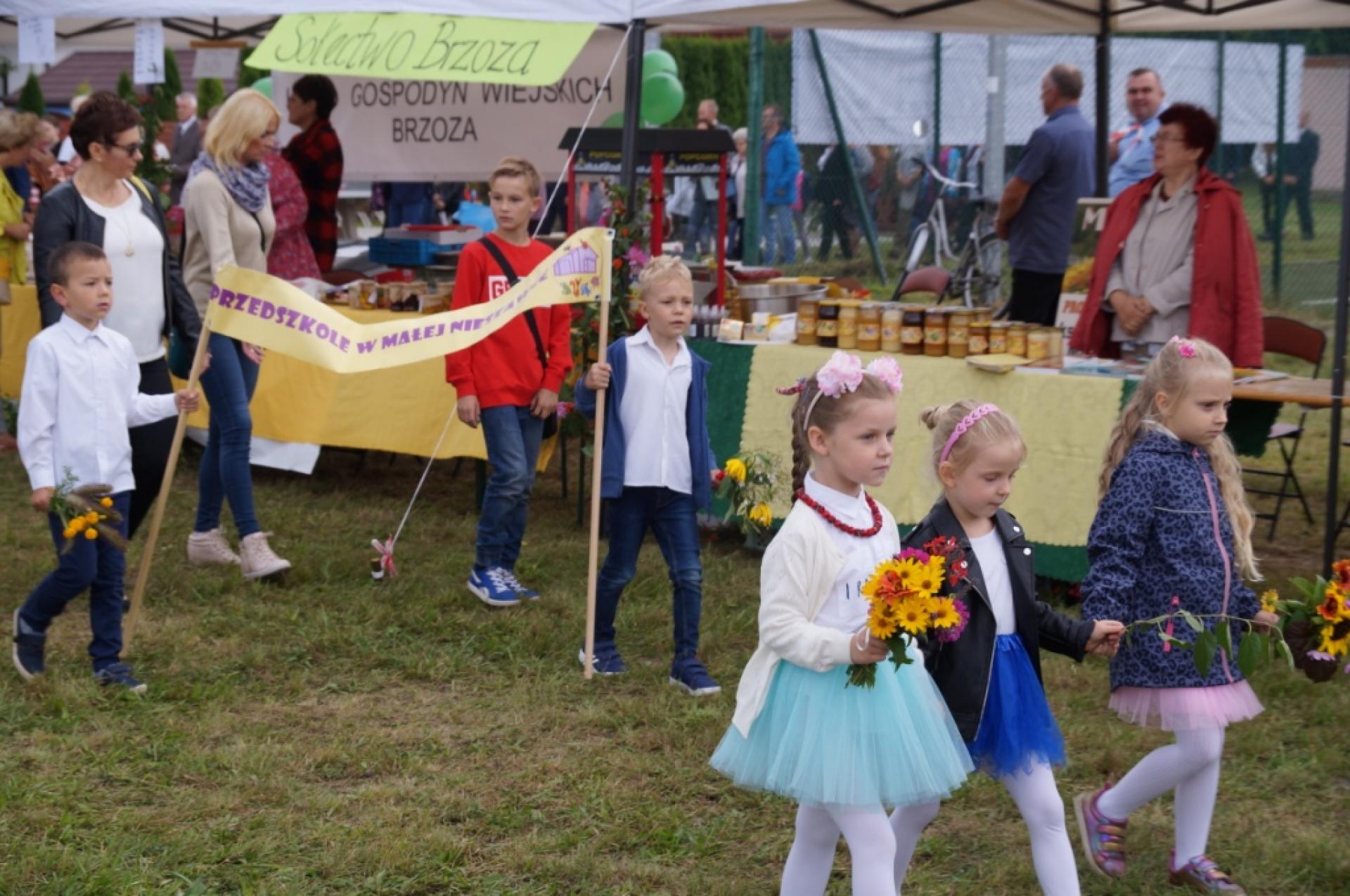 Dzisiaj dzieci z naszej grupy zaprezentowały 30 minutowy program artystyczny podczas Dożynek Gminnych w Małej Nieszawce. Przedszkolaki wystąpiły rewelacyjnie, zatańczyły, zaśpiewały i za swój występ otrzymały duże brawa. Wcześniej w korowodzie z transparentem uroczyście maszerowały ze sztandarem na plac. Dziękujemy wszystkim dzieciom i ich rodzicom za godne reprezentowanie naszego przedszkola.