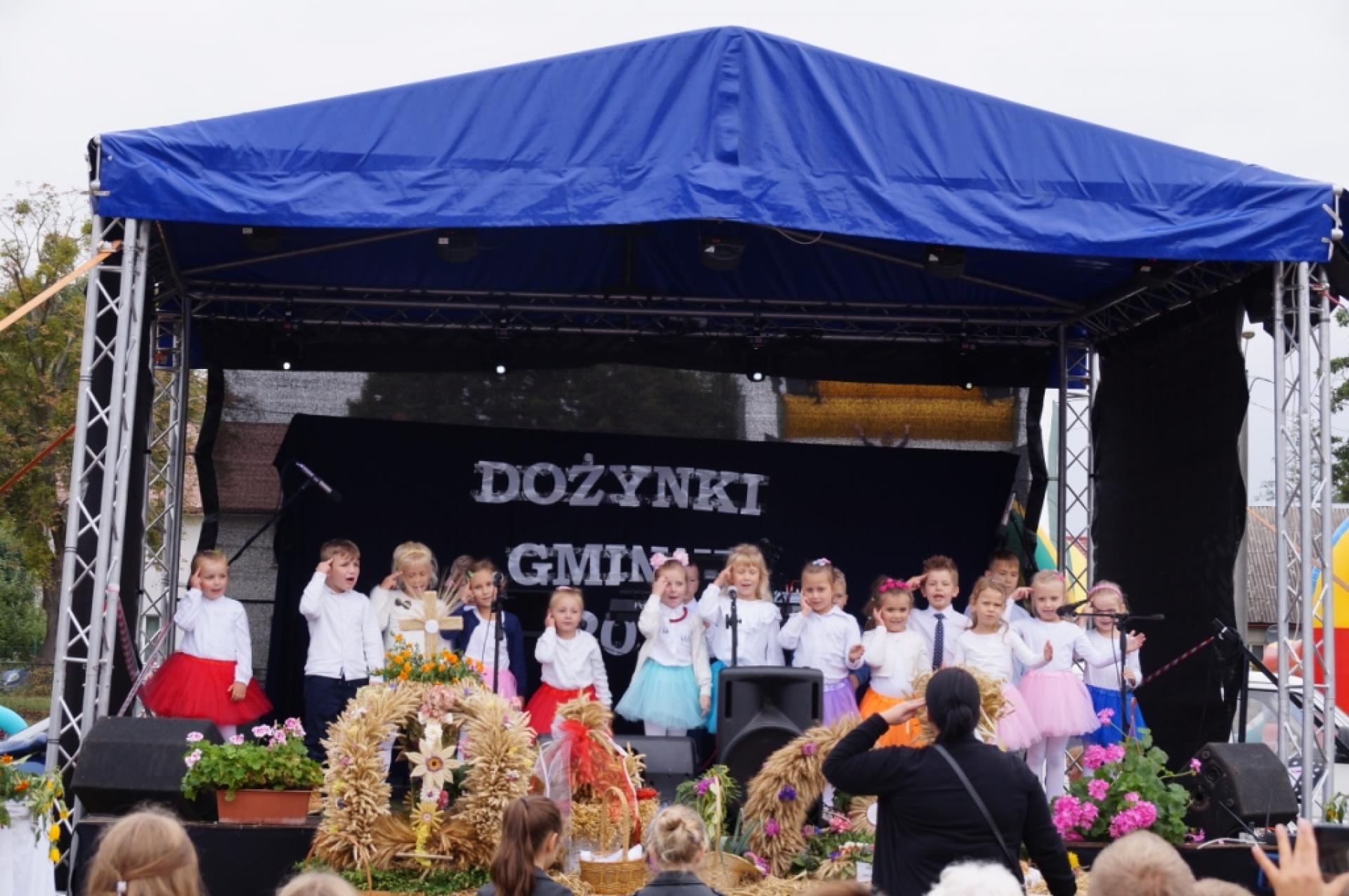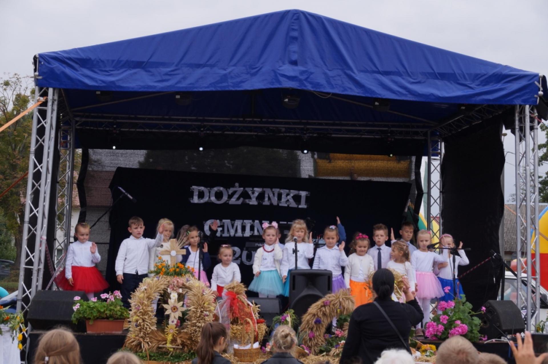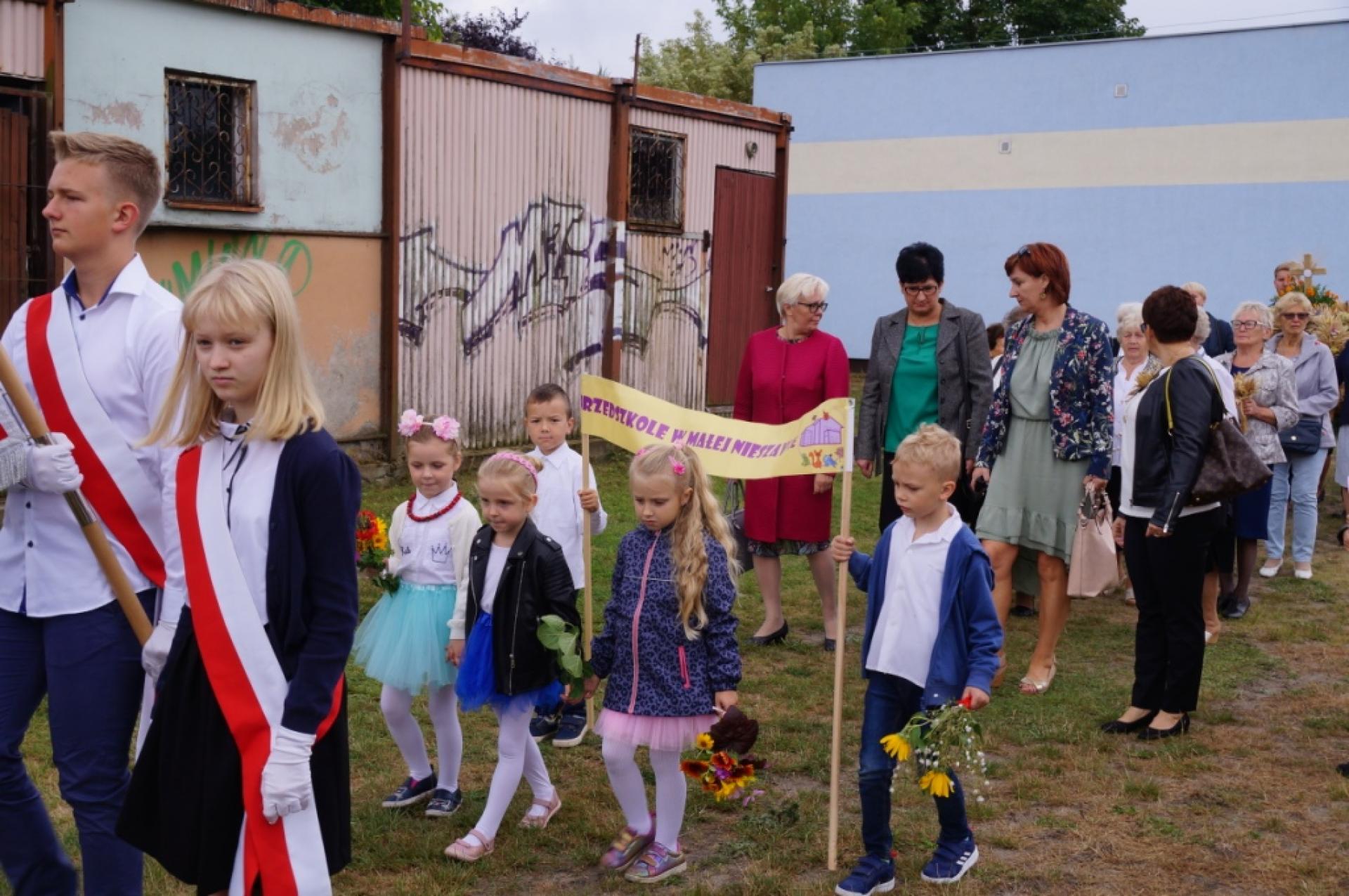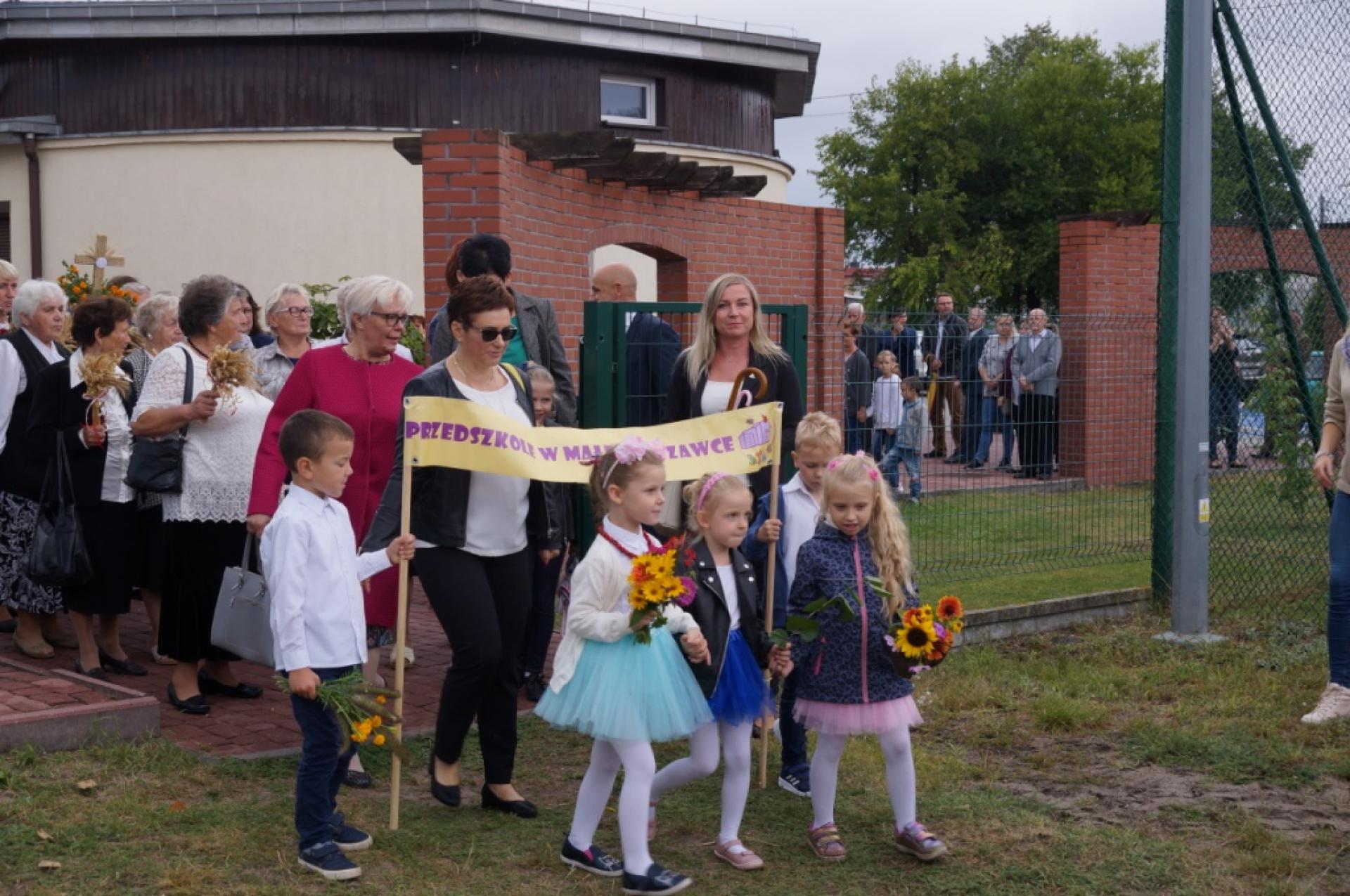 Dzisiaj dzieci z naszej grupy zaprezentowały 30 minutowy program artystyczny podczas Dożynek Gminnych w Małej Nieszawce. Przedszkolaki wystąpiły rewelacyjnie, zatańczyły, zaśpiewały i za swój występ otrzymały duże brawa. Wcześniej w korowodzie z transparentem uroczyście maszerowały ze sztandarem na plac. Dziękujemy wszystkim dzieciom i ich rodzicom za godne reprezentowanie naszego przedszkola.
