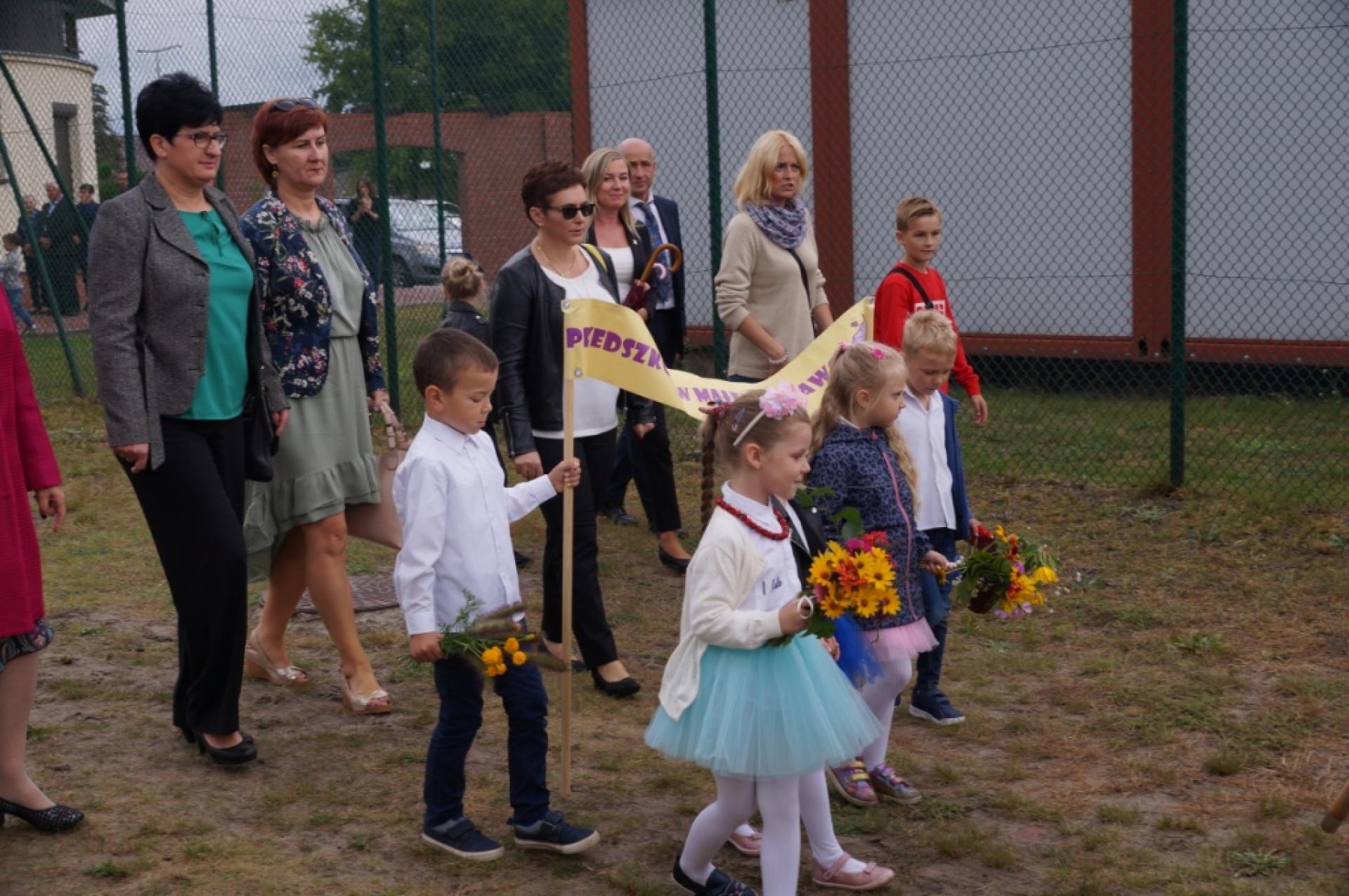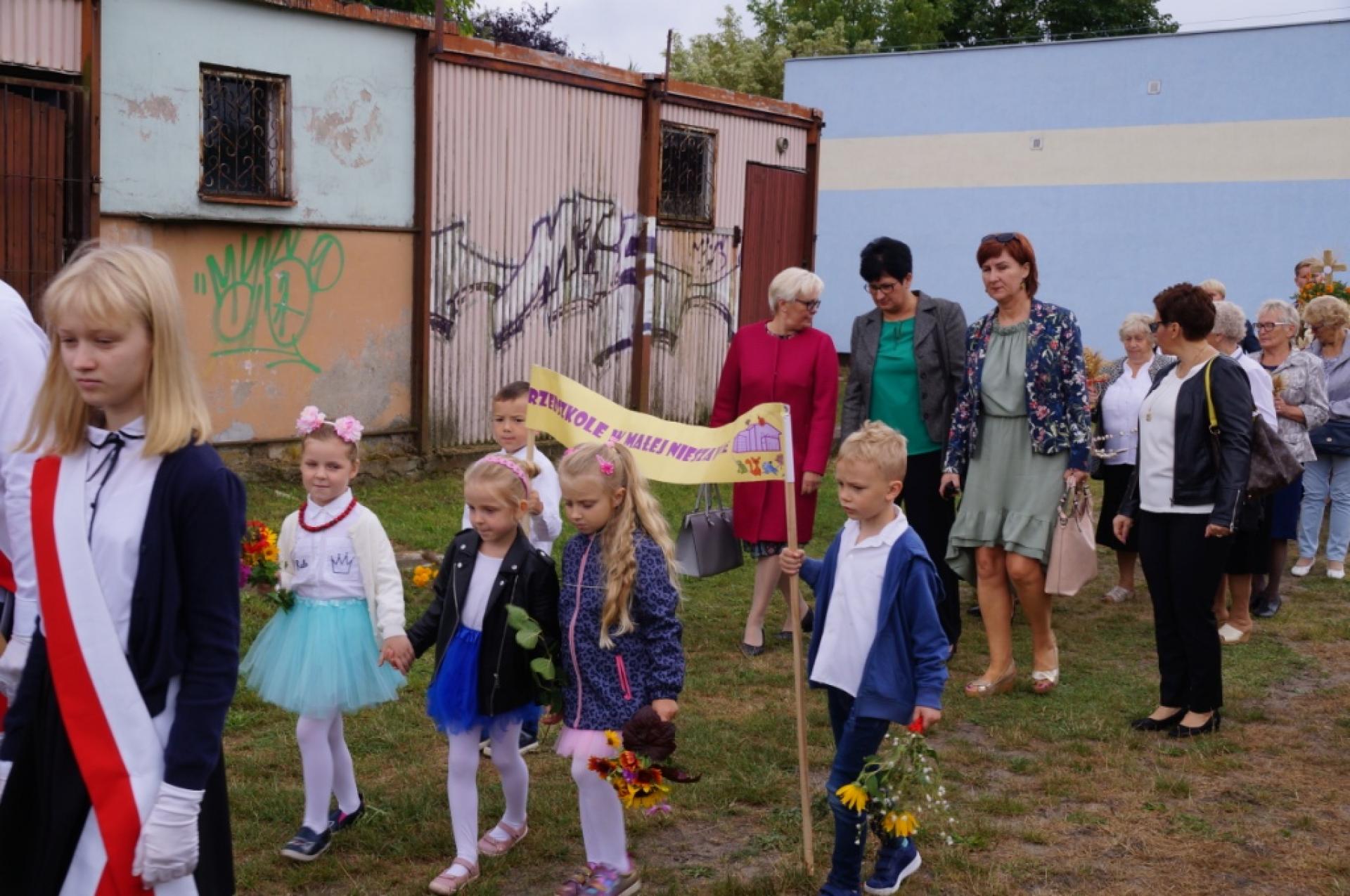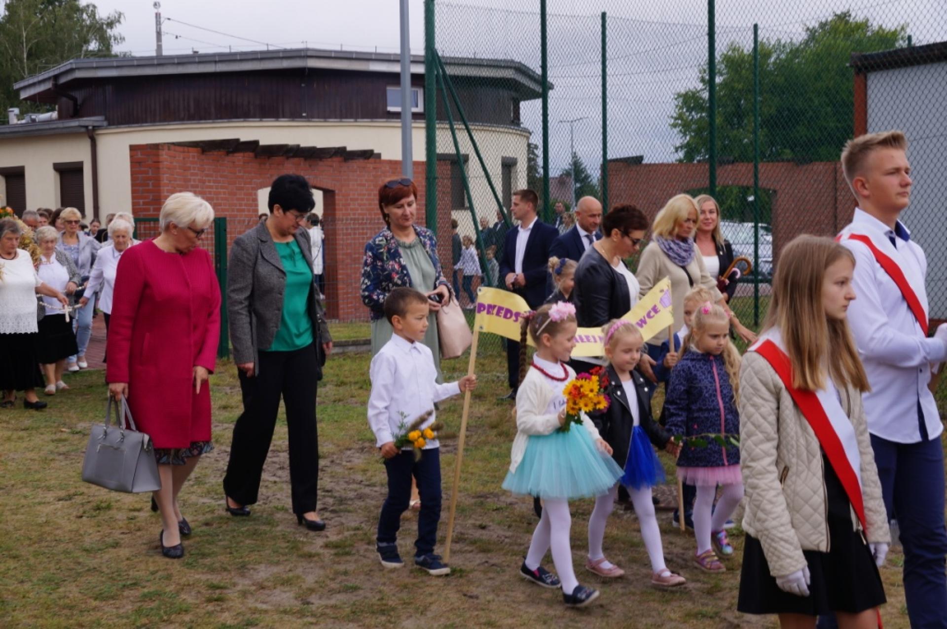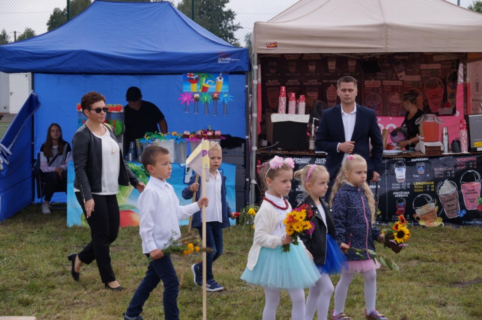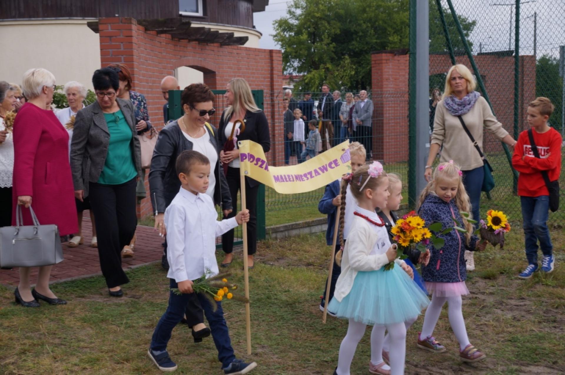 Dzisiaj dzieci z naszej grupy zaprezentowały 30 minutowy program artystyczny podczas Dożynek Gminnych w Małej Nieszawce. Przedszkolaki wystąpiły rewelacyjnie, zatańczyły, zaśpiewały i za swój występ otrzymały duże brawa. Wcześniej w korowodzie z transparentem uroczyście maszerowały ze sztandarem na plac. Dziękujemy wszystkim dzieciom i ich rodzicom za godne reprezentowanie naszego przedszkola.