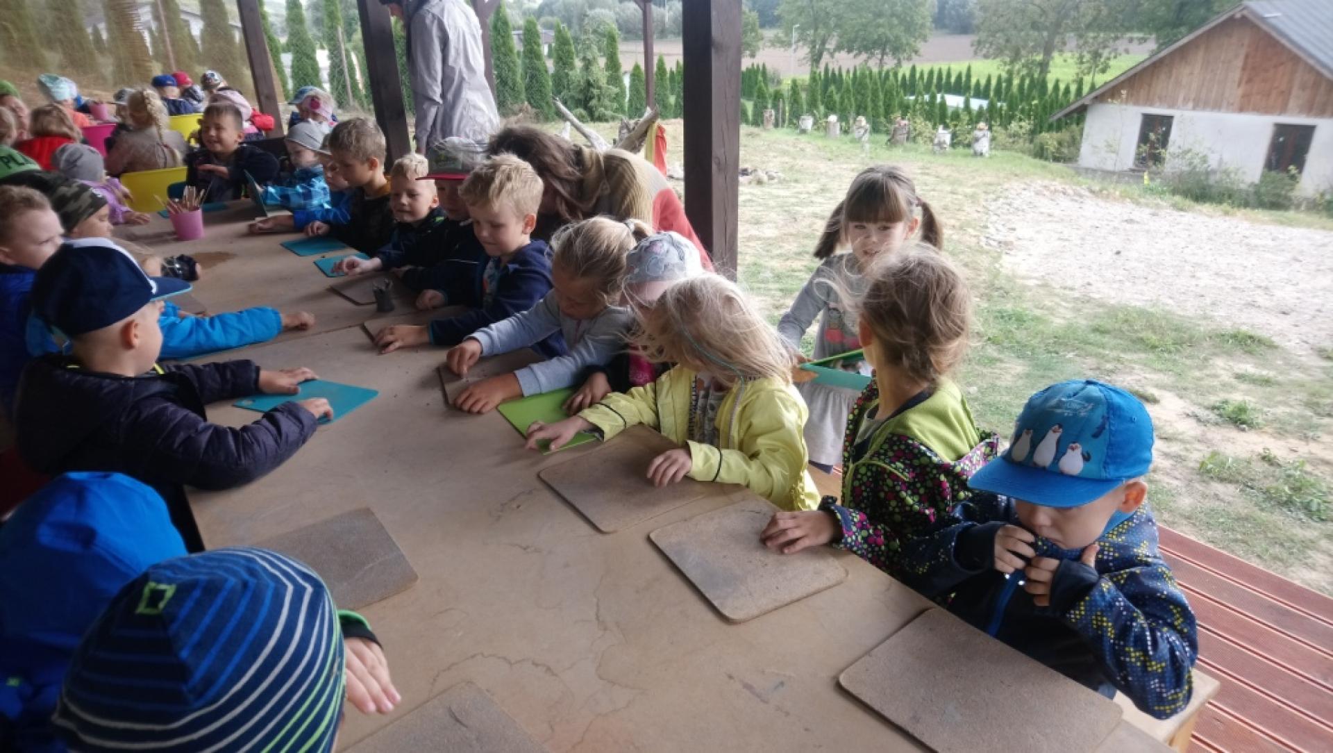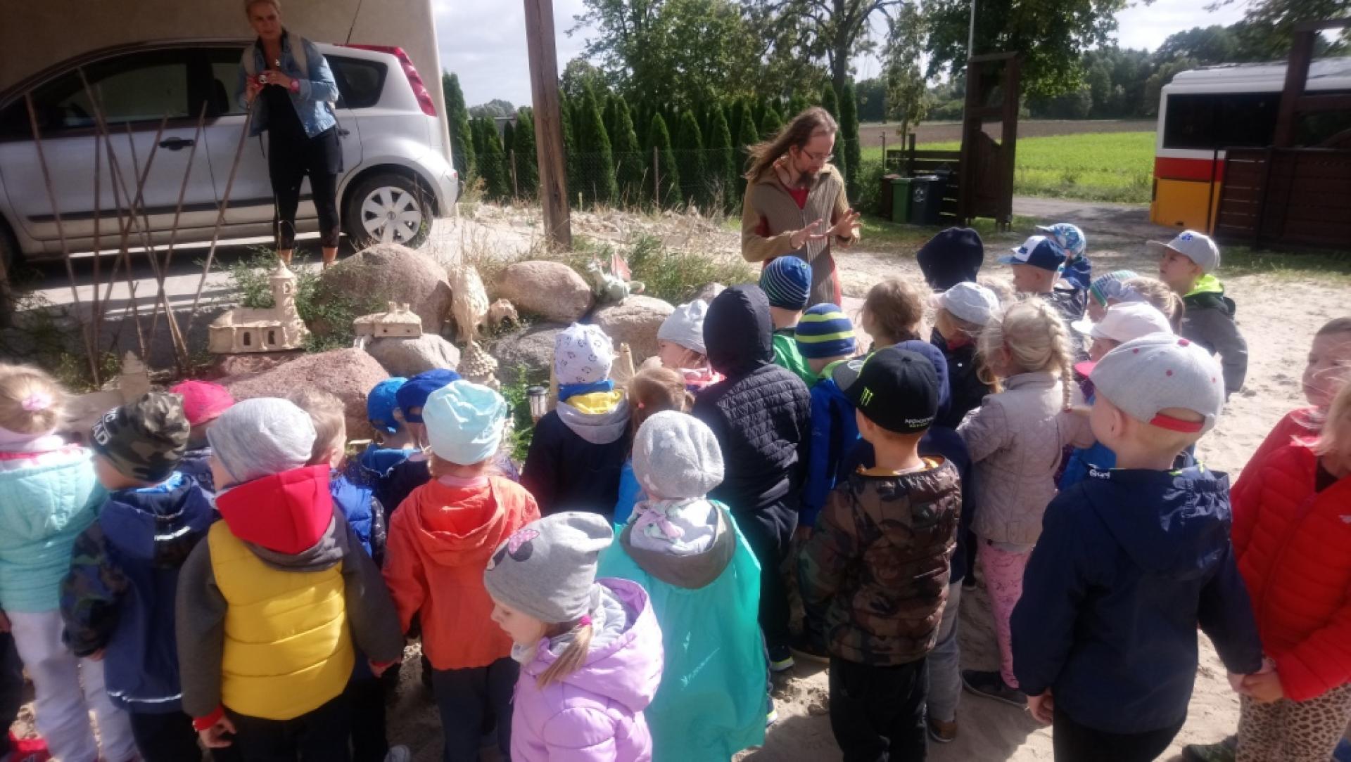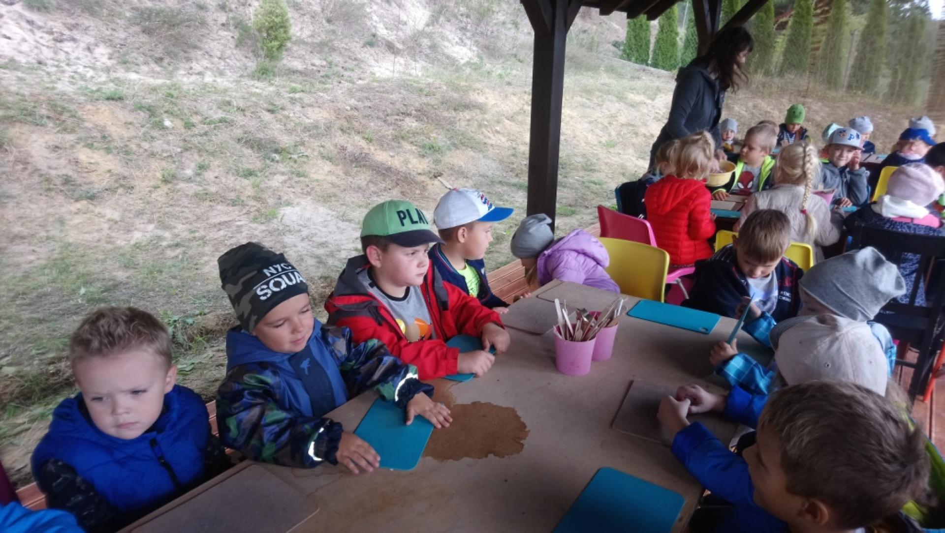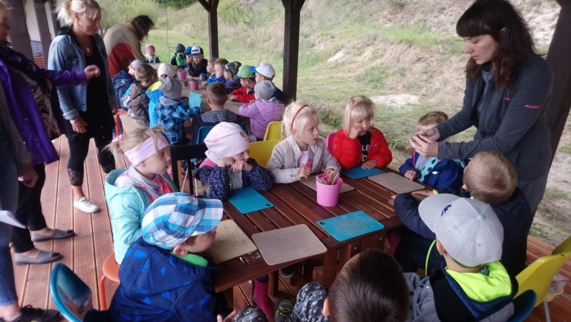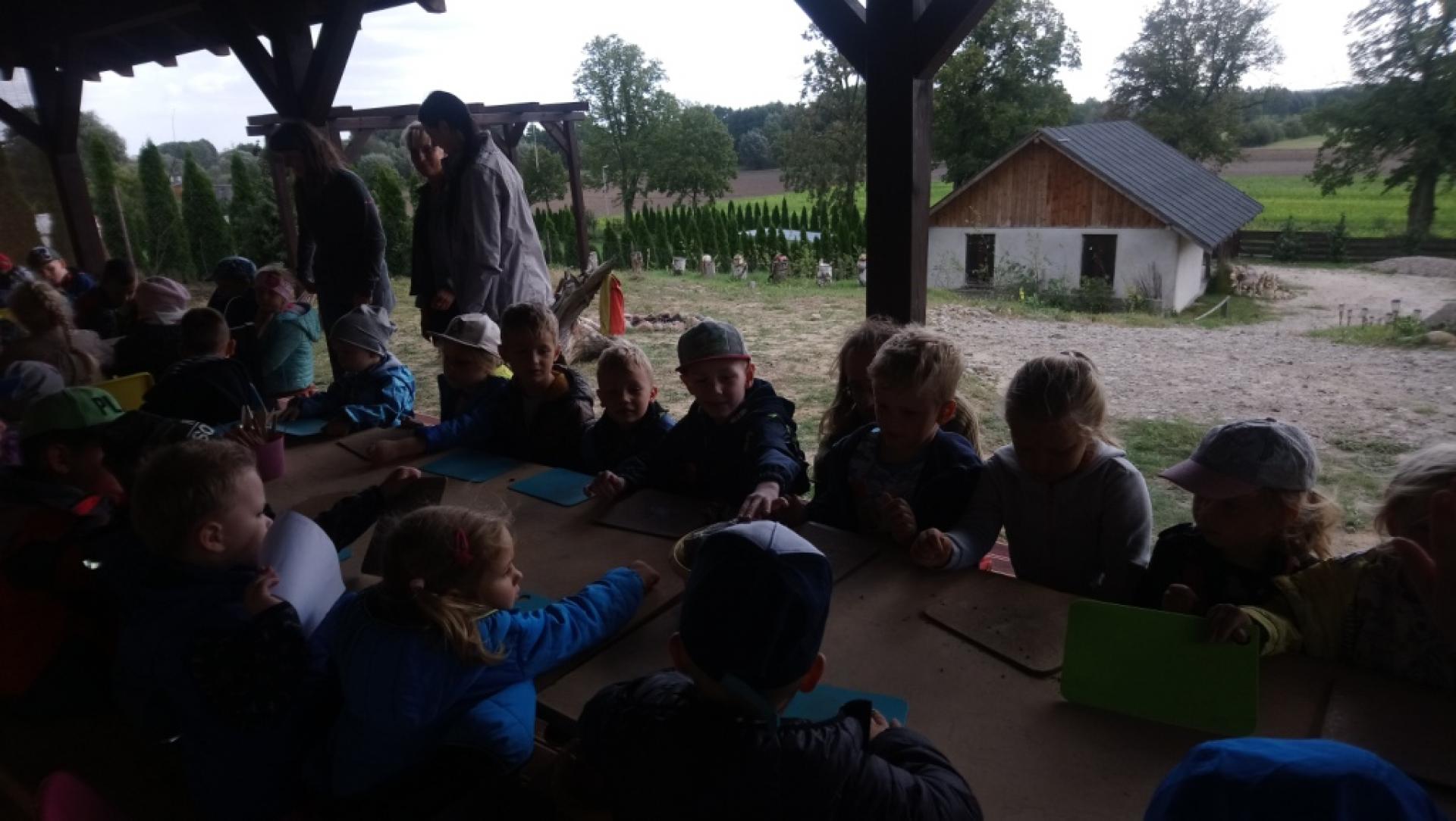 W dniu 16 września wybraliśmy się na wycieczkę do Skłudzewa. Spędziliśmy bardzo aktywnie czas, wybraliśmy się na spacer do lasu, gdzie czekało na nas specjalne zadanie. Ze znalezionego materiału przyrodniczego musieliśmy wspólnie ułożyć drzewo. Wycieczkę zakończyliśmy wspólnym pieczeniem kiełbasek przy ognisku. Będziemy mile wspominać czas spędzony w Skłudzewie.