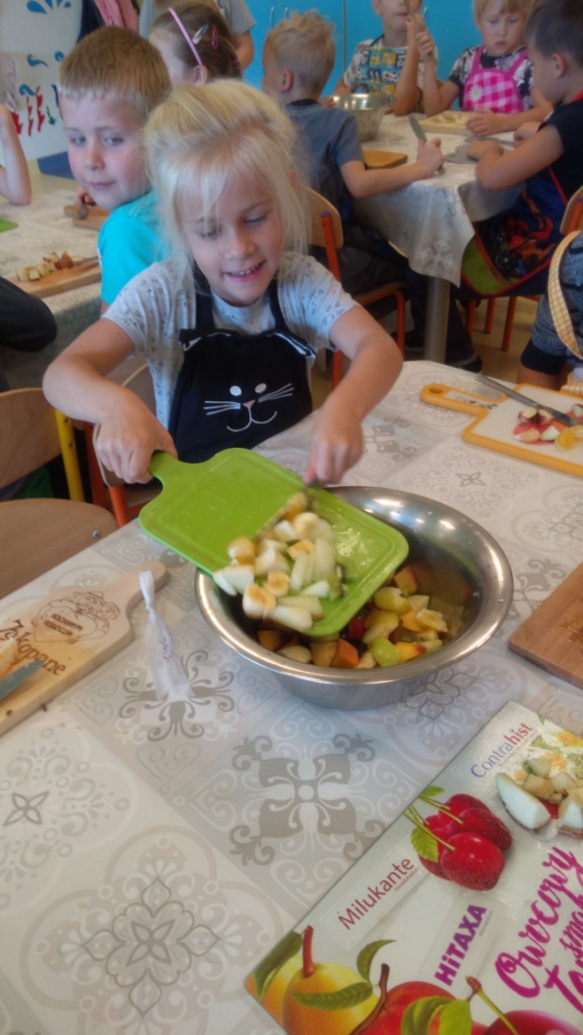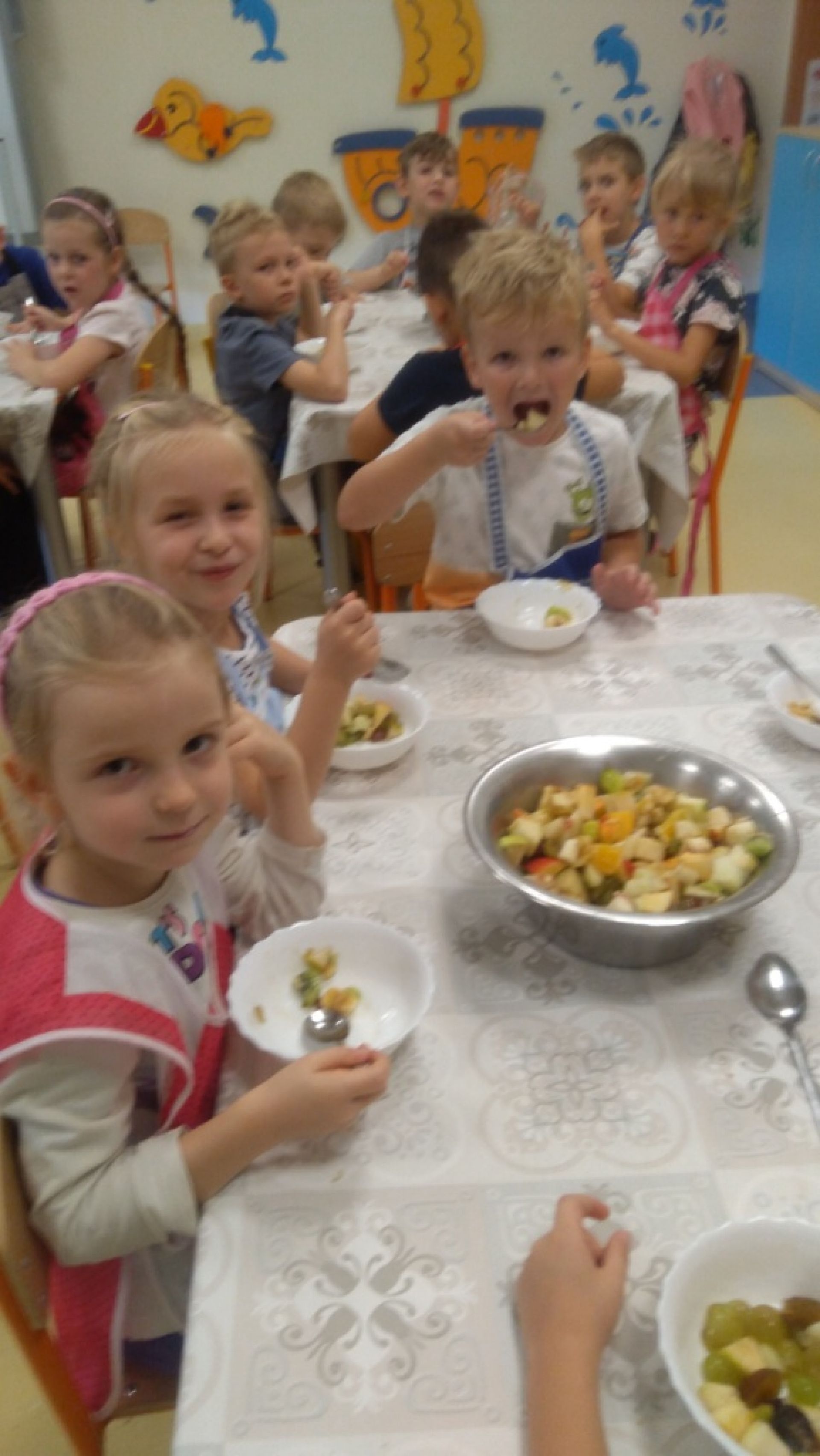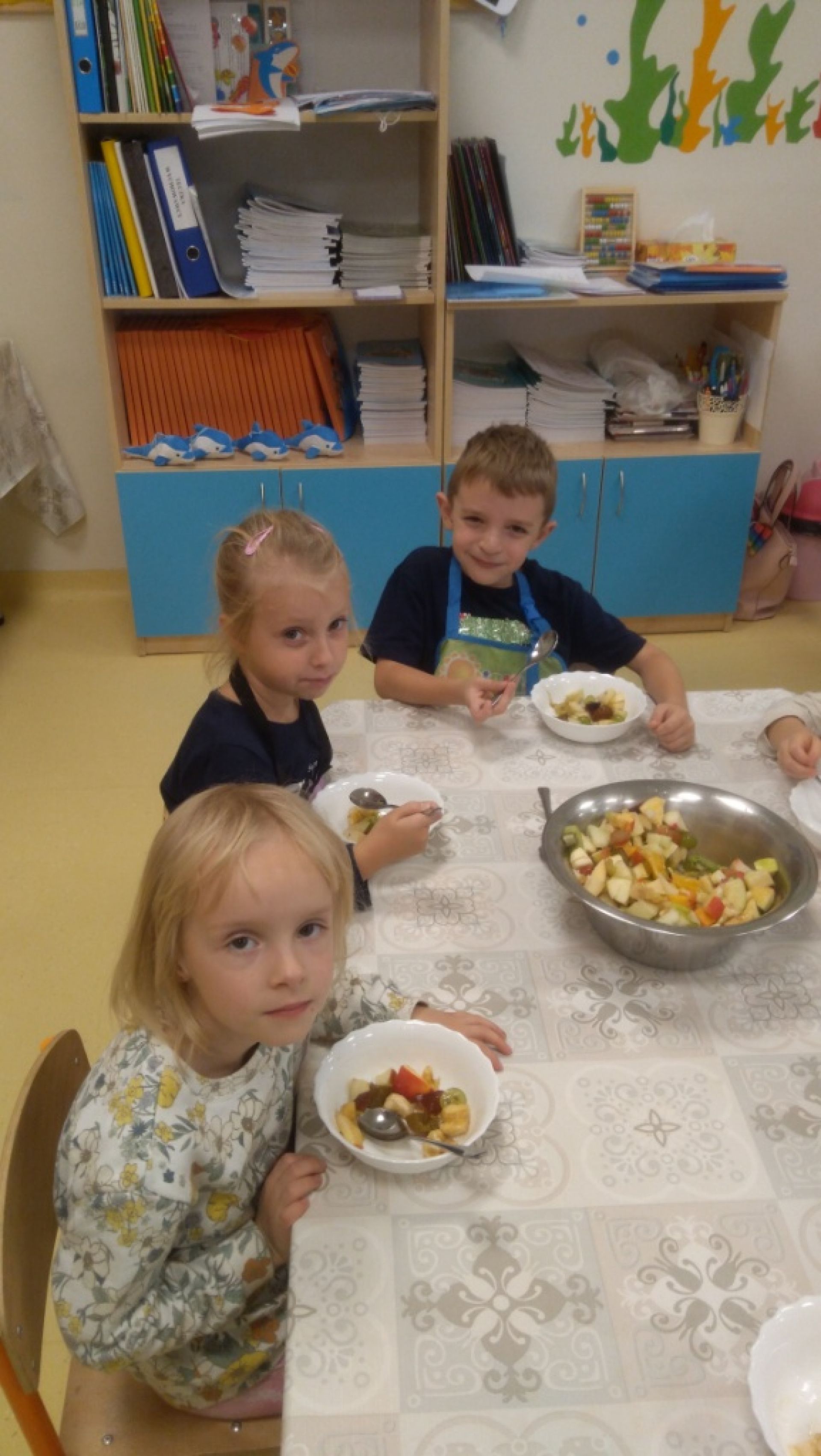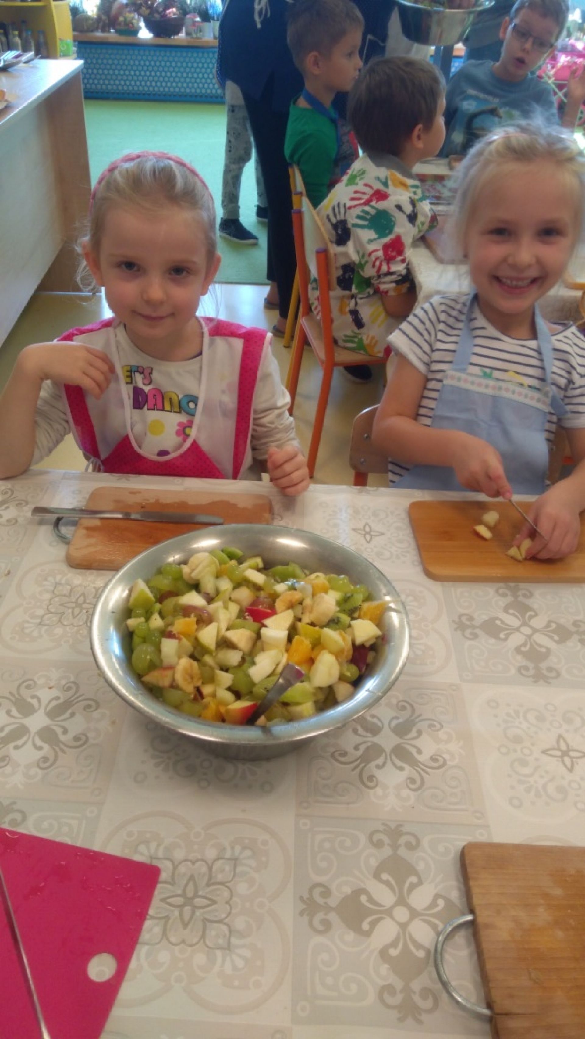 Delfinki uwielbiają to co smaczne, zdrowe i kolorowe! Dziś wspólnie zrobiły wspaniałą sałatkę owocową!