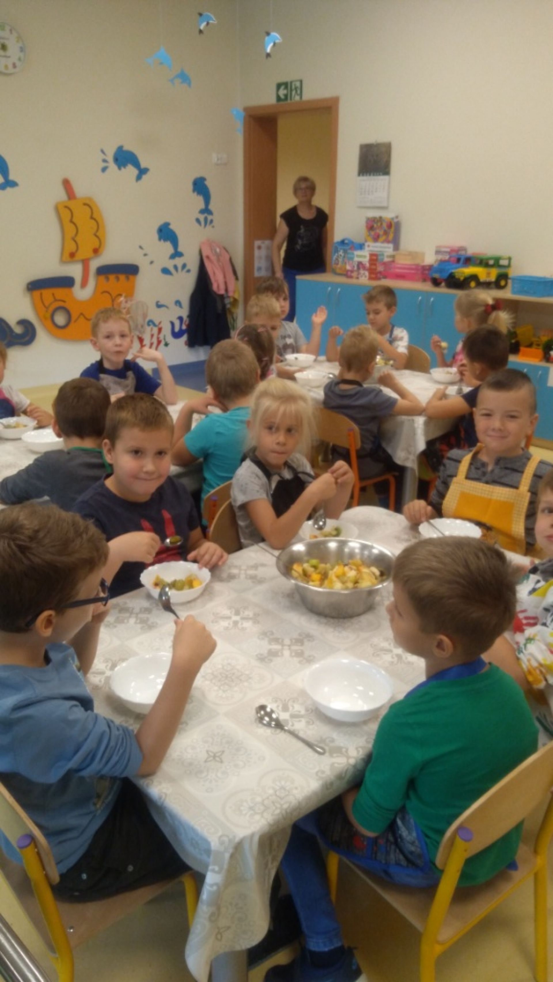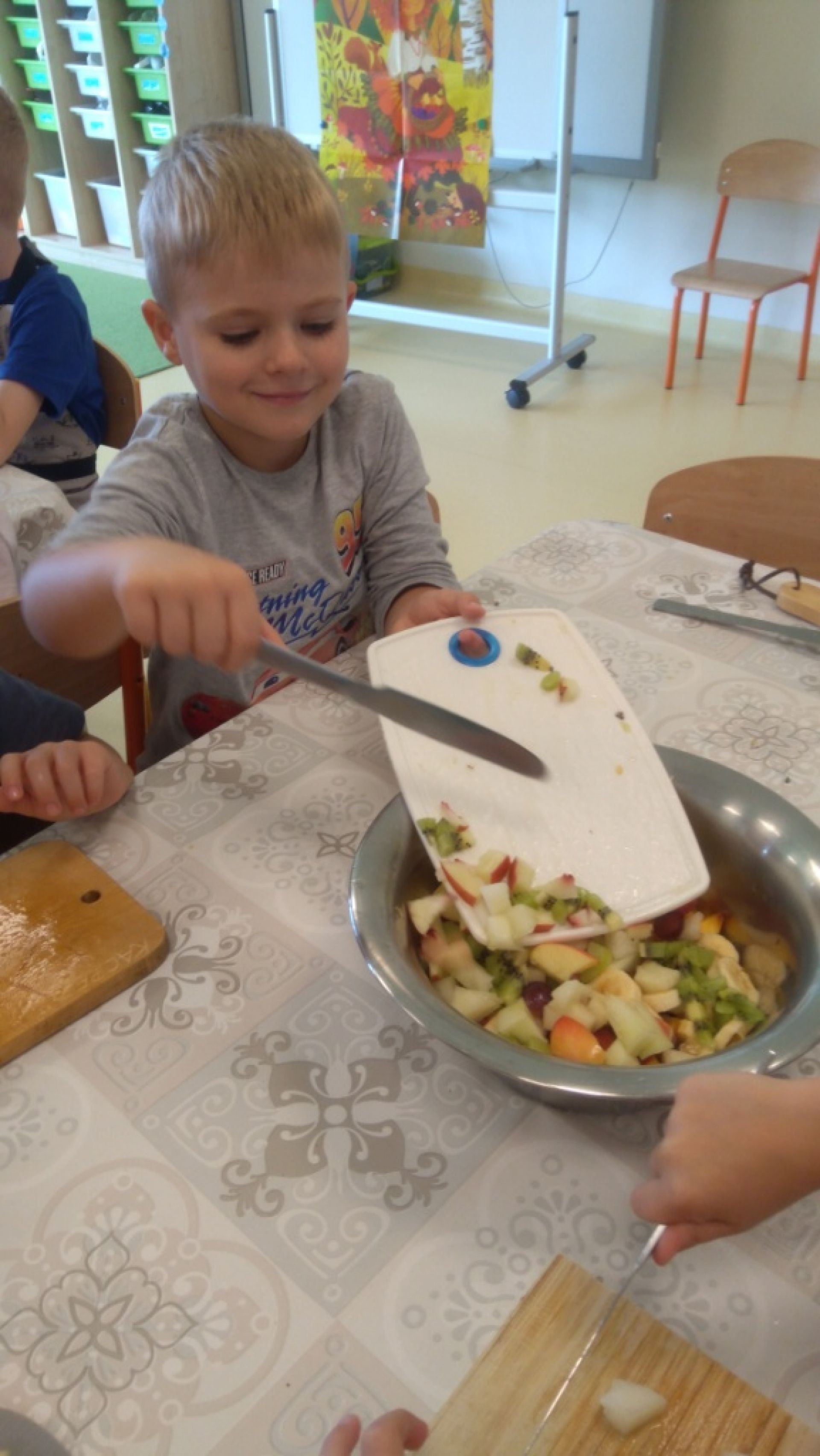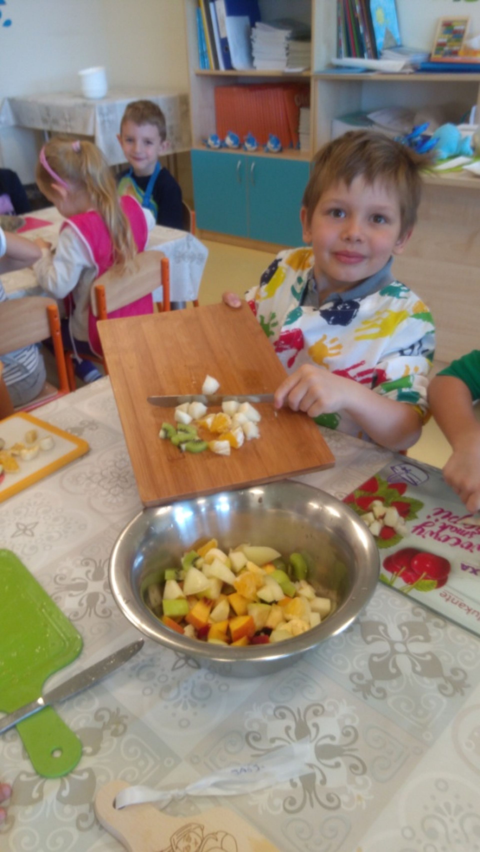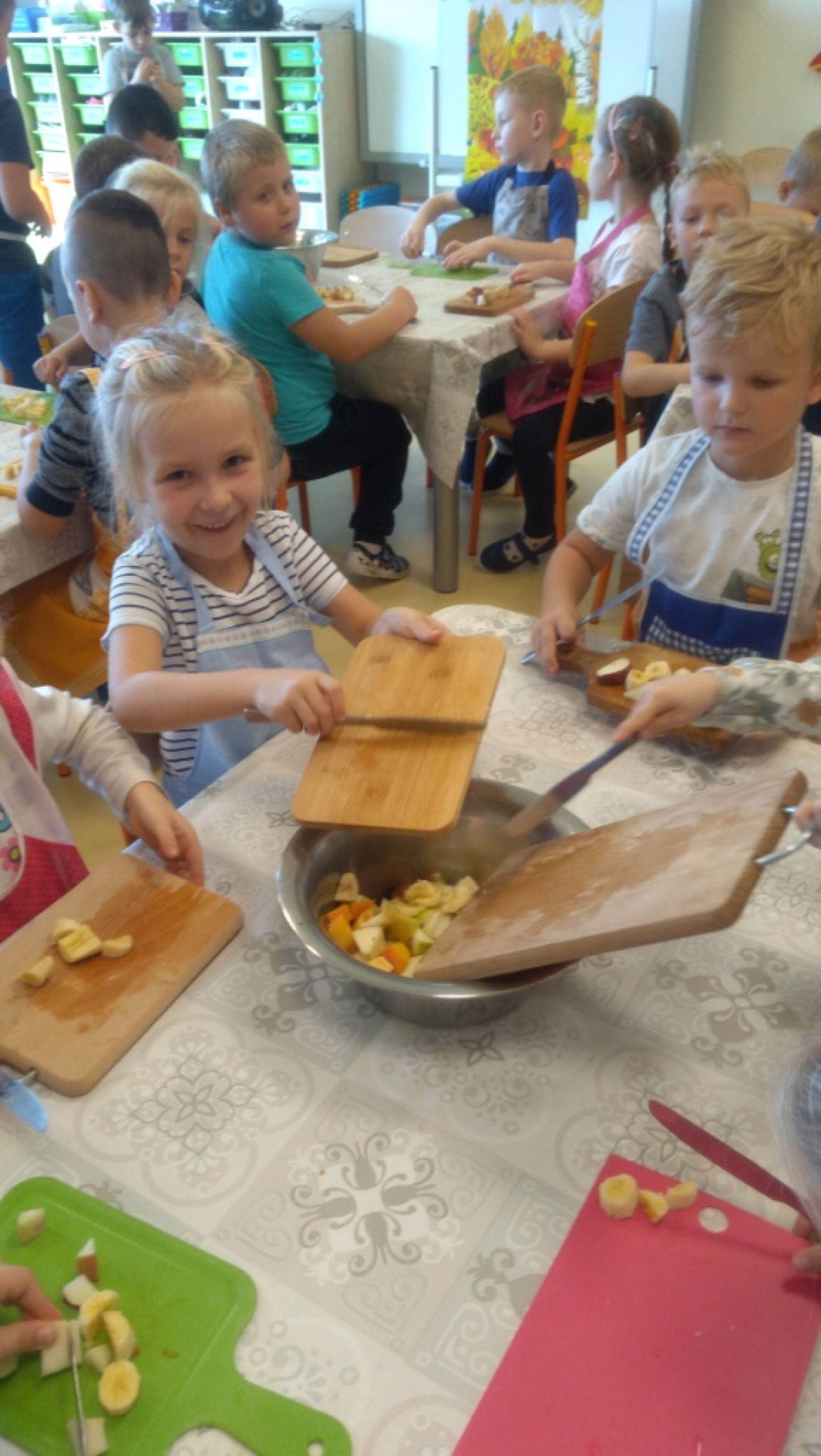 Delfinki uwielbiają to co smaczne, zdrowe i kolorowe! Dziś wspólnie zrobiły wspaniałą sałatkę owocową!