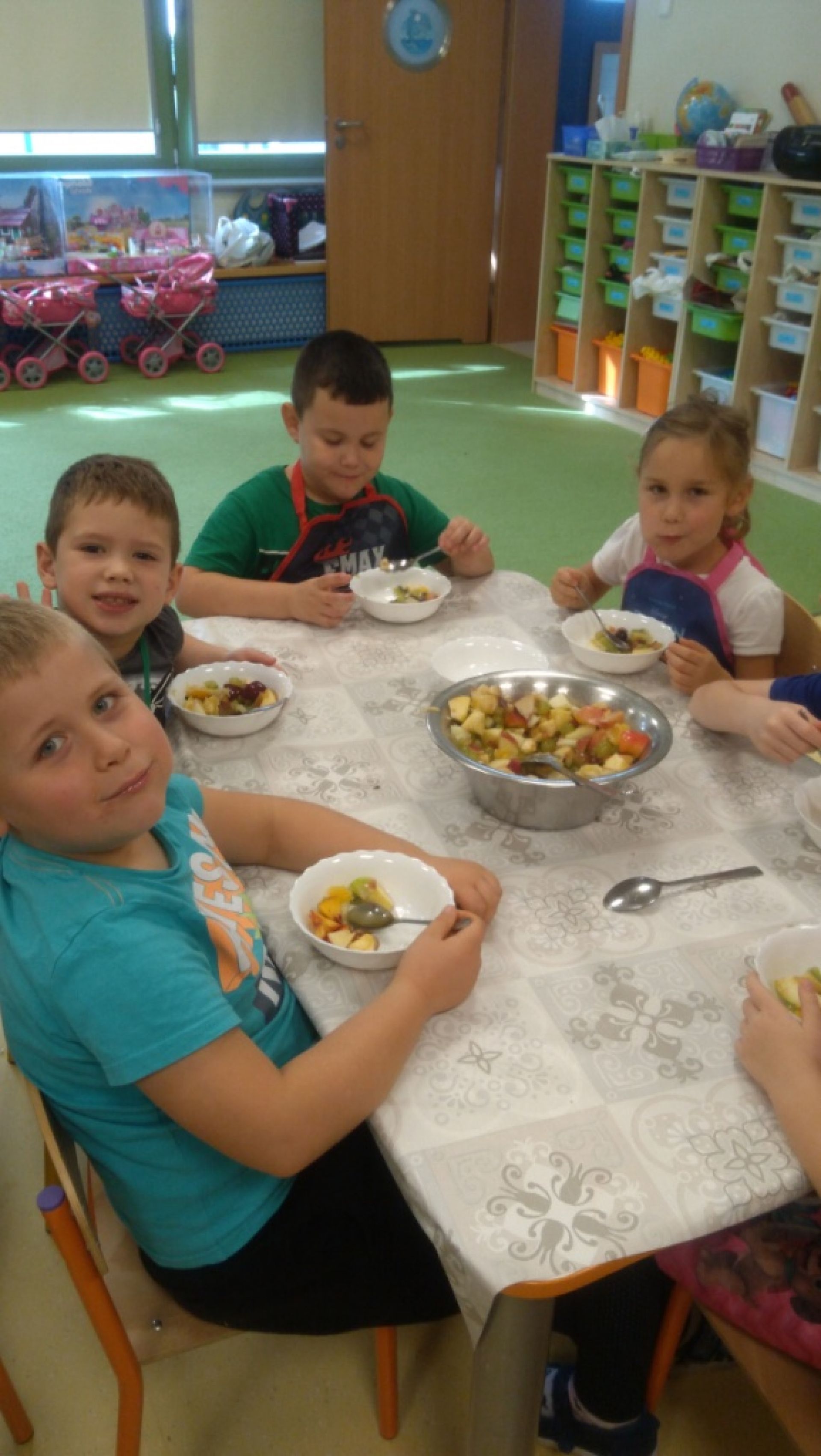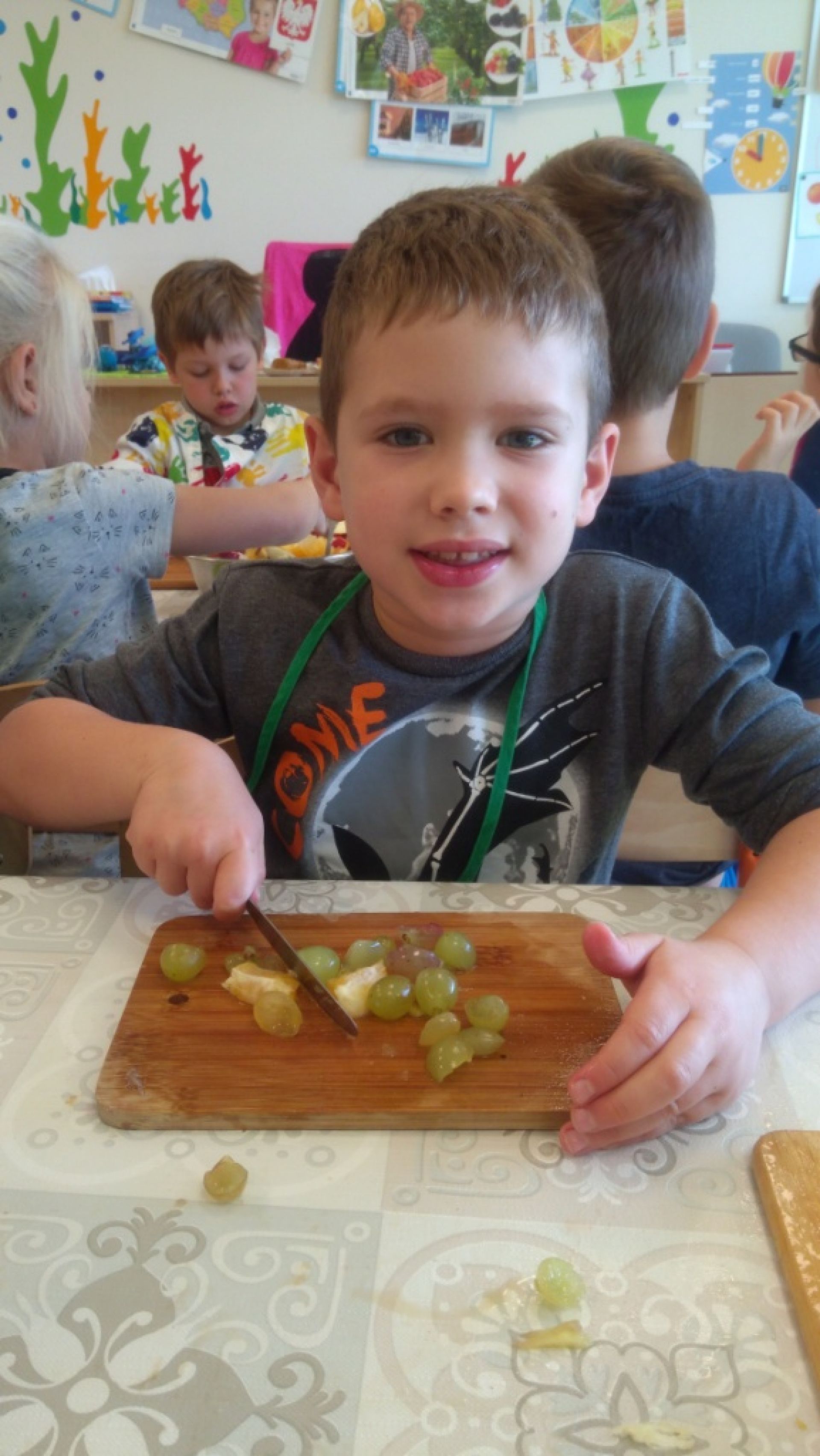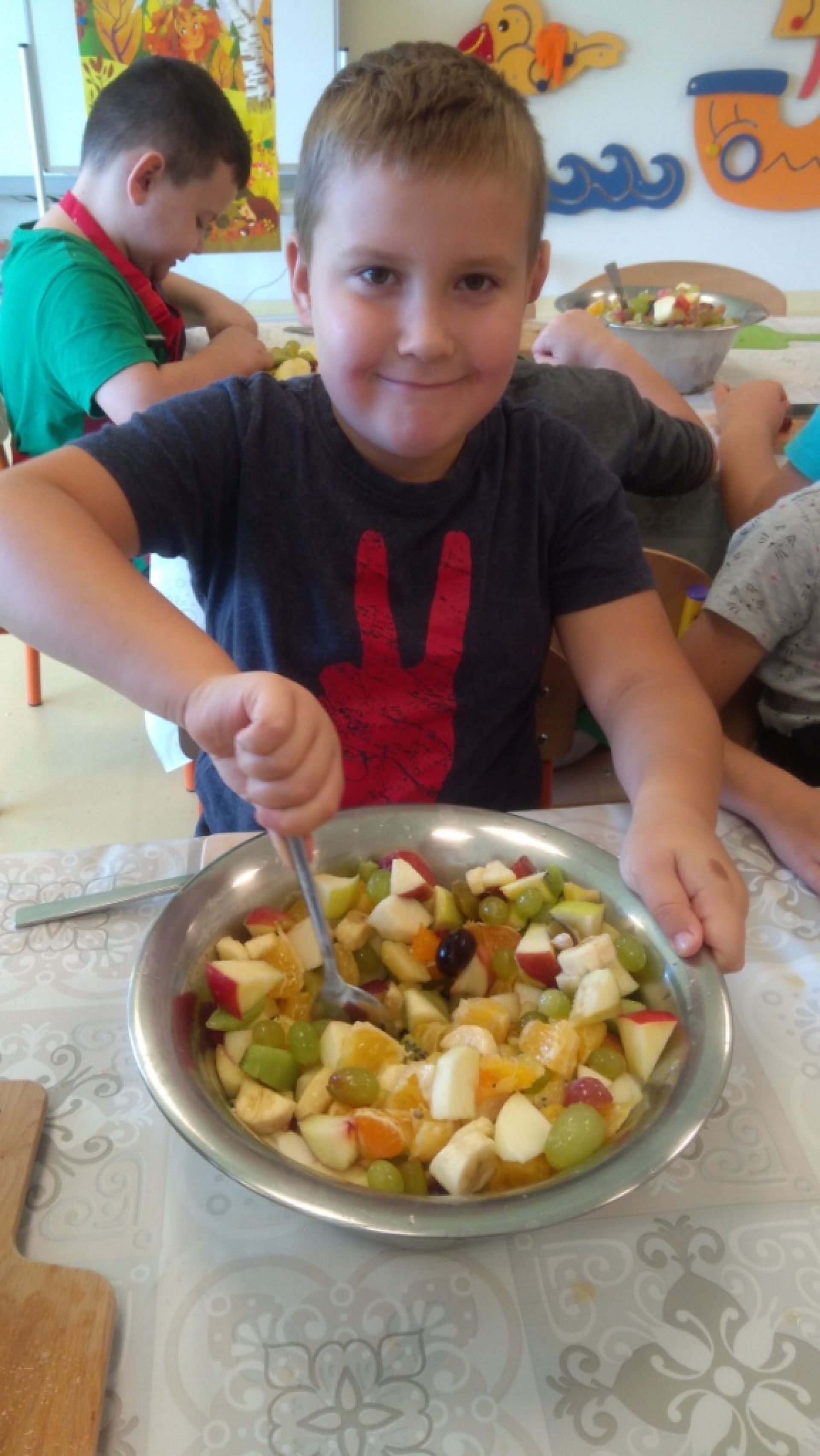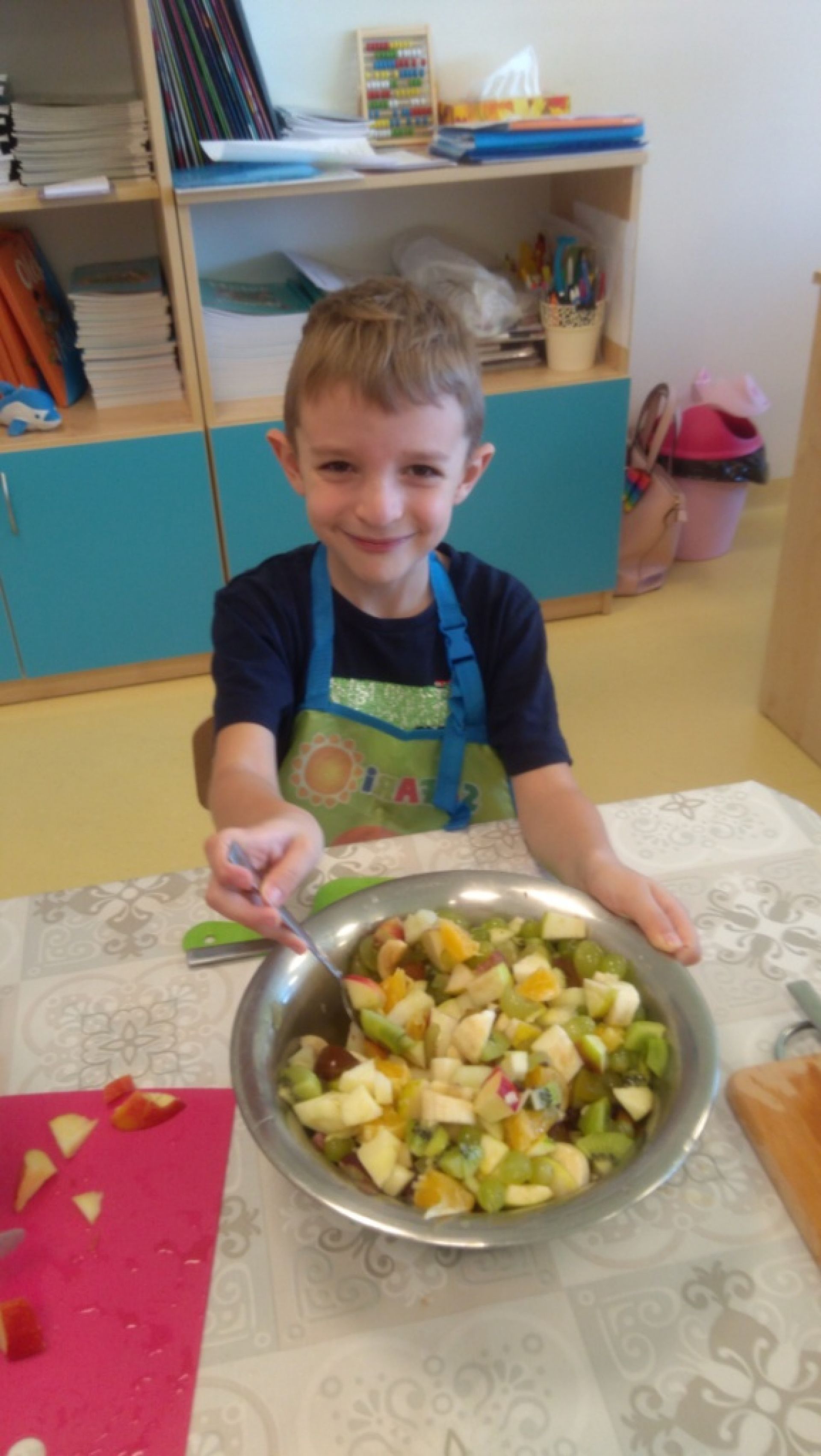 Delfinki uwielbiają to co smaczne, zdrowe i kolorowe! Dziś wspólnie zrobiły wspaniałą sałatkę owocową!