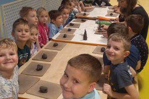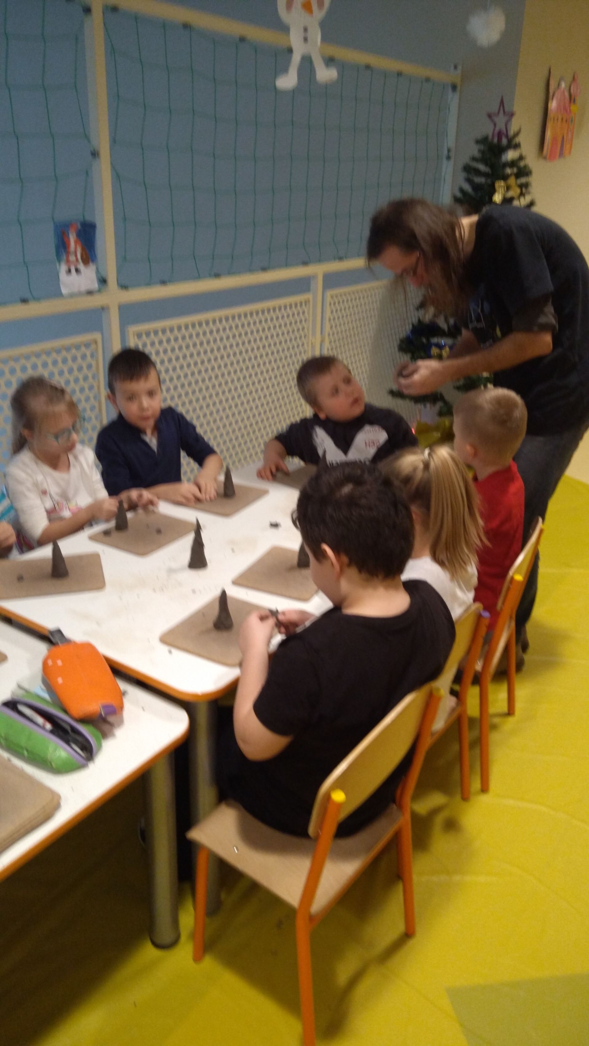 Dziś na zajęciach rzeźbiarskich dzieci lepiły z gliny choinki. Każda choinka jest wspaniała, jedyna w swoim rodzaju i pięknie przystrojona.