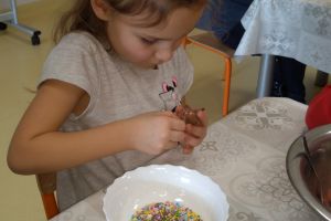 Dzieci piekły a następnie dekorowały świąteczne pierniczki, nadawały im różne kształty - choinki, reniferki, gwiazdki. Zapach pierniczków unosił się w całym przedszkolu. Święta zbliżają się dużymi krokami!