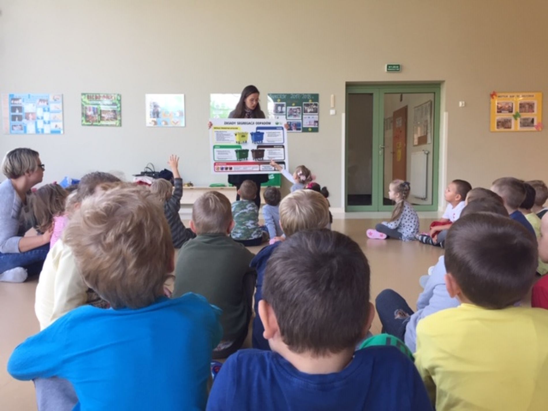 W czwartek 03.10.2019 r. mieliśmy zajęcia organizowane przez panią z Miejskiego Przedsiębiorstwa Oczyszczania. Dowiedzieliśmy się do jakich pojemników należy wkładać, szkło plastik, papier i bioodpady i dlaczego to jest ważne, oglądaliśmy miniaturki samochodów sprzątających nasze miasta.