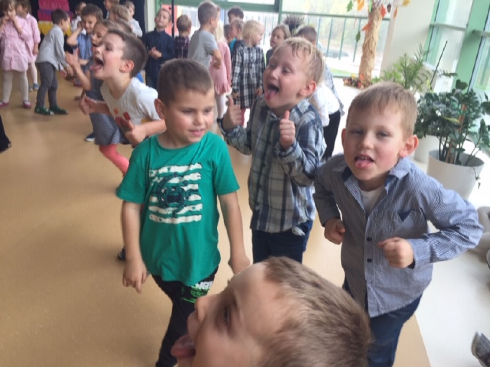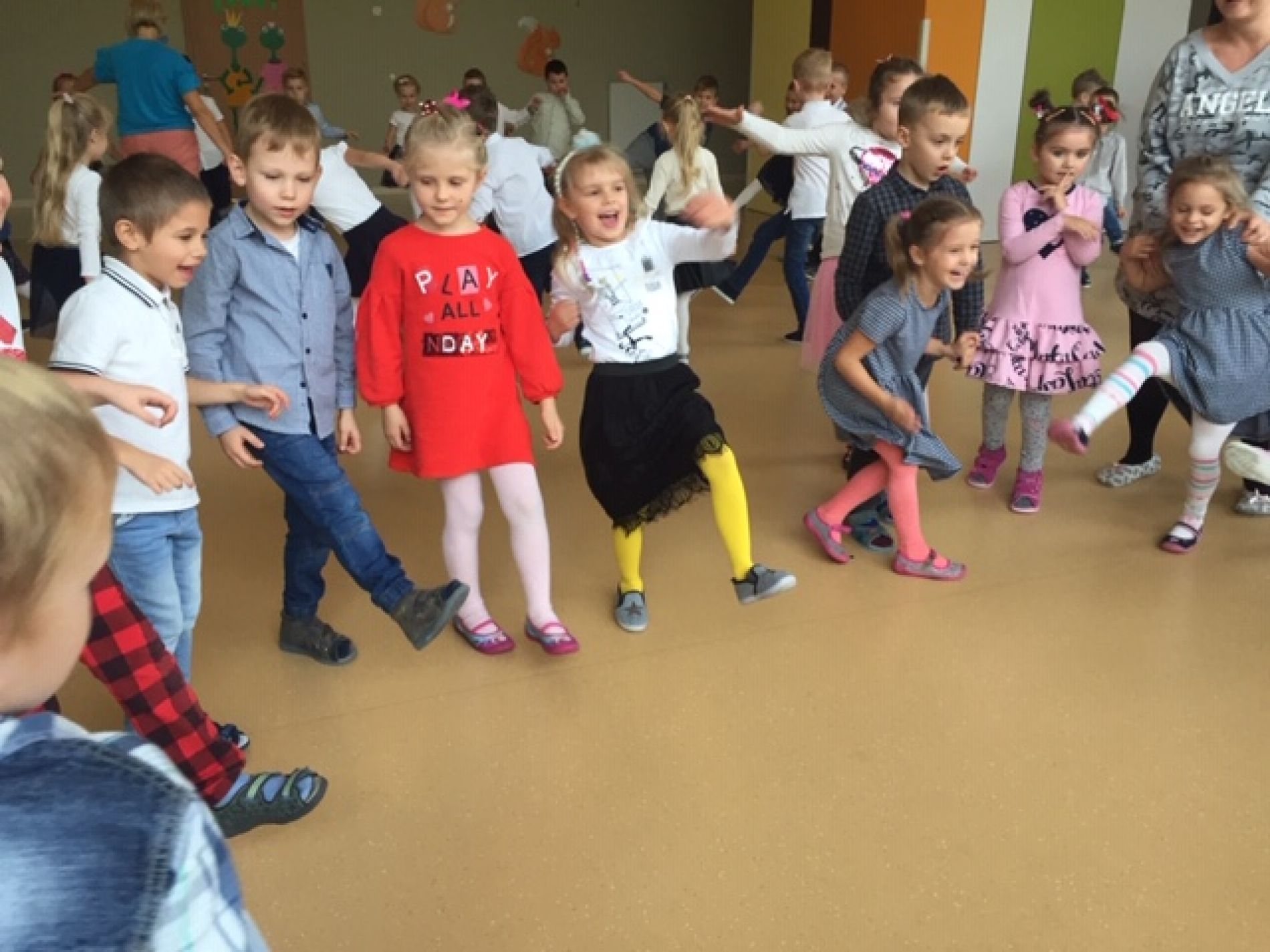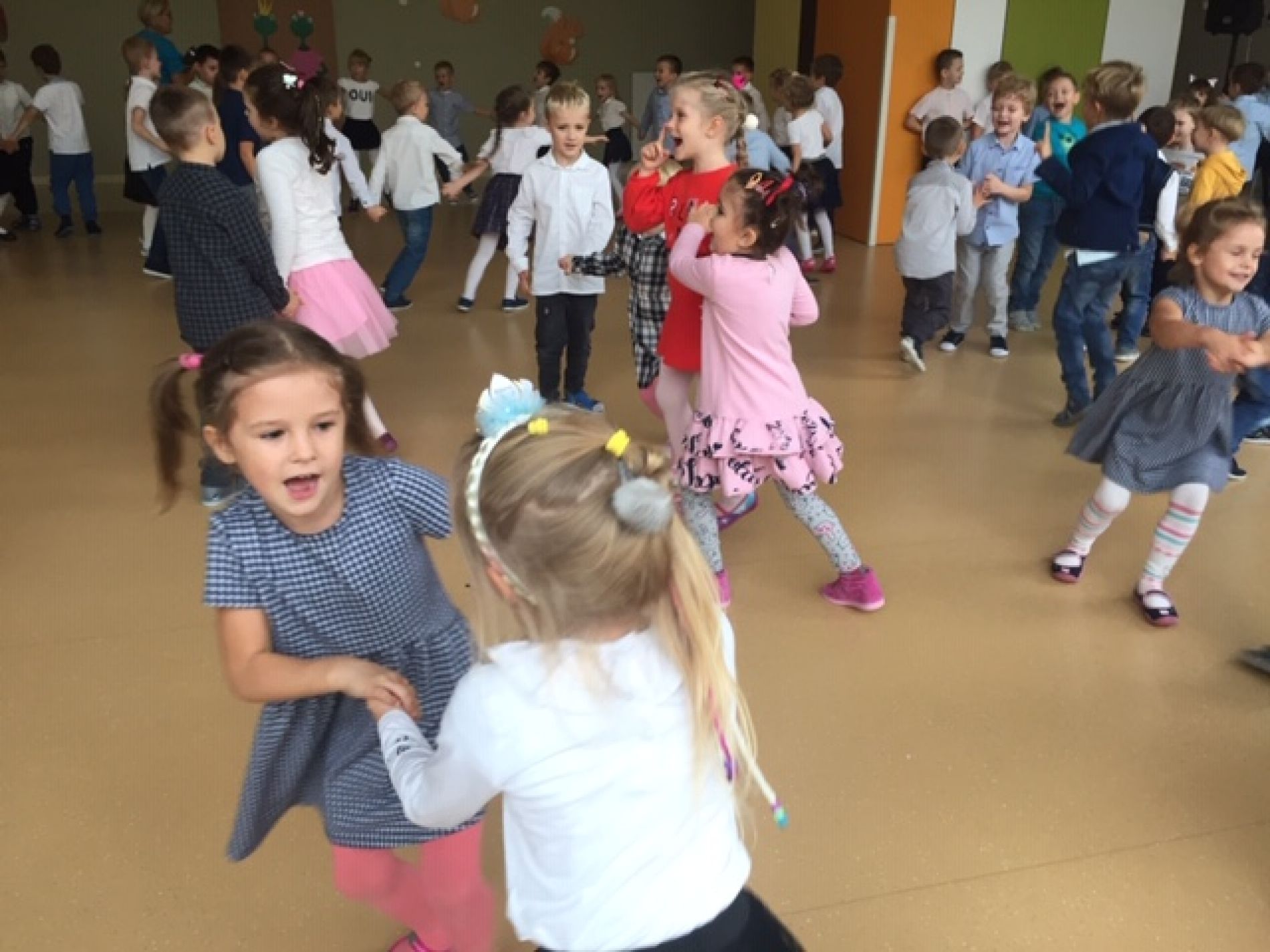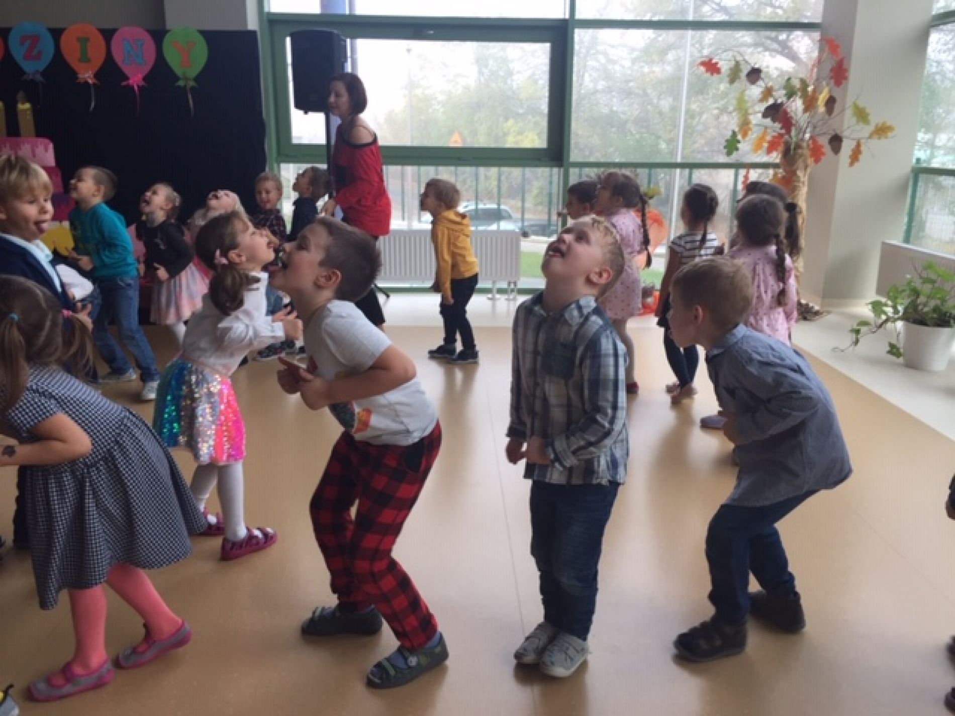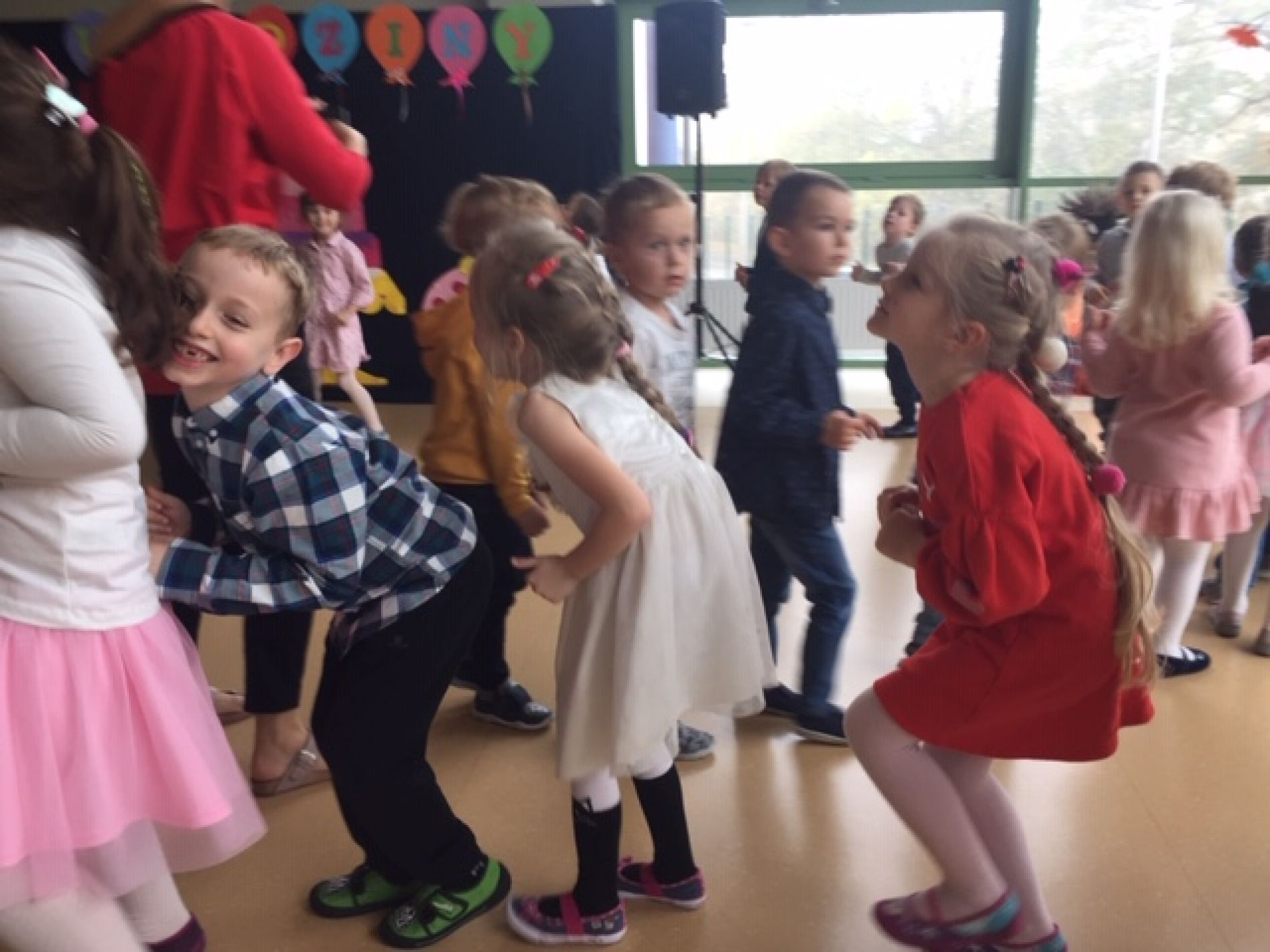 Dziś w naszym przedszkolu odbył się jesienny bal. Dzieci ze wszystkich grup wspólnie bawiły się w auli. Tańce i zabawy bardzo się podobały. Wszyscy świetnie się bawili, co można zauważyć na zdjęciach.