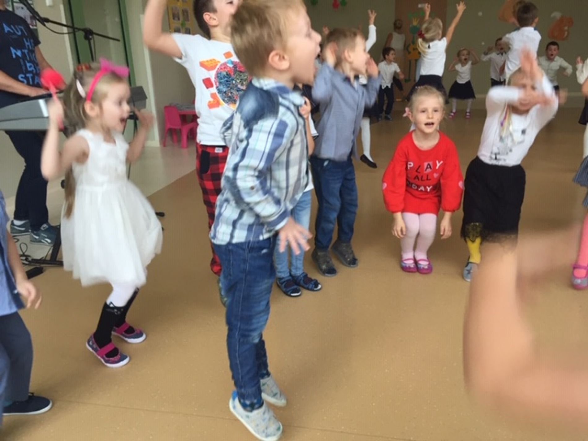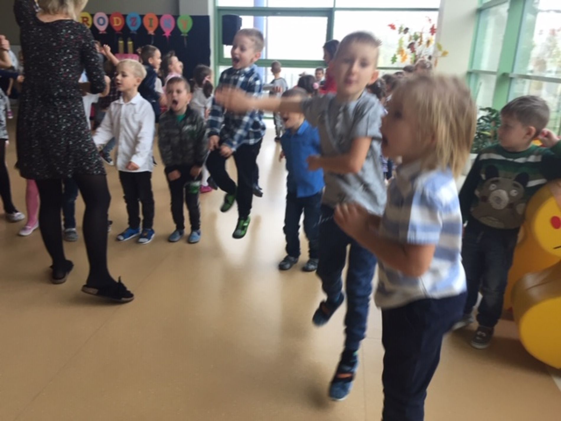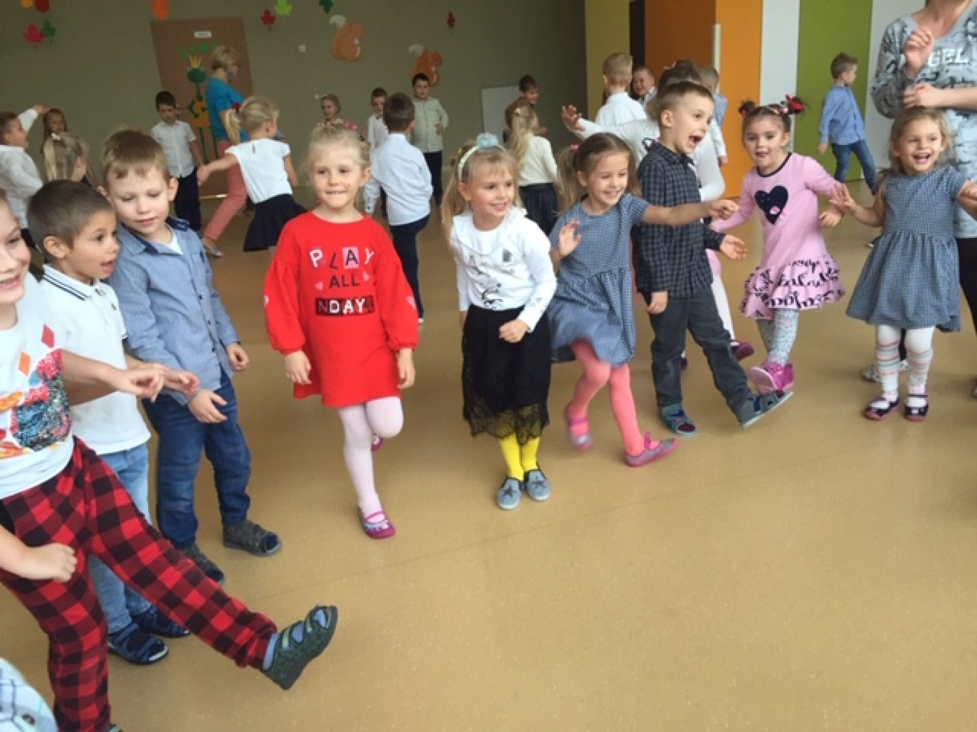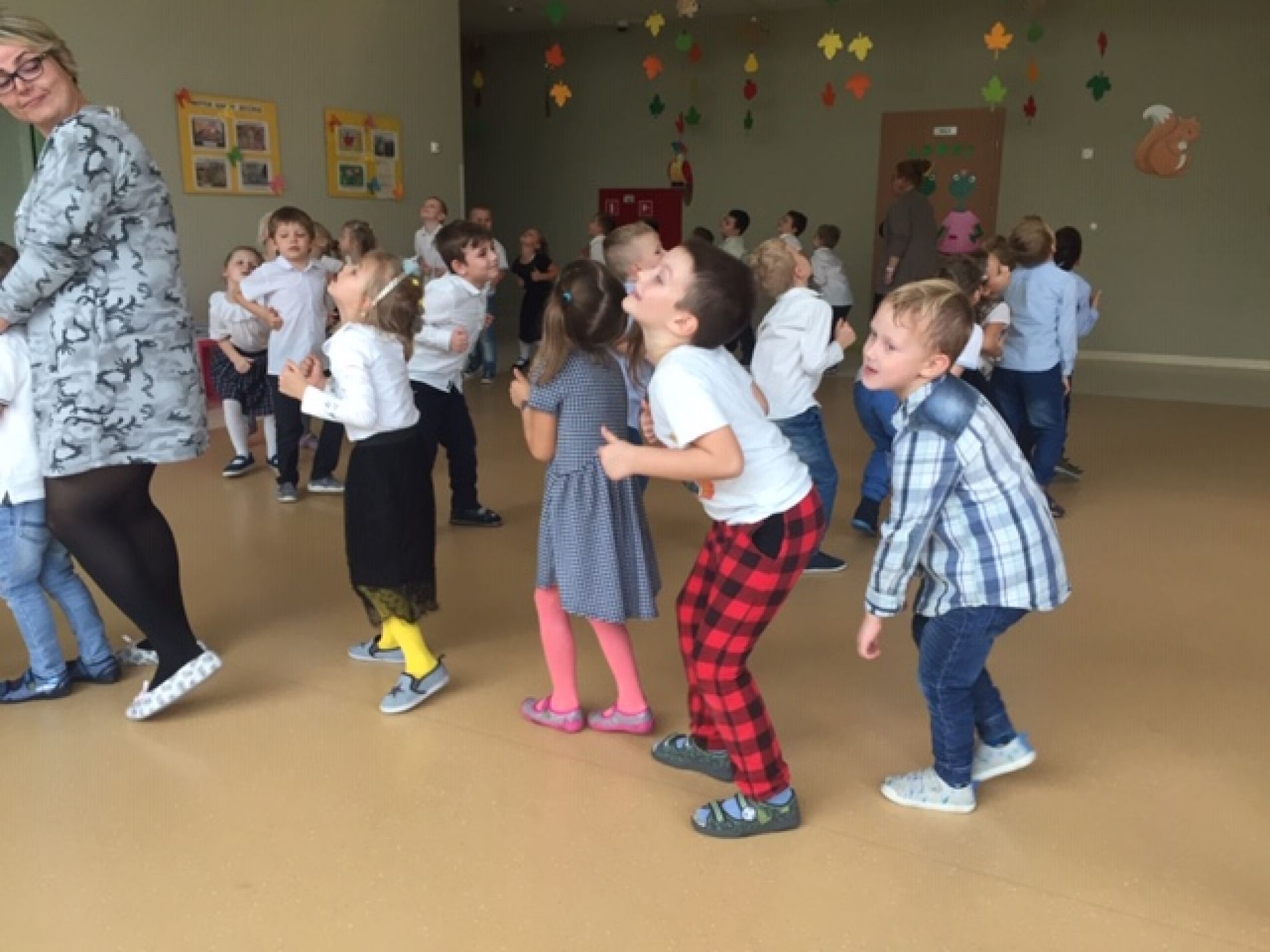Dziś w naszym przedszkolu odbył się jesienny bal. Dzieci ze wszystkich grup wspólnie bawiły się w auli. Tańce i zabawy bardzo się podobały. Wszyscy świetnie się bawili, co można zauważyć na zdjęciach.