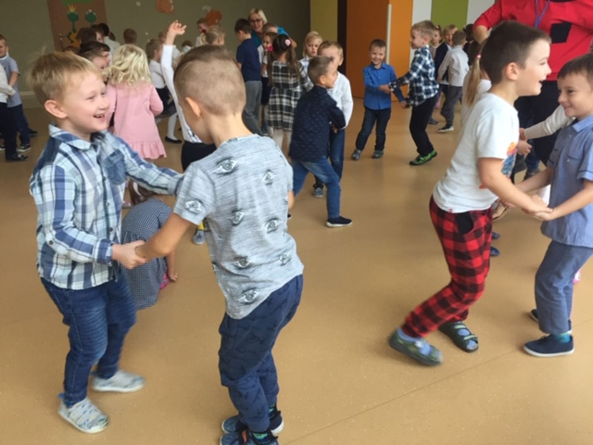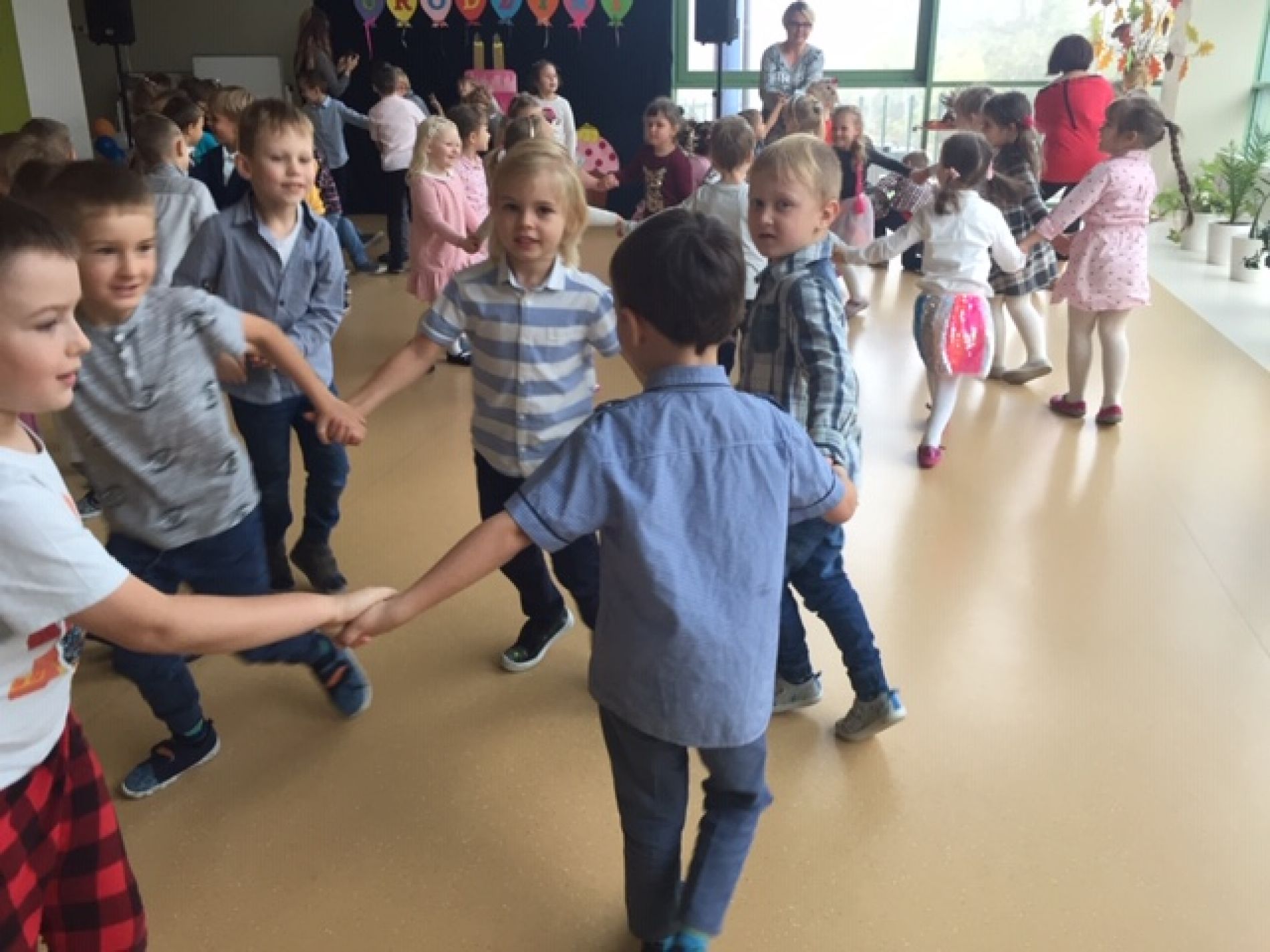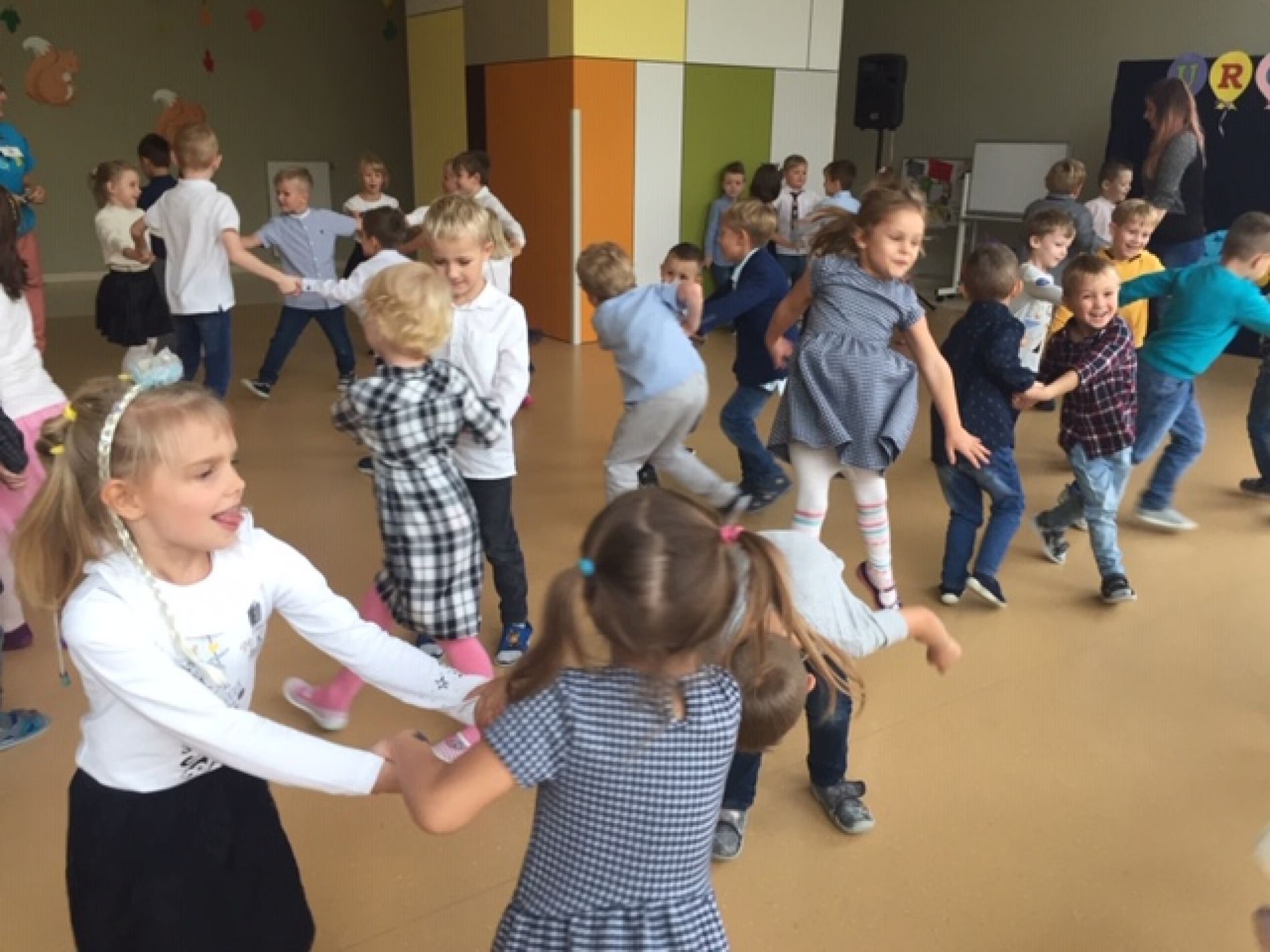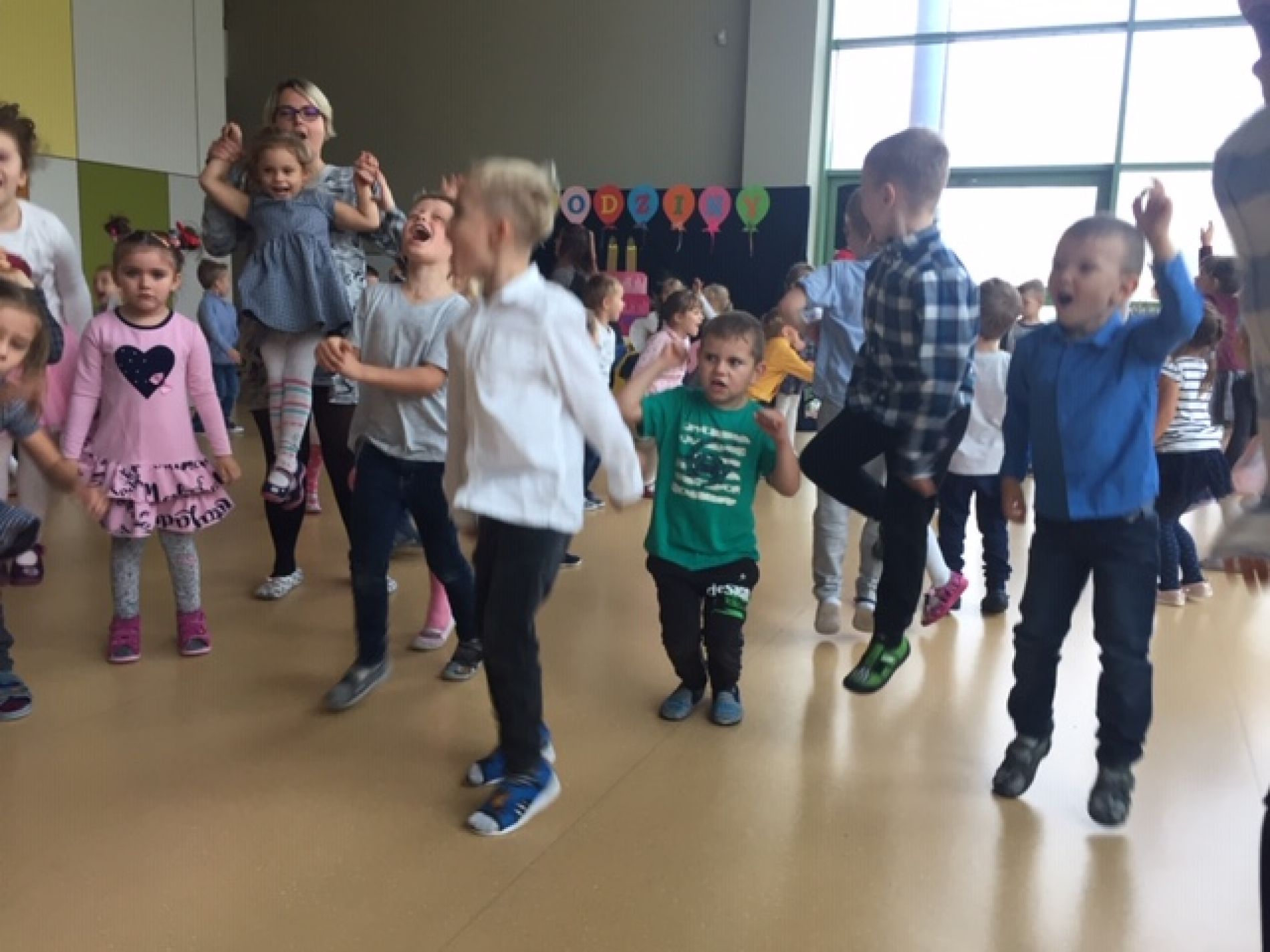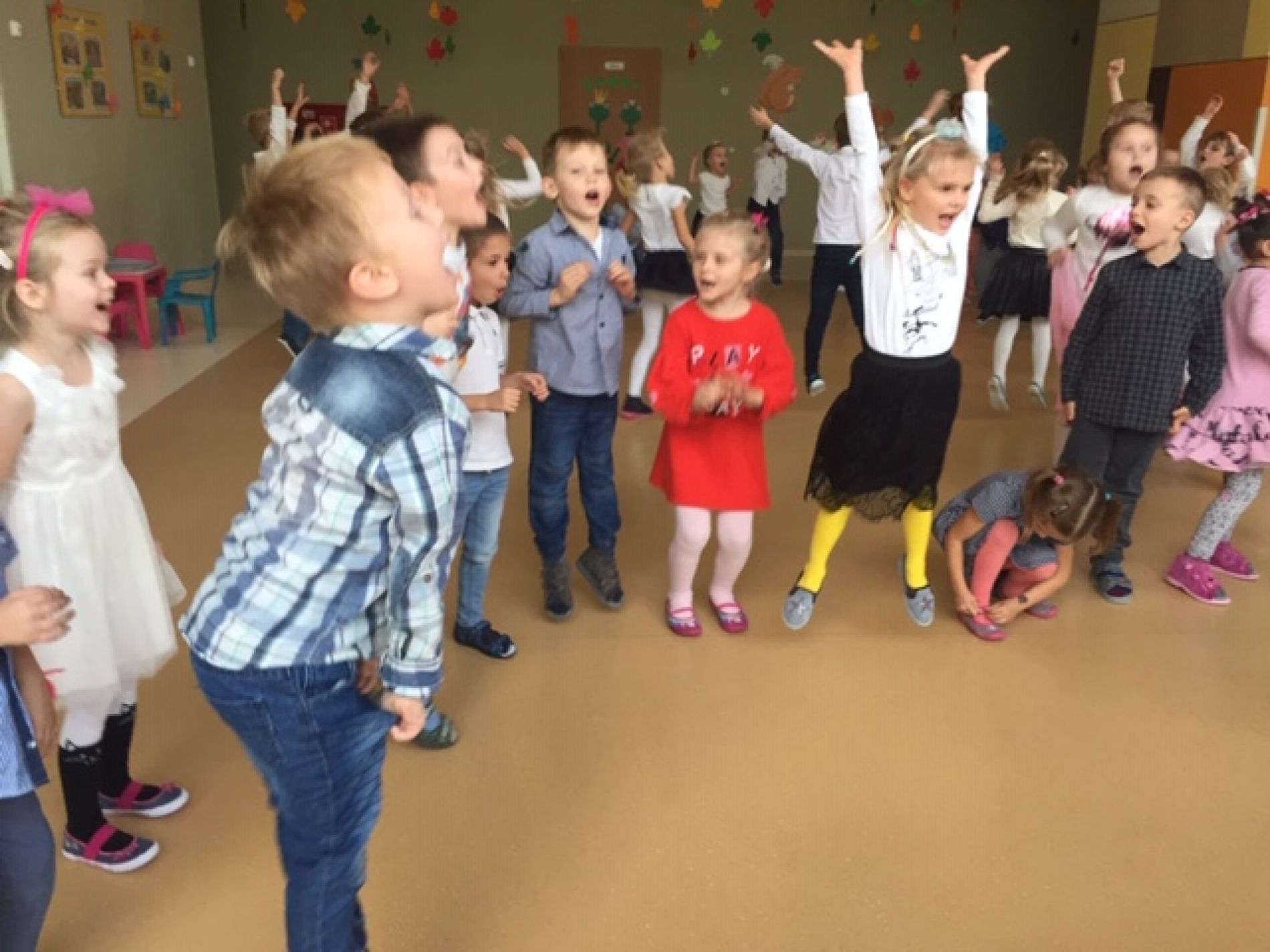 Dziś w naszym przedszkolu odbył się jesienny bal. Dzieci ze wszystkich grup wspólnie bawiły się w auli. Tańce i zabawy bardzo się podobały. Wszyscy świetnie się bawili, co można zauważyć na zdjęciach.