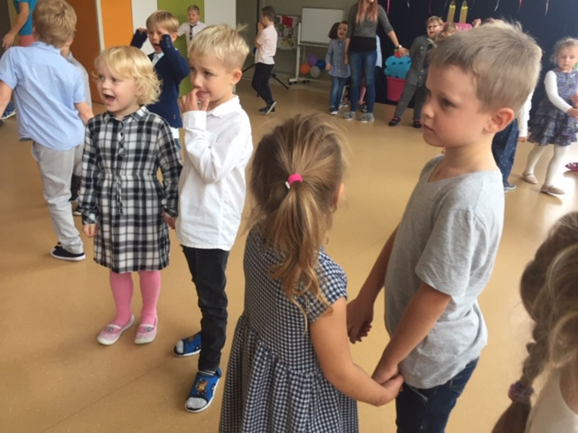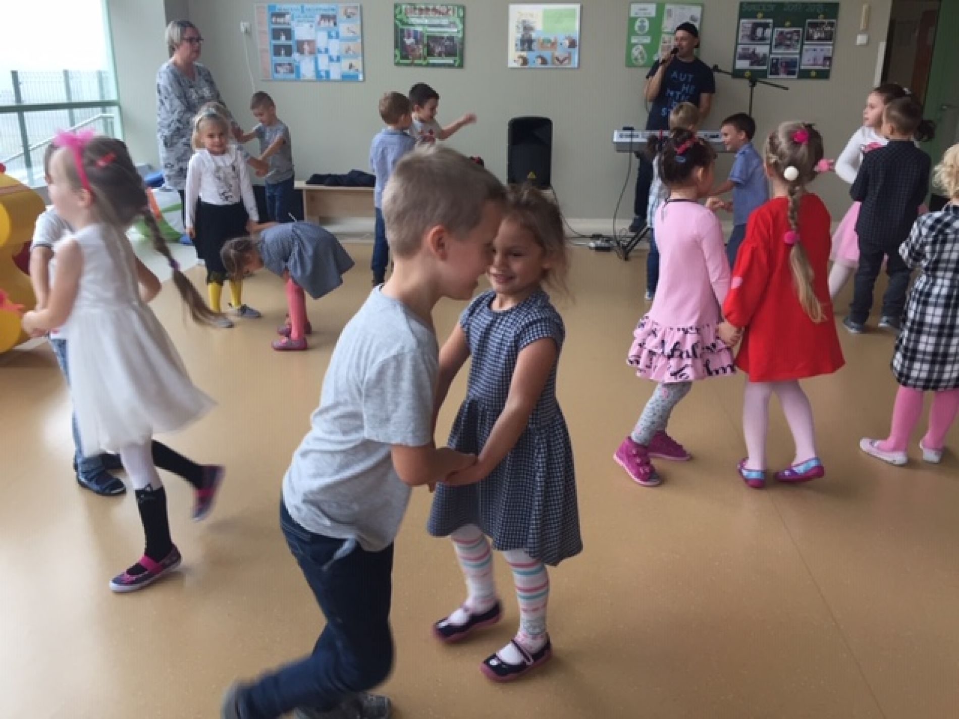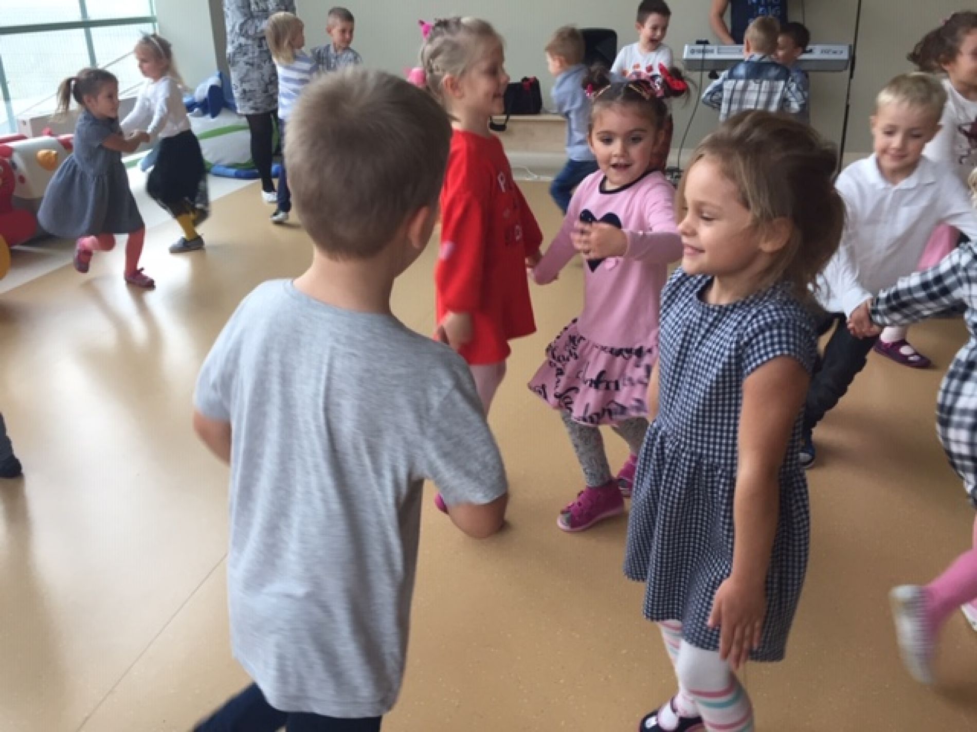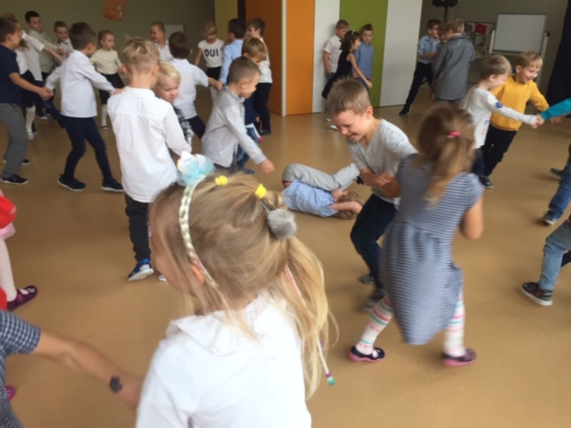 Dziś w naszym przedszkolu odbył się jesienny bal. Dzieci ze wszystkich grup wspólnie bawiły się w auli. Tańce i zabawy bardzo się podobały. Wszyscy świetnie się bawili, co można zauważyć na zdjęciach.