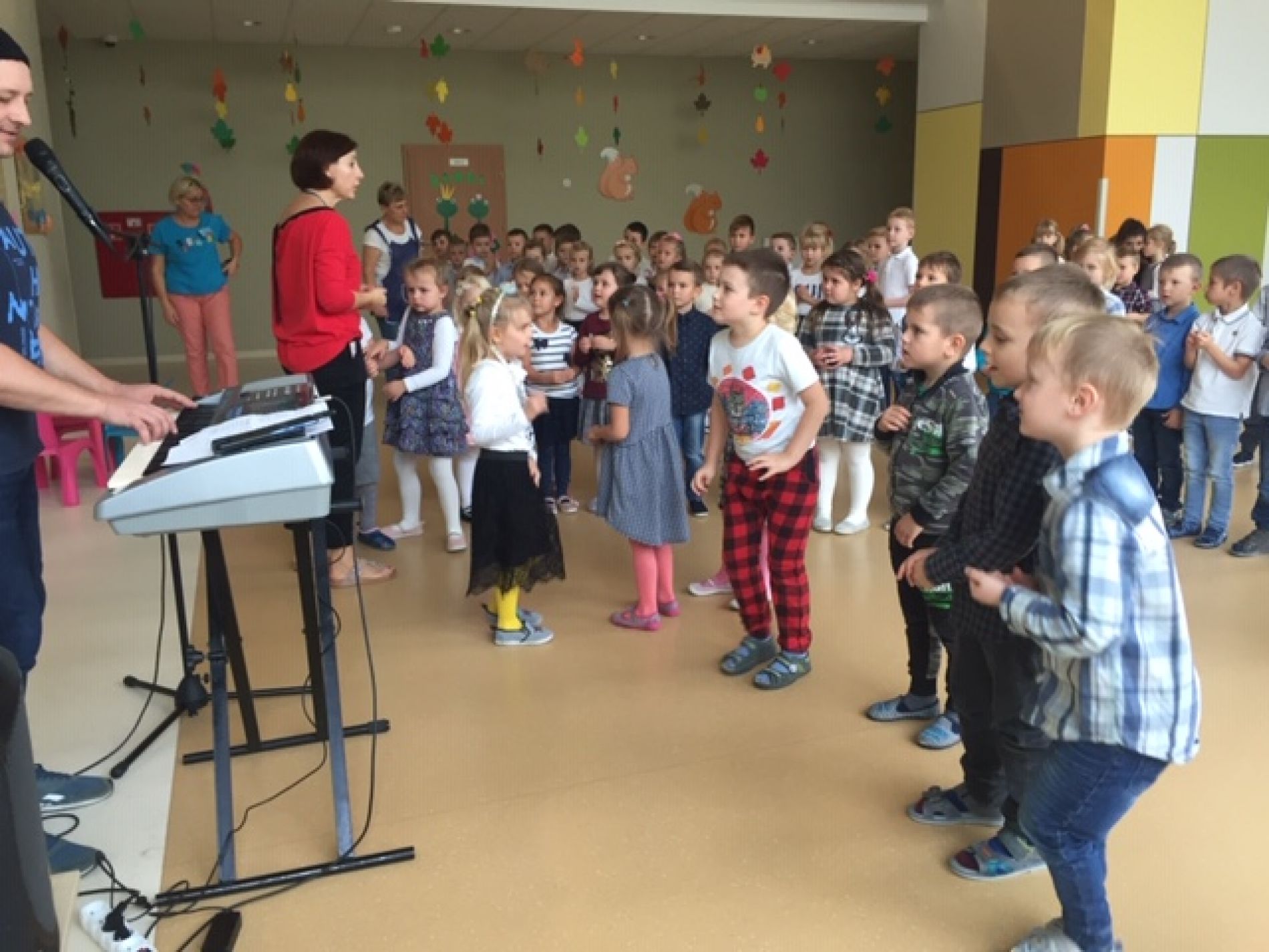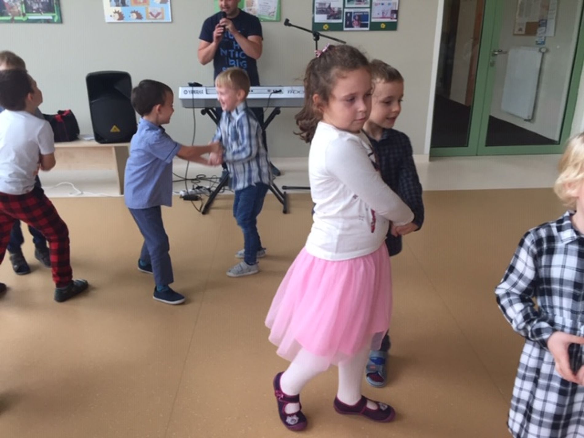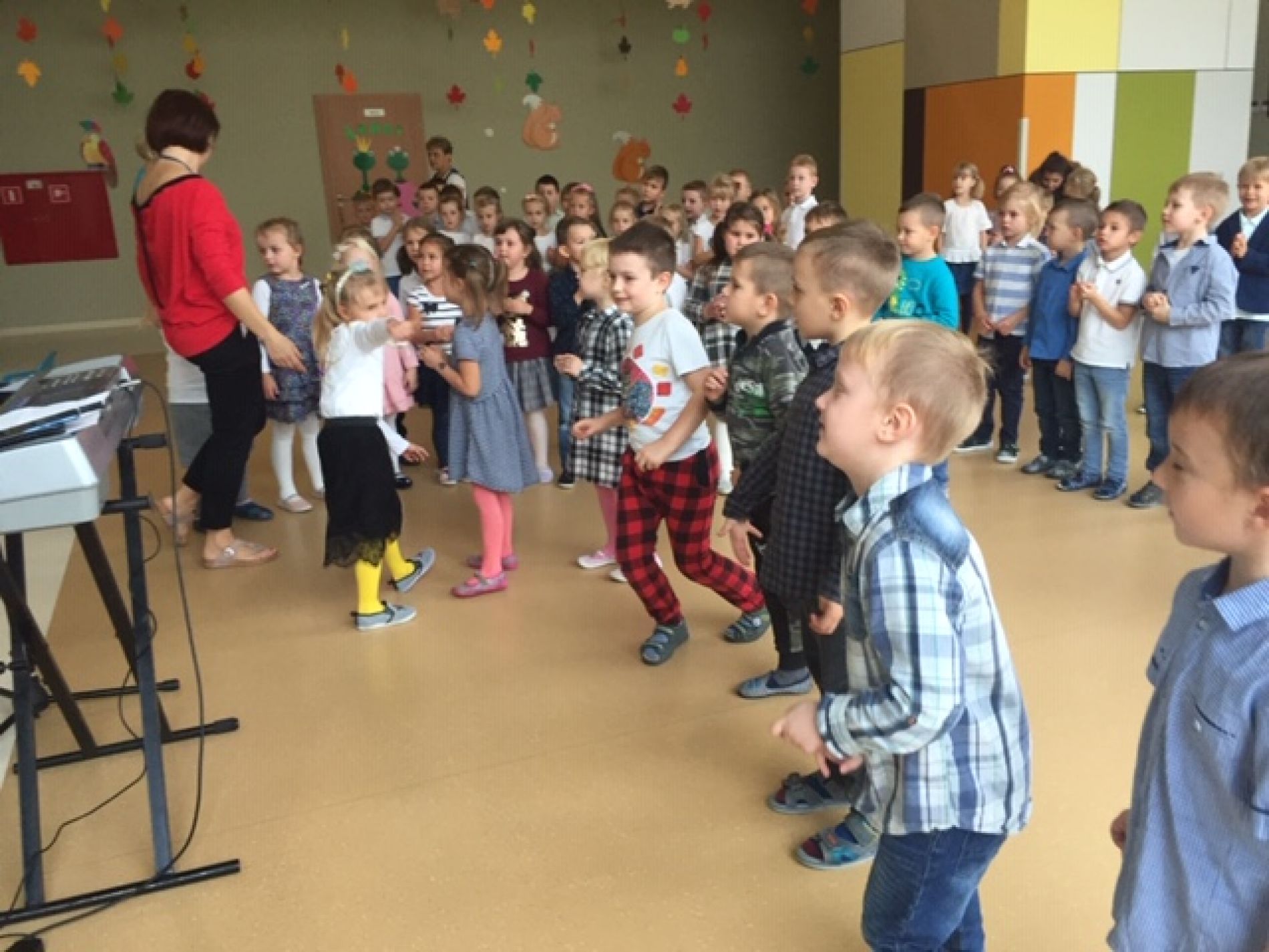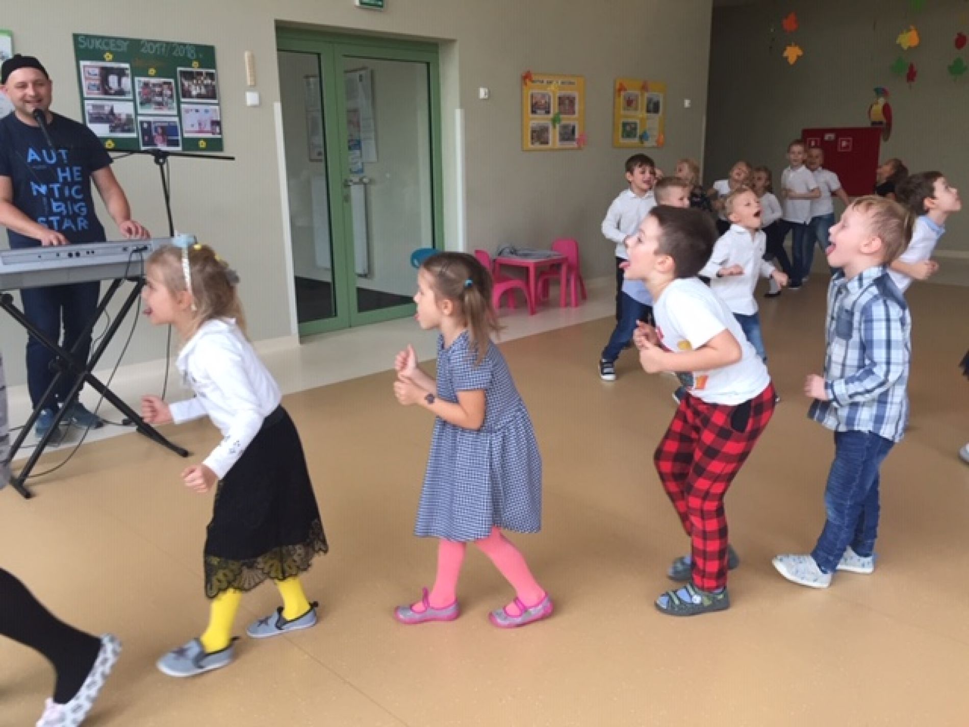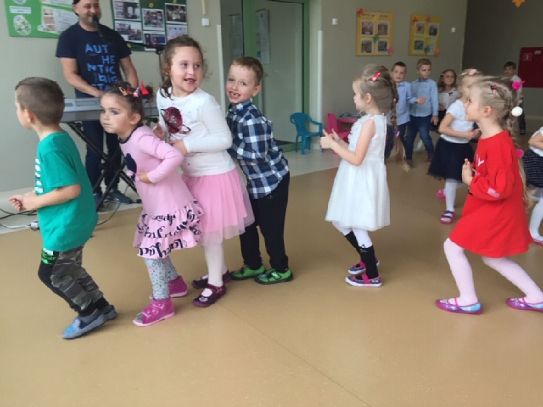 Dziś w naszym przedszkolu odbył się jesienny bal. Dzieci ze wszystkich grup wspólnie bawiły się w auli. Tańce i zabawy bardzo się podobały. Wszyscy świetnie się bawili, co można zauważyć na zdjęciach.