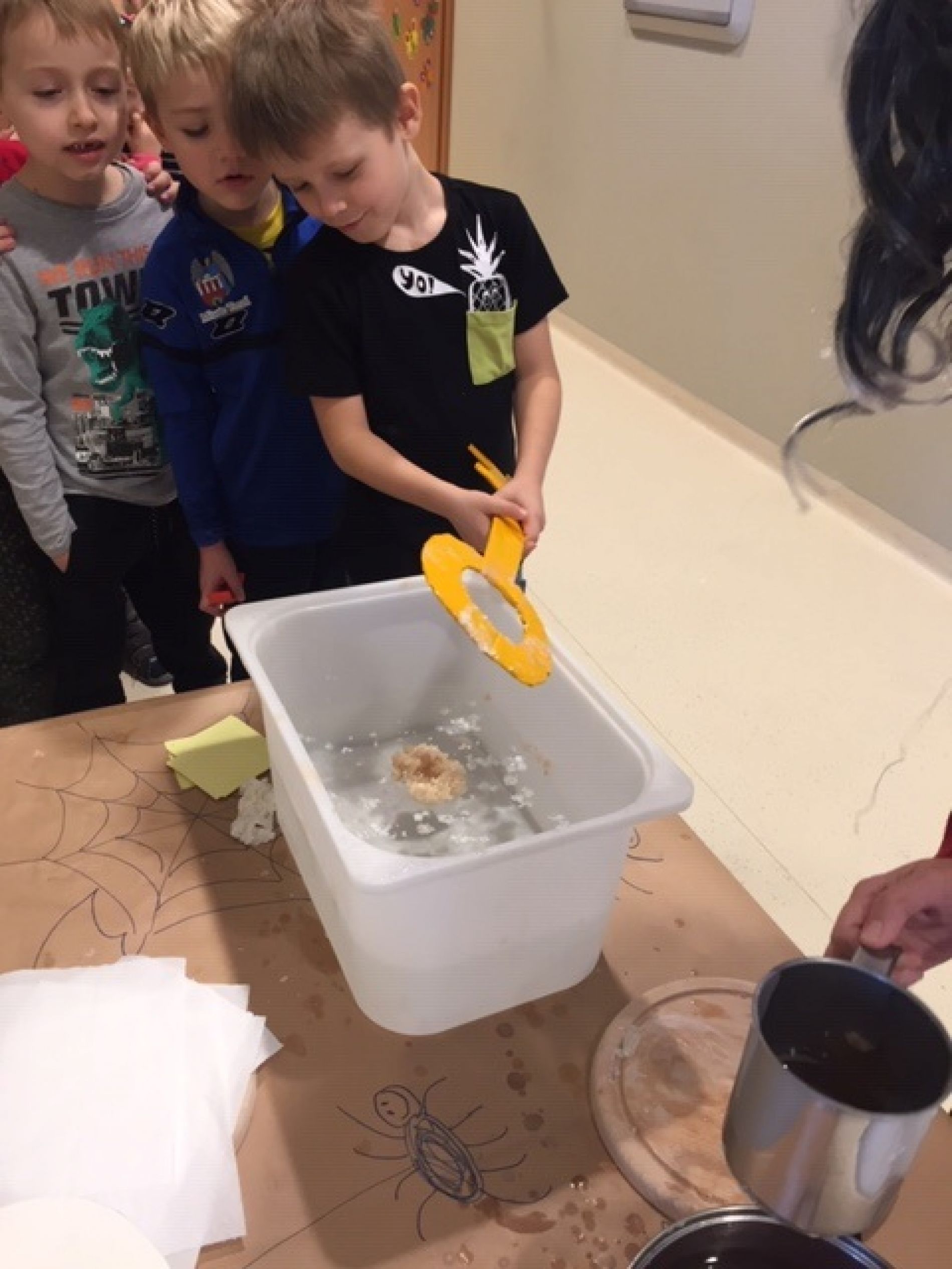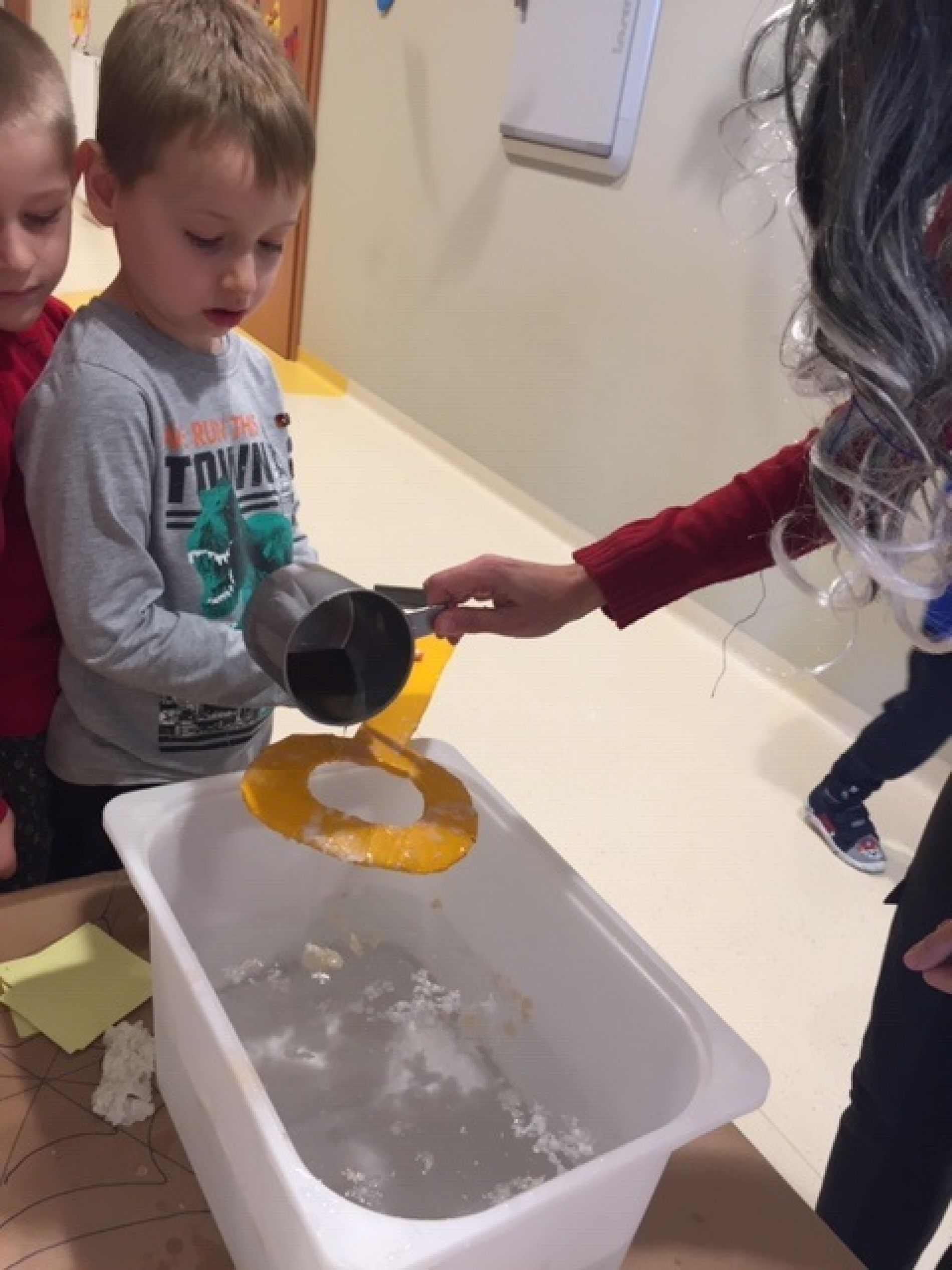 W piątek w naszej grupie obchodziliśmy Andrzejki. Dzieci uczestniczyły w tradycyjnych wróżbach, "chodzące buty", "lanie wosku", to było ciekawe zajęcie rozwijające wyobraźnię, w cieniach powstałych z woskowych figur, każdy widział coś innego.