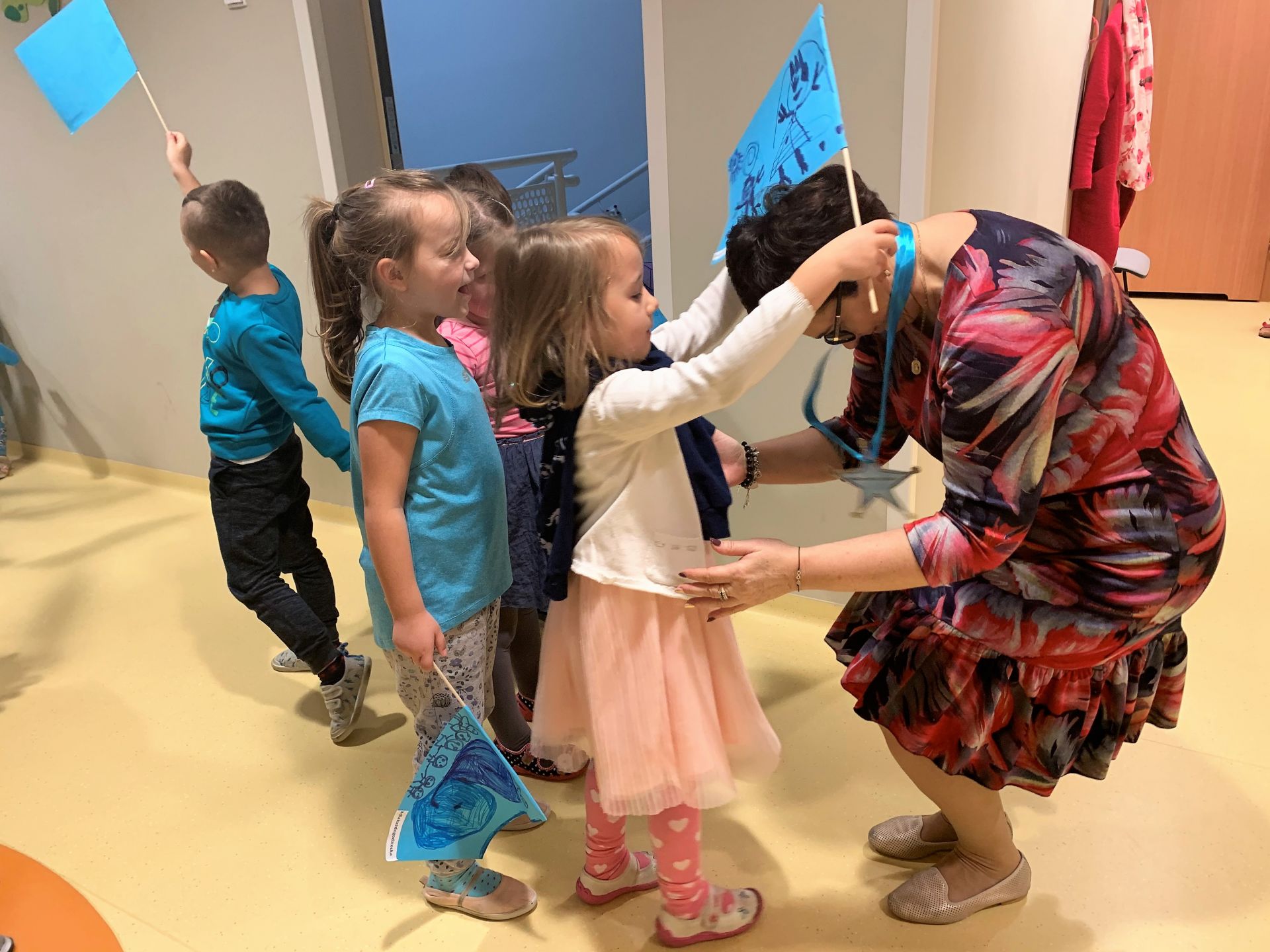 Nasze przedszkole wzięło udział w światowych obchodach Międzynarodowego Dnia Praw Dziecka organizowanych przez UNICEF Polska. W tym roku przypada wyjątkowa - 30 rocznica uchwalenia Konwencji o prawach dziecka. Wspólnie z przedszkolakami wzięliśmy udział w niebieskim marszu „Prawa dziecka dla każdego”. Tego dnia nasza Pani Dyrektor otrzymała od dzieci niebieską odznakę Strażnik Praw Dziecka na znak respektowania praw dziecka w Przedszkolu w Małej Nieszawce!