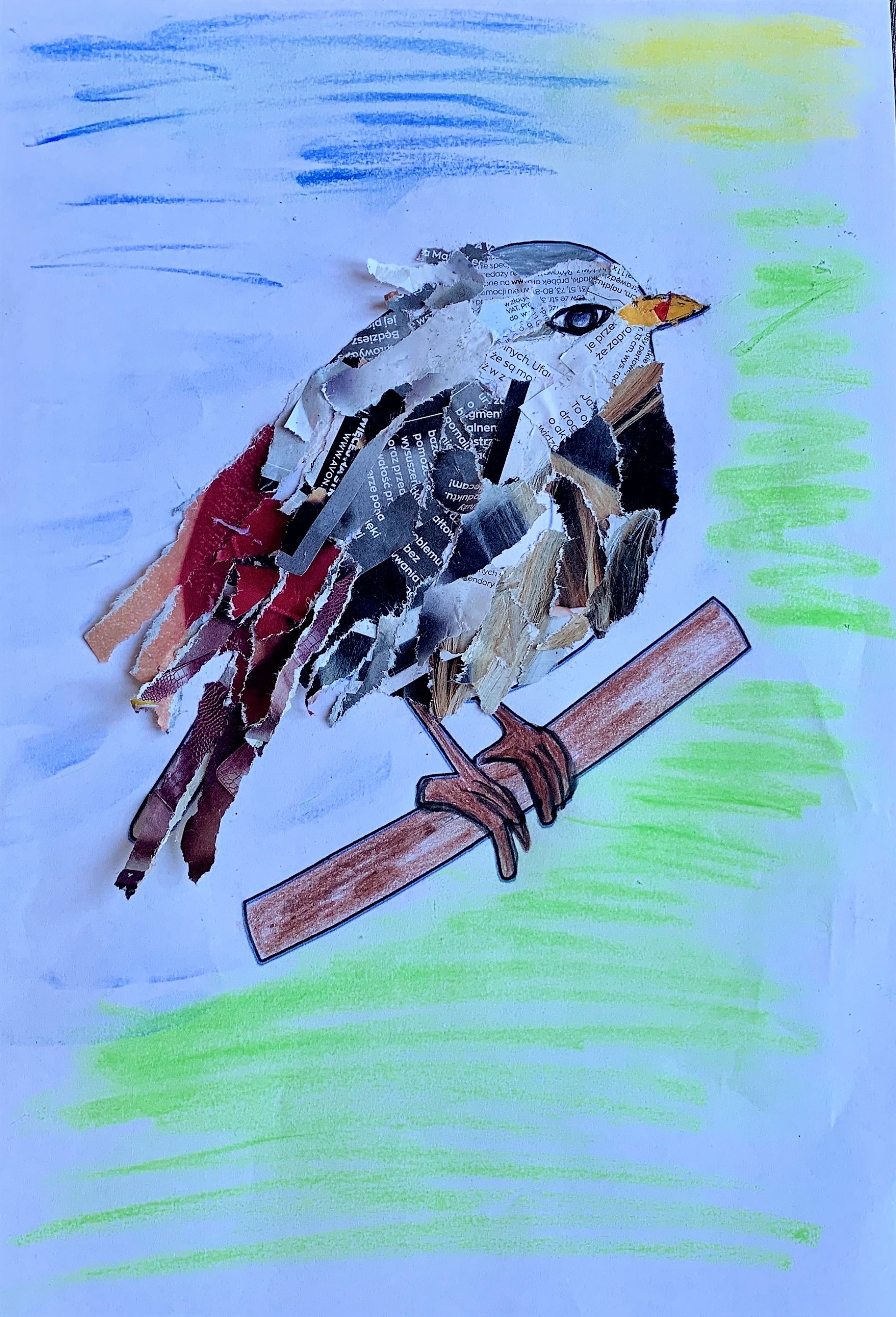 2. Praca plastyczna Wiosenny ptaszek - wydzieranka