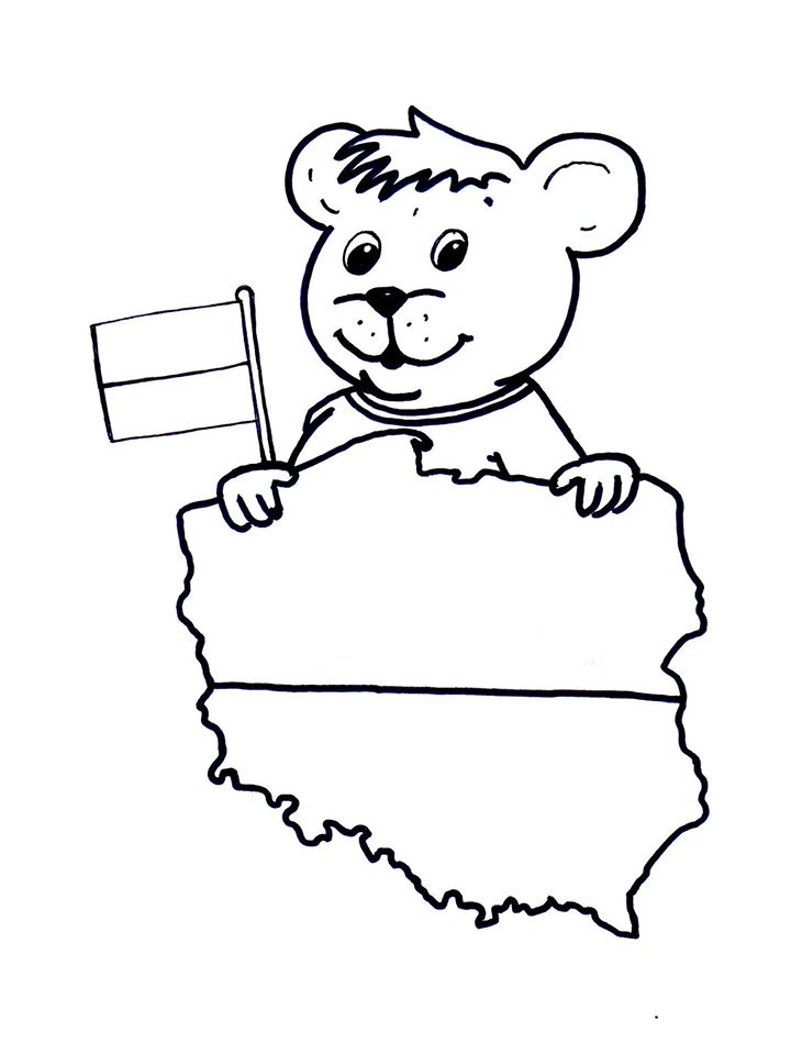 A teraz popatrzcie na mapę Polski, którą trzyma Mały Miś. Czy uda się Wam wskazać położenie Warszawy na mapie misia?