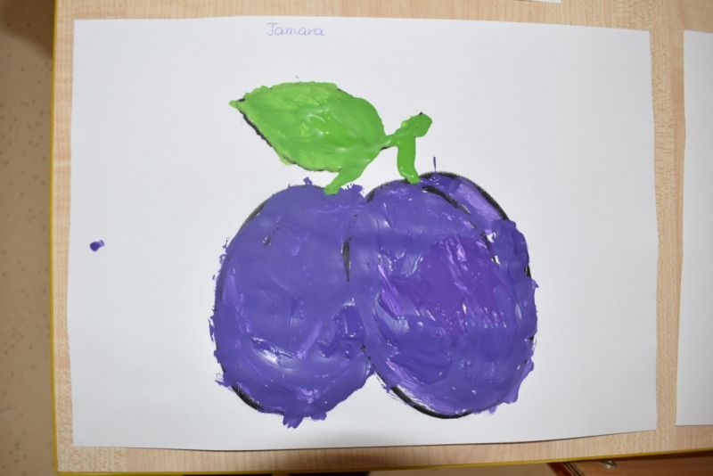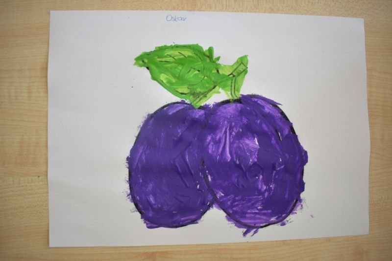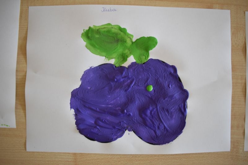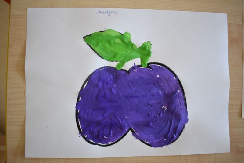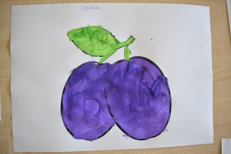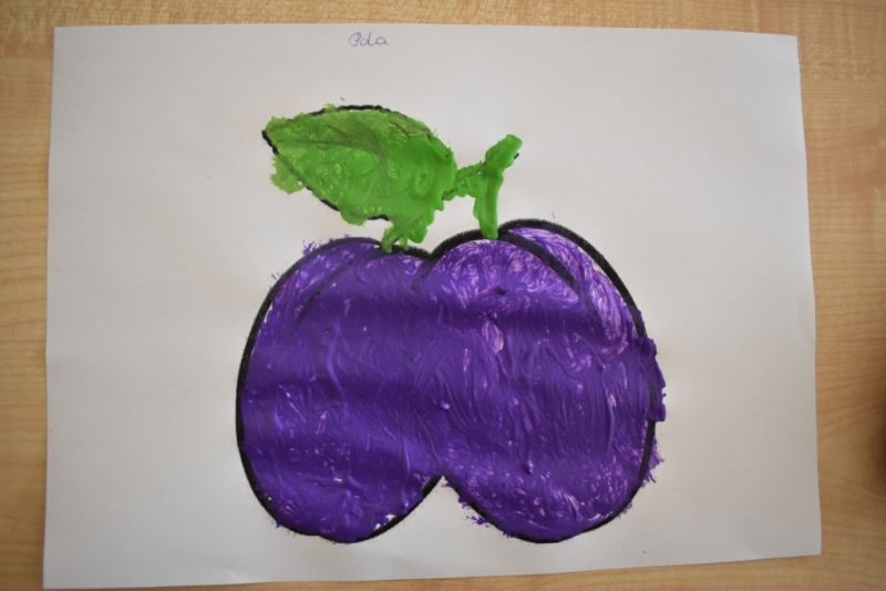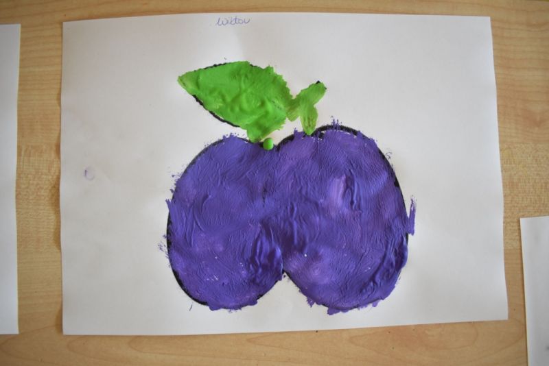 Dzisiaj rozpoczęliśmy kolejną tematykę w miesiącu październiku. W tym tygodniu będziemy mówić o owocach. Na początek wykonaliśmy znany wszystkim owoc- śliwkę (praca wykonana farbami plakatowymi). Rodziców zapraszamy do podziwiania naszych prac.