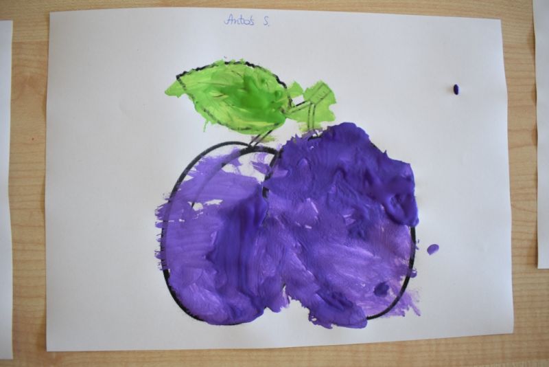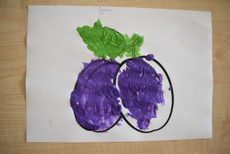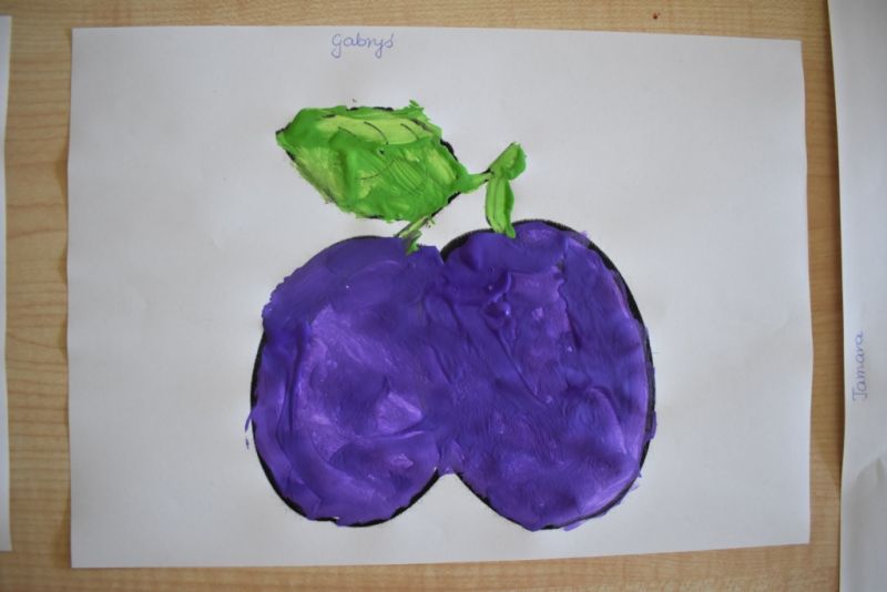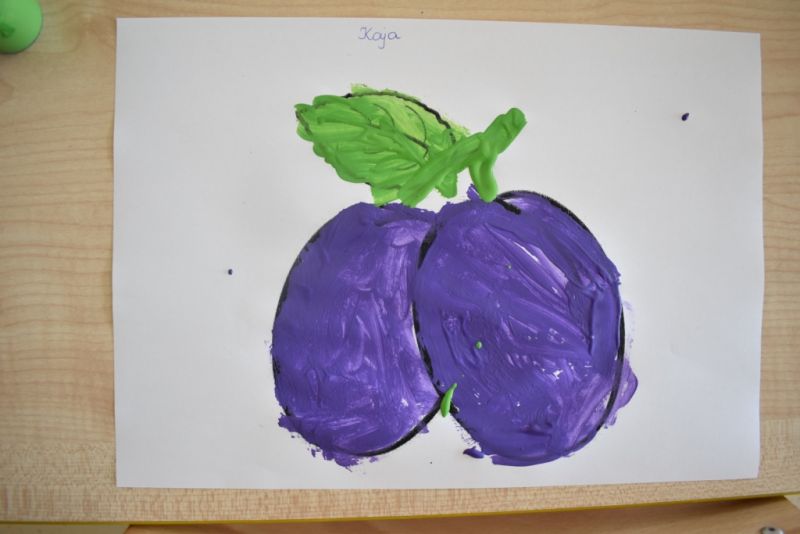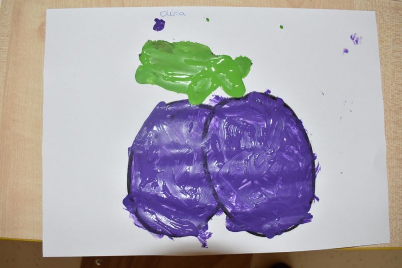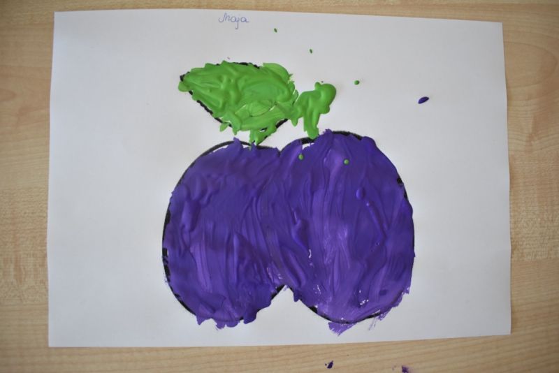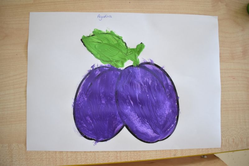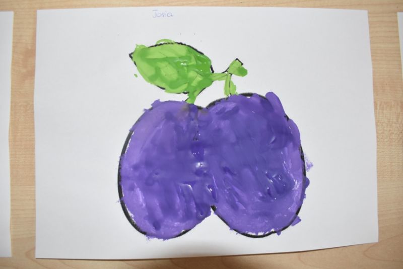 Dzisiaj rozpoczęliśmy kolejną tematykę w miesiącu październiku. W tym tygodniu będziemy mówić o owocach. Na początek wykonaliśmy znany wszystkim owoc- śliwkę (praca wykonana farbami plakatowymi). Rodziców zapraszamy do podziwiania naszych prac.
