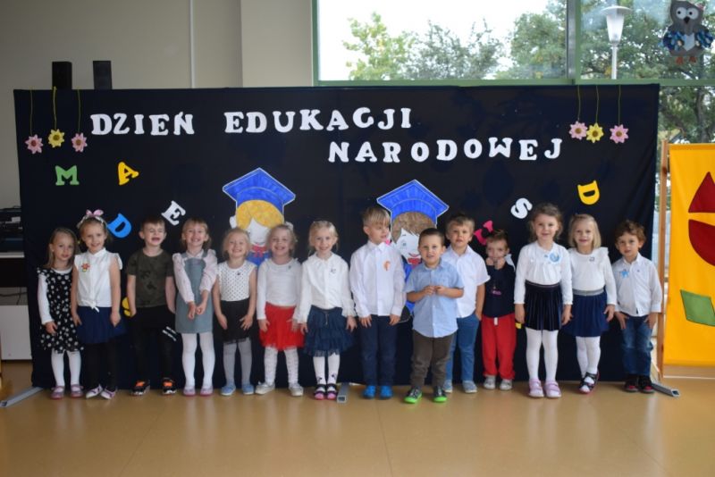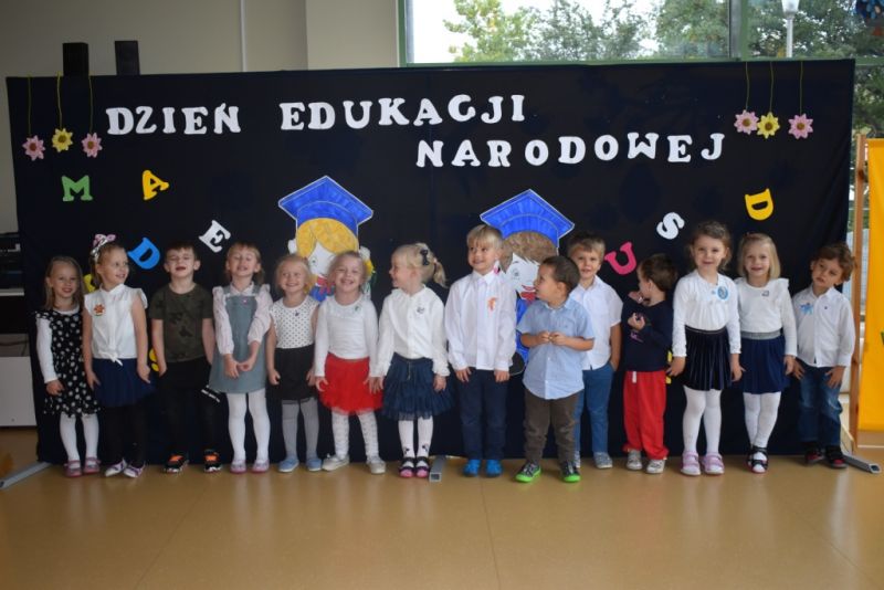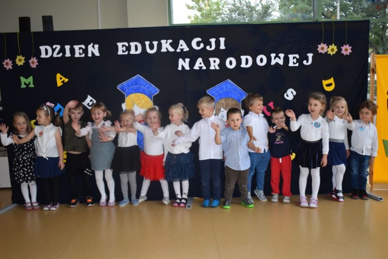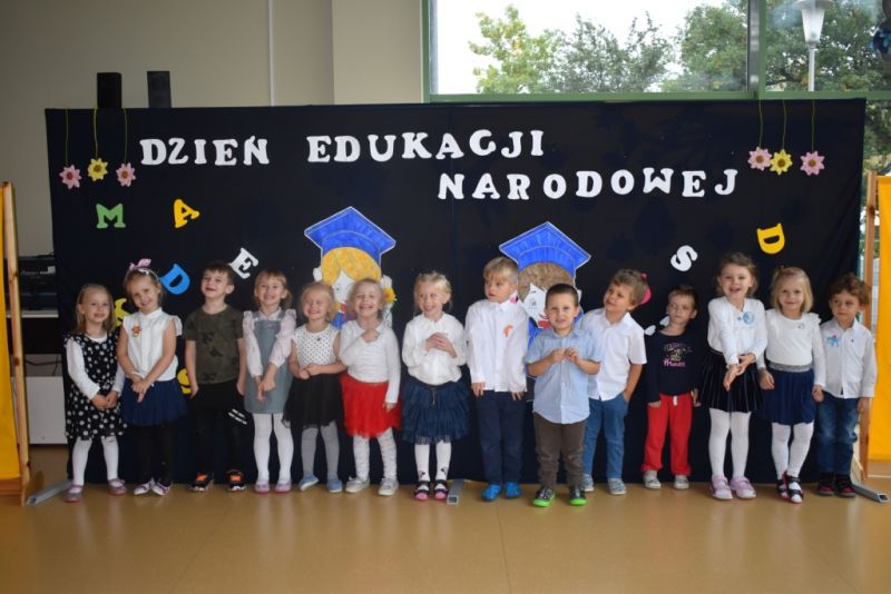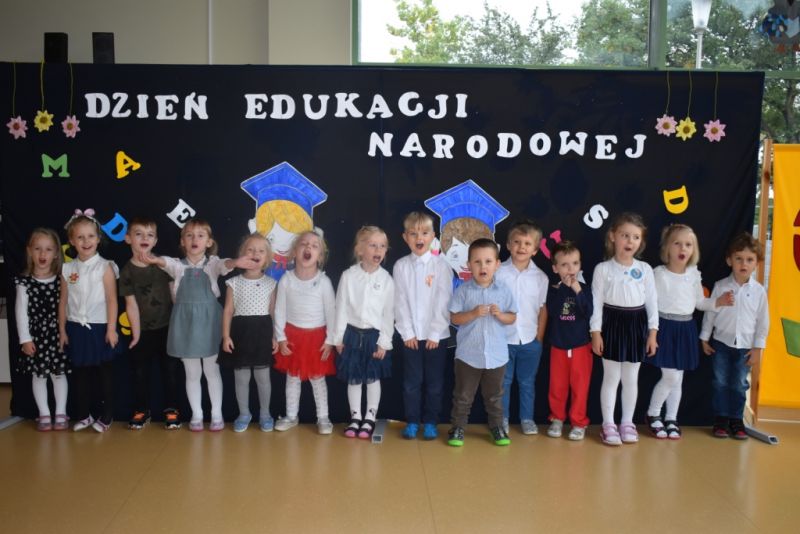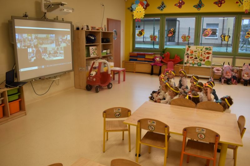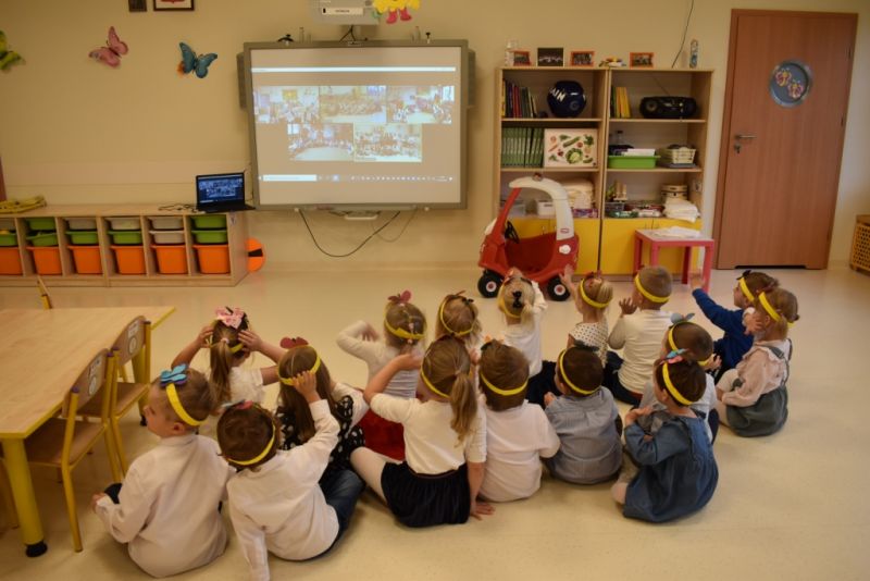 Dzisiaj obchodziliśmy Dzień Edukacji Narodowej łącząc się z naszymi koleżankami i kolegami przez tablicę interaktywną. Złożyliśmy życzenia naszym paniom w przedszkolu z okazji ich święta.