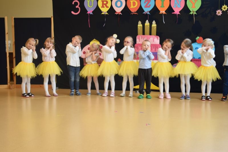 Dzisiaj świętowaliśmy 3 urodziny naszego przedszkola. Były wspaniałe występy, wspólne zabawy, tort oraz cudowne prezenty. To był dzień pełen wrażeń.
