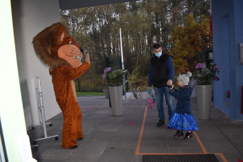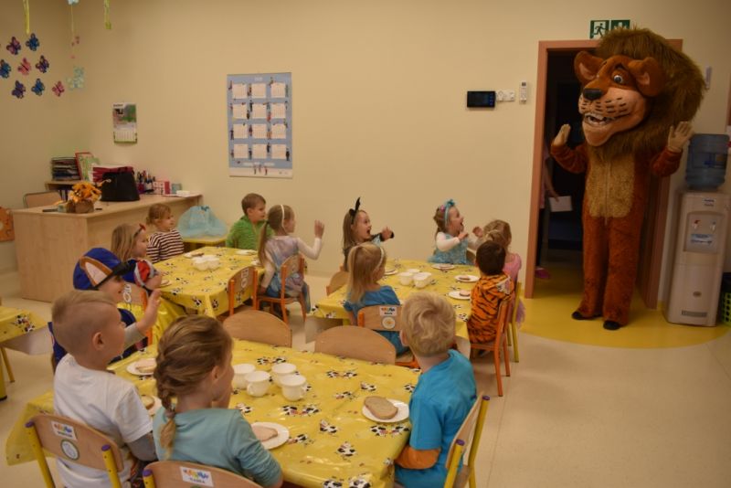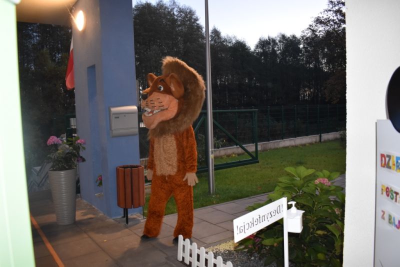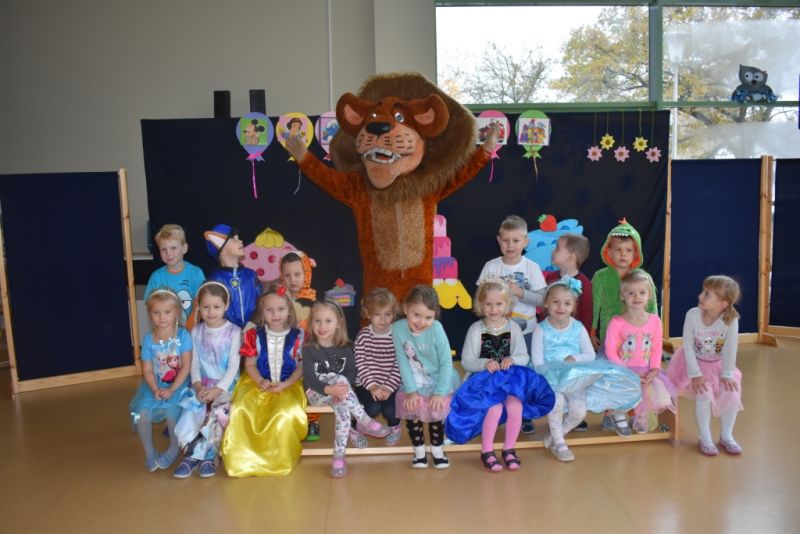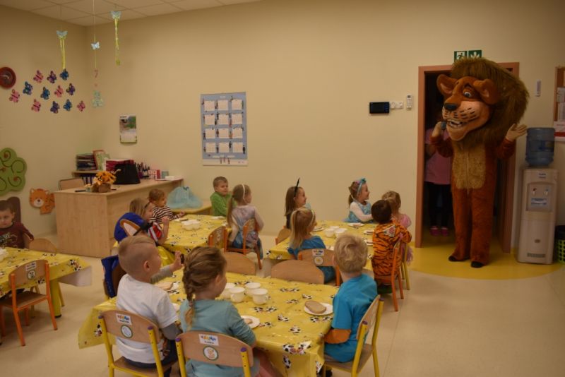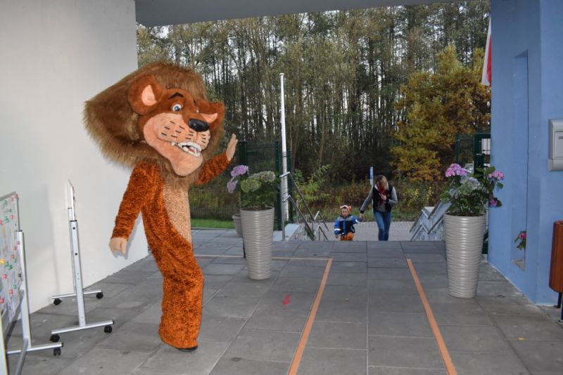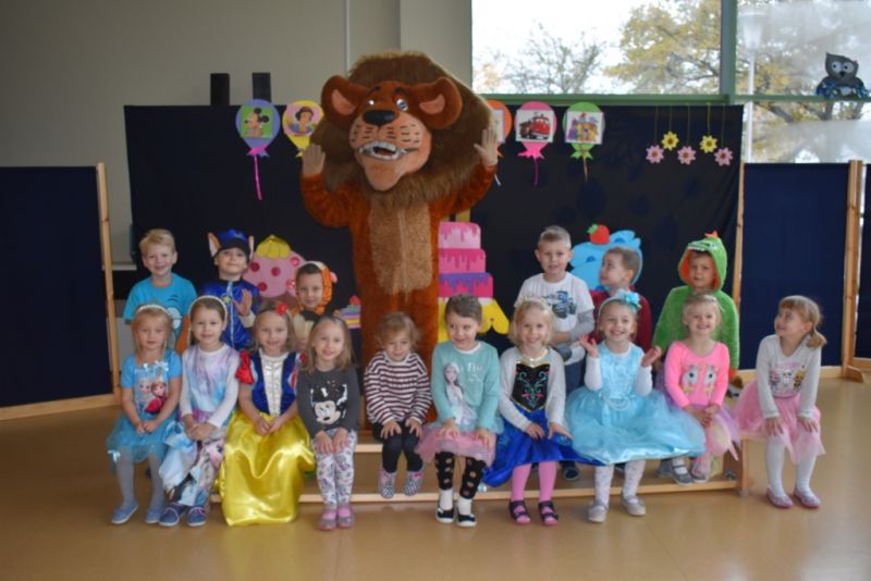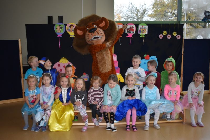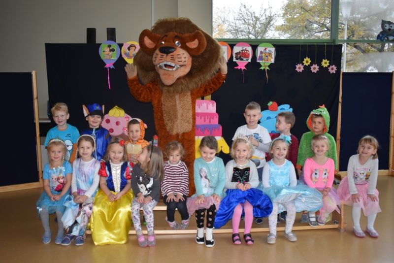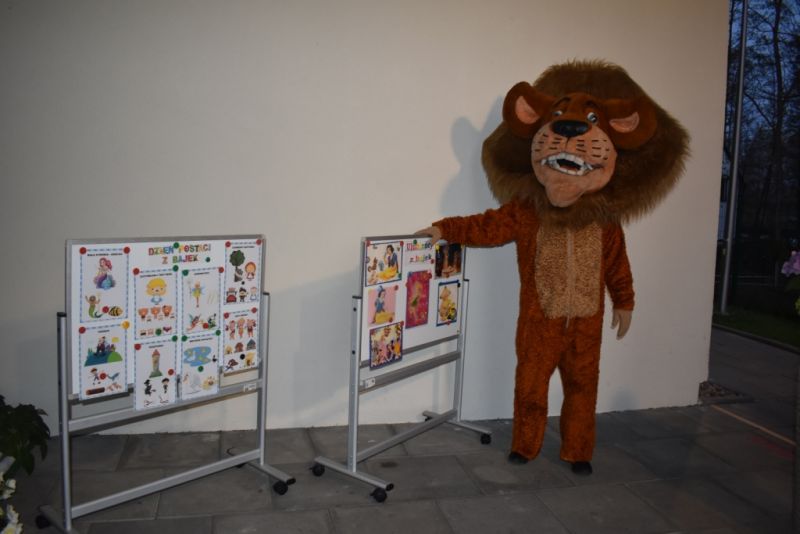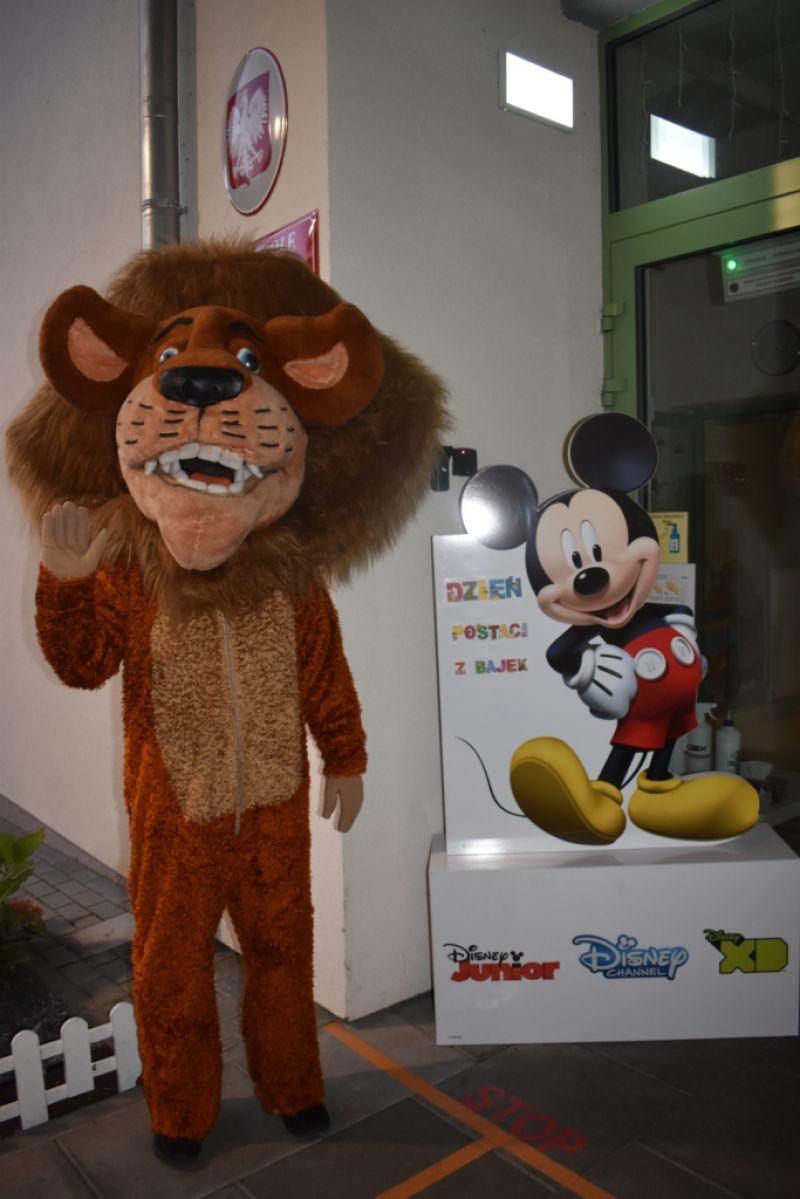 Dzisiaj w naszym przedszkolu świętowaliśmy Dzień Postaci z Bajek. Już od samego rana wszystkie dzieci zostały powitane przed przedszkolem przez Lwa Alexa- postać z bajki Madagaskar. Była to pierwsza niespodzianka, która wywołała u dzieci zaskoczenie i uśmiechy od samego rana. Następnie świętowaliśmy w naszej sali. Rozwiązaliśmy m.in. wiele zagadek multimedialnych, oddzielaliśmy groch od fasoli, nazywaliśmy ulubione postacie z bajek, oglądaliśmy bajkę, odgadywaliśmy piosenki z bajek. Każde dziecko pokolorowało ulubioną postać z bajki, a na koniec otrzymały medale do domku. Udało nam się również zrobić wspólne pamiątkowe zdjęcie z Alexem.