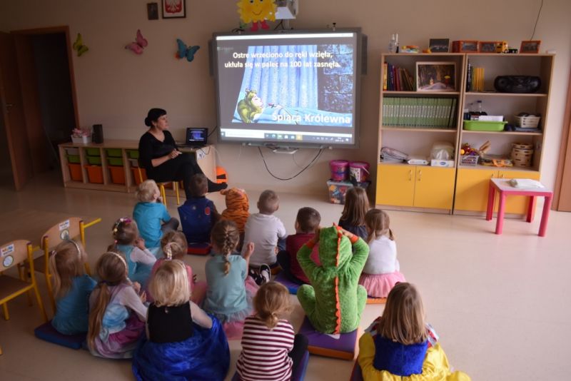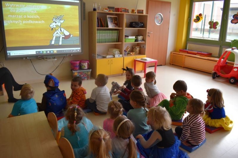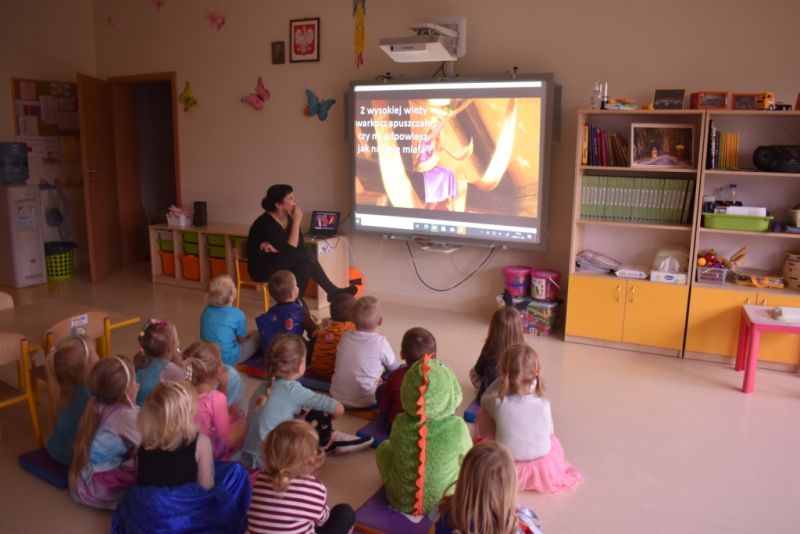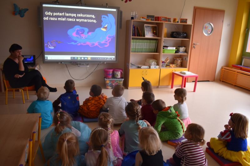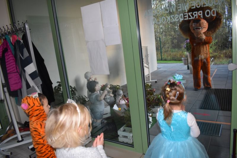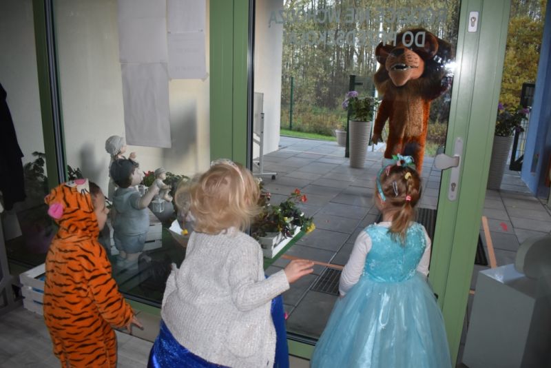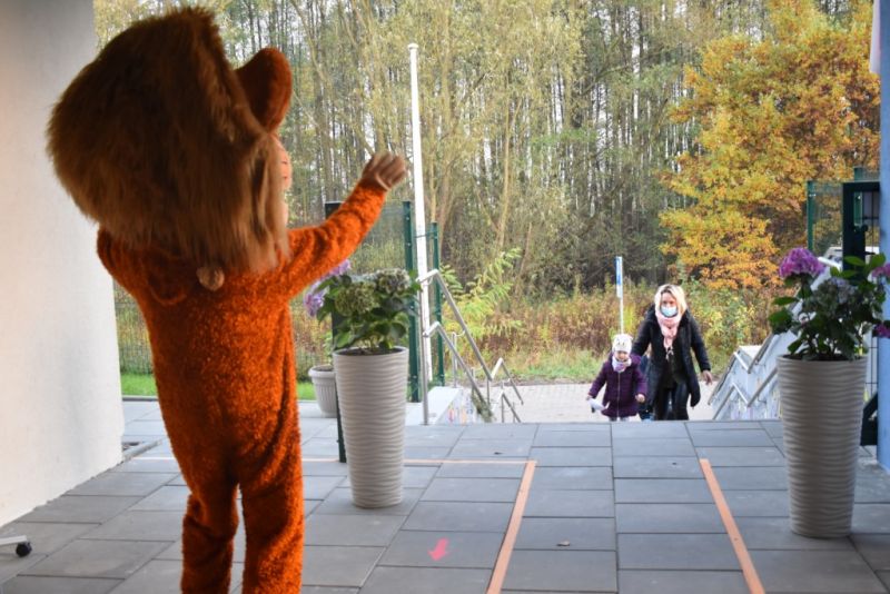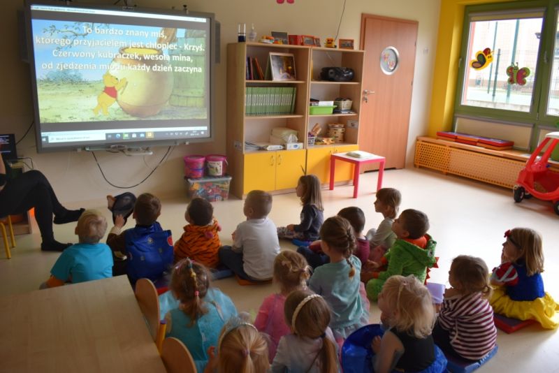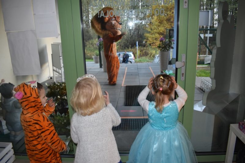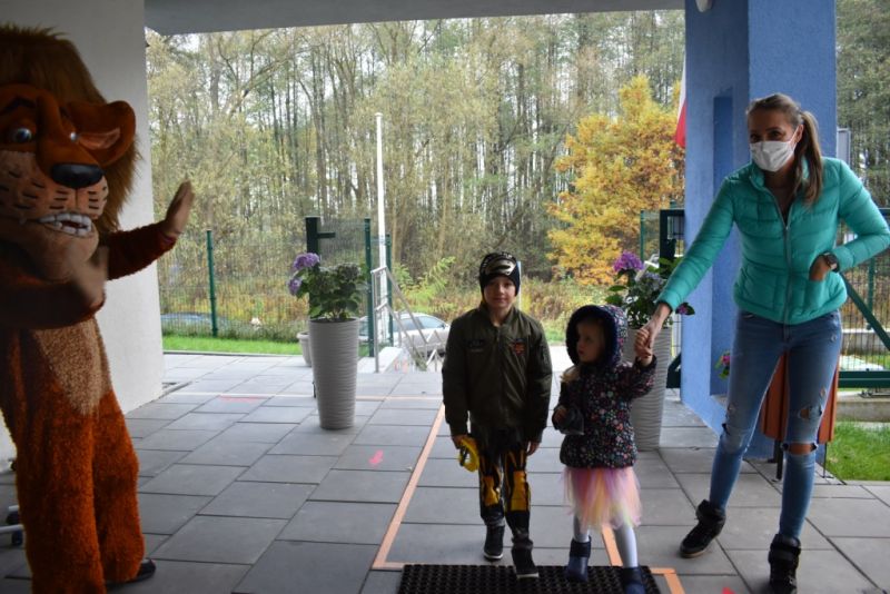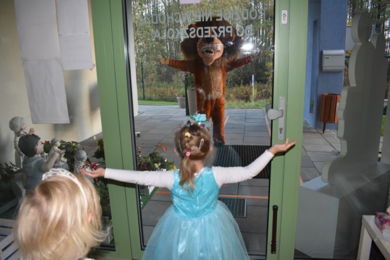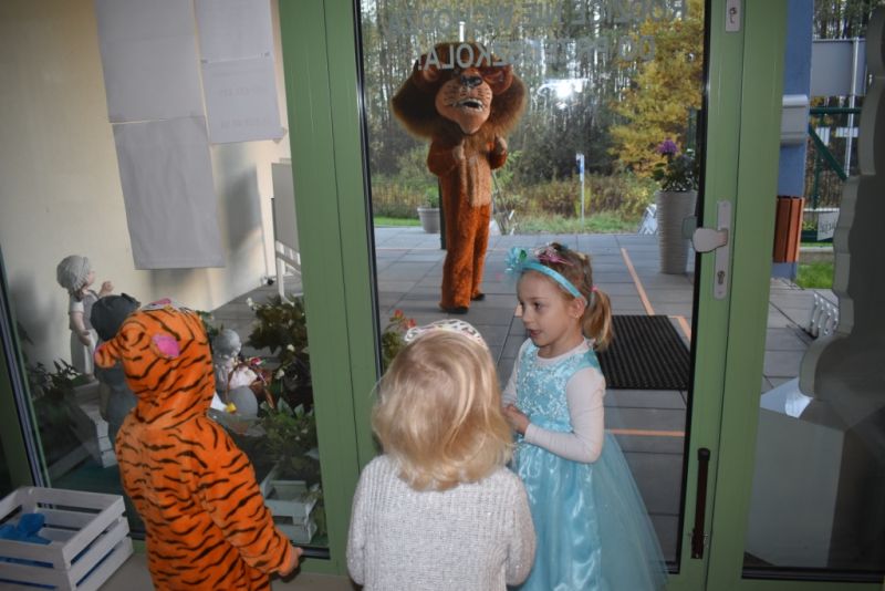 Dzisiaj w naszym przedszkolu świętowaliśmy Dzień Postaci z Bajek. Już od samego rana wszystkie dzieci zostały powitane przed przedszkolem przez Lwa Alexa- postać z bajki Madagaskar. Była to pierwsza niespodzianka, która wywołała u dzieci zaskoczenie i uśmiechy od samego rana. Następnie świętowaliśmy w naszej sali. Rozwiązaliśmy m.in. wiele zagadek multimedialnych, oddzielaliśmy groch od fasoli, nazywaliśmy ulubione postacie z bajek, oglądaliśmy bajkę, odgadywaliśmy piosenki z bajek. Każde dziecko pokolorowało ulubioną postać z bajki, a na koniec otrzymały medale do domku. Udało nam się również zrobić wspólne pamiątkowe zdjęcie z Alexem.