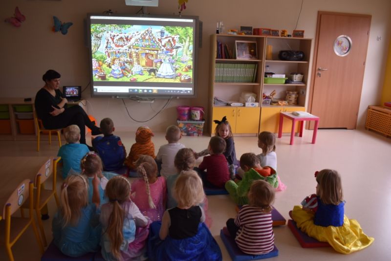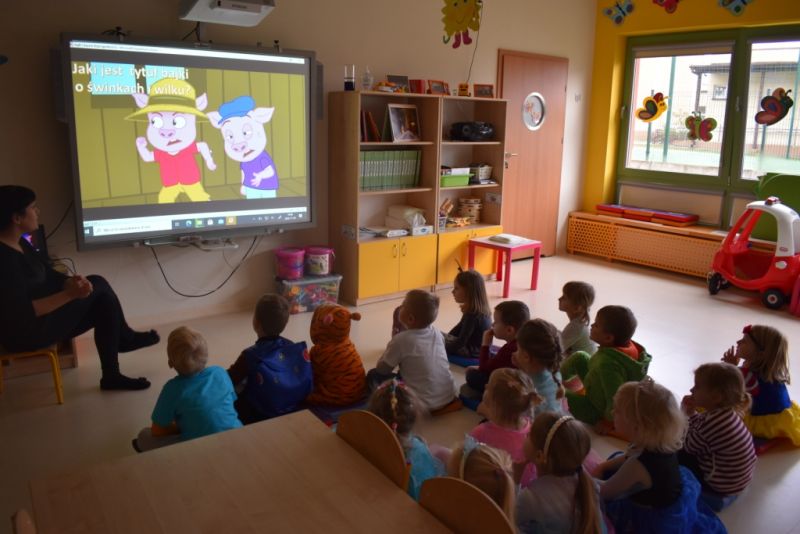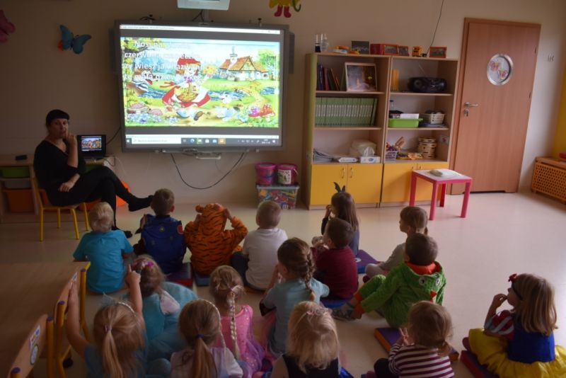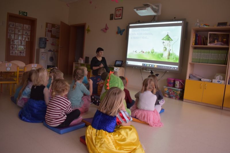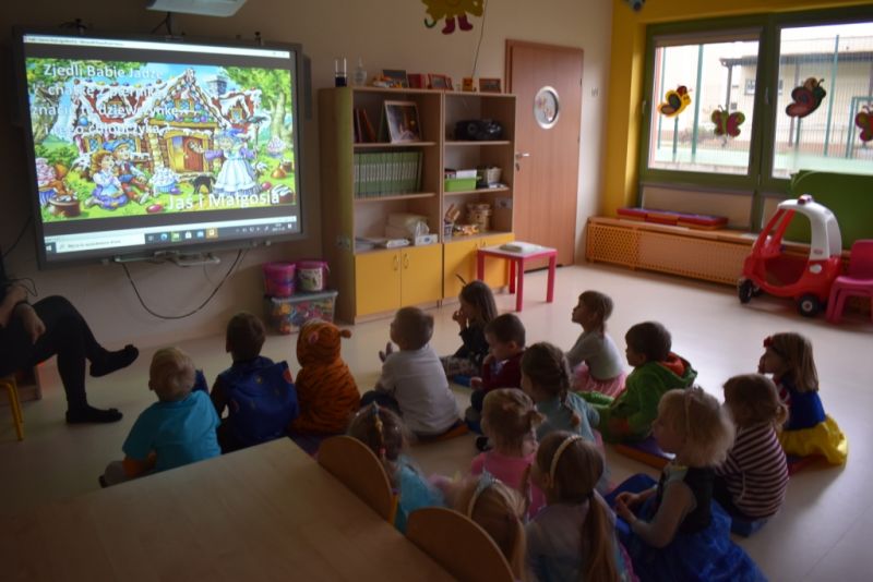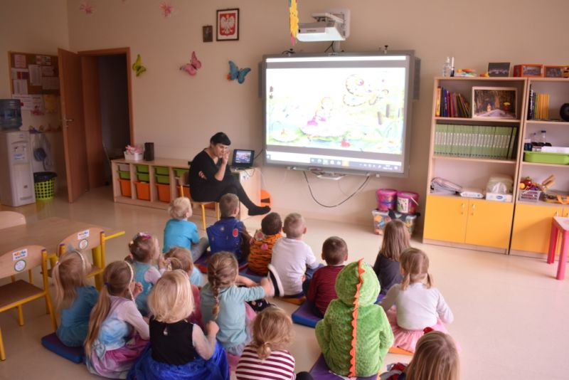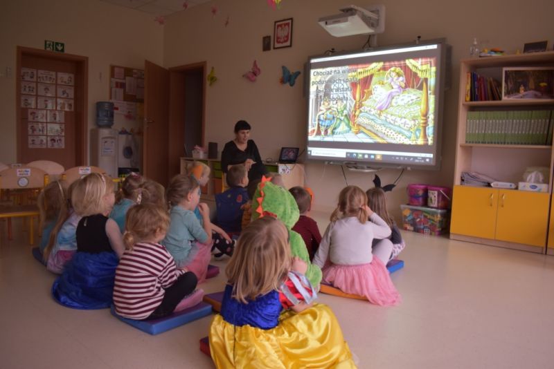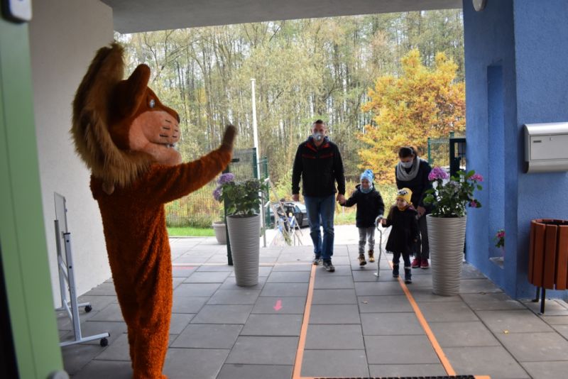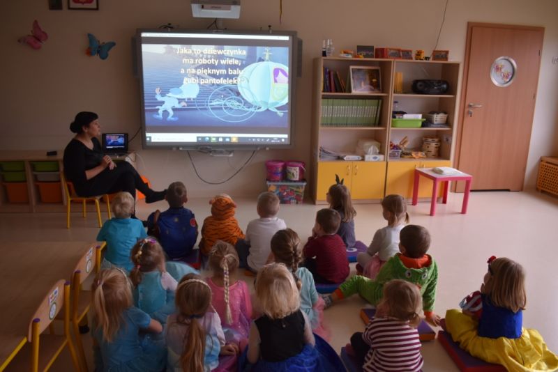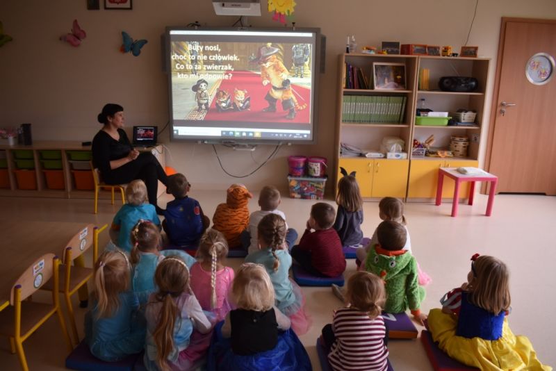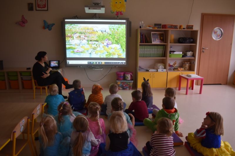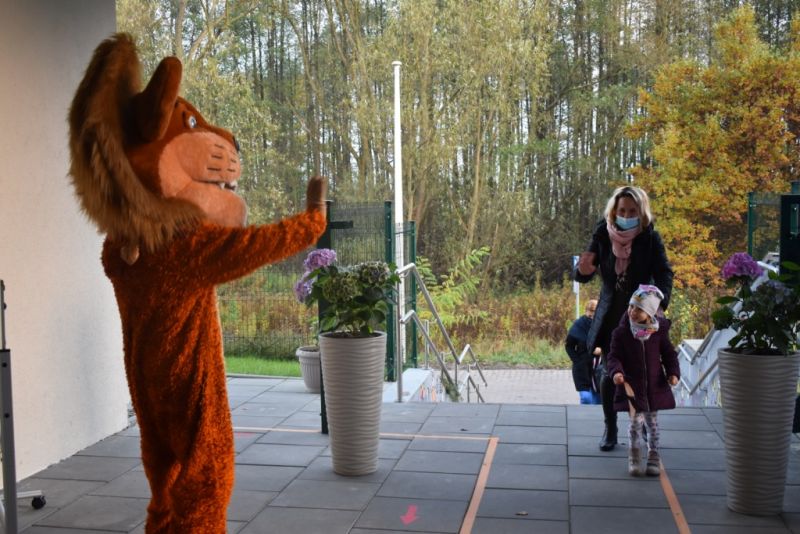 Dzisiaj w naszym przedszkolu świętowaliśmy Dzień Postaci z Bajek. Już od samego rana wszystkie dzieci zostały powitane przed przedszkolem przez Lwa Alexa- postać z bajki Madagaskar. Była to pierwsza niespodzianka, która wywołała u dzieci zaskoczenie i uśmiechy od samego rana. Następnie świętowaliśmy w naszej sali. Rozwiązaliśmy m.in. wiele zagadek multimedialnych, oddzielaliśmy groch od fasoli, nazywaliśmy ulubione postacie z bajek, oglądaliśmy bajkę, odgadywaliśmy piosenki z bajek. Każde dziecko pokolorowało ulubioną postać z bajki, a na koniec otrzymały medale do domku. Udało nam się również zrobić wspólne pamiątkowe zdjęcie z Alexem.