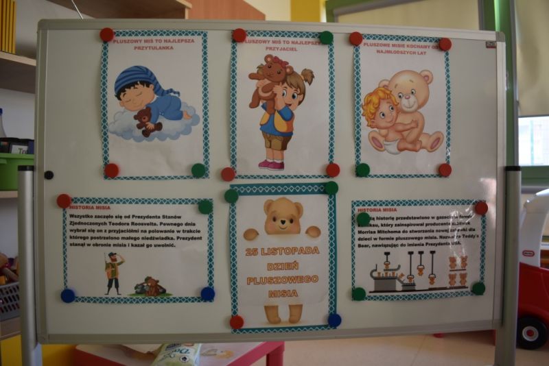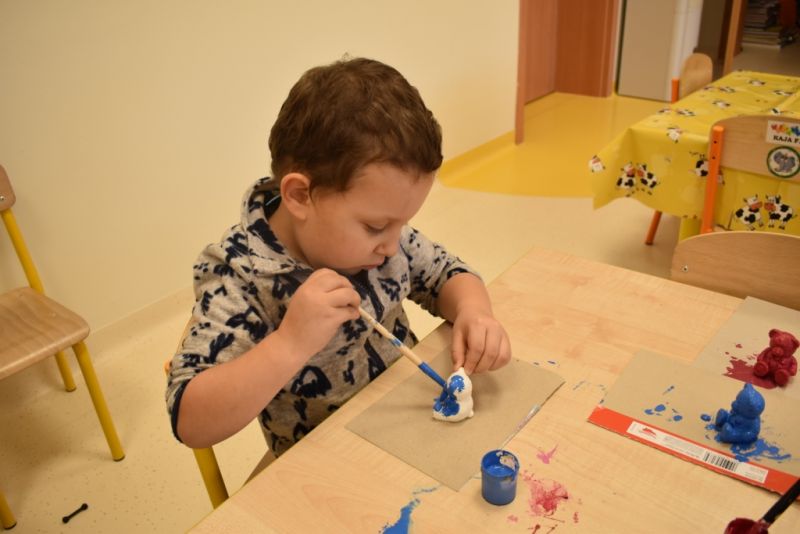 Dzisiaj obchodziliśmy Dzień Misia. Śpiewaliśmy piosenki o misiach, recytowaliśmy dla nich poznane wiersze, tańczyliśmy z naszymi misiami. Z okazji tego święta malowaliśmy misie z gliny, które każdy zabrał do domu. Był też słodki poczęstunek- misie lubisie. Na koniec każdy otrzymał dyplom przyjaciela misia oraz medal.