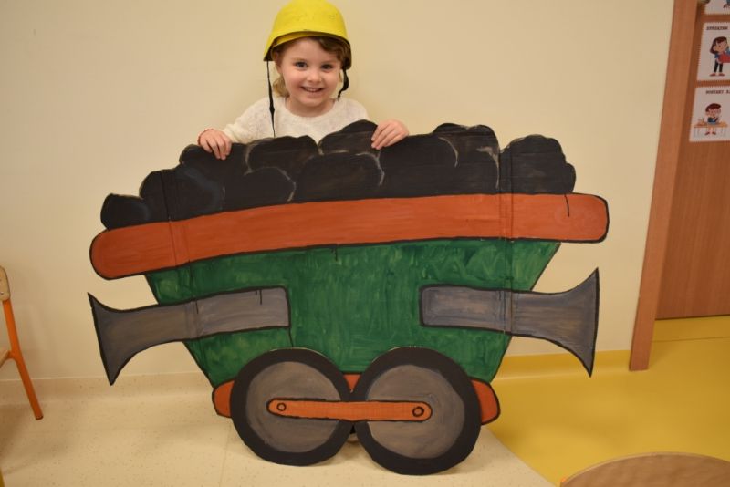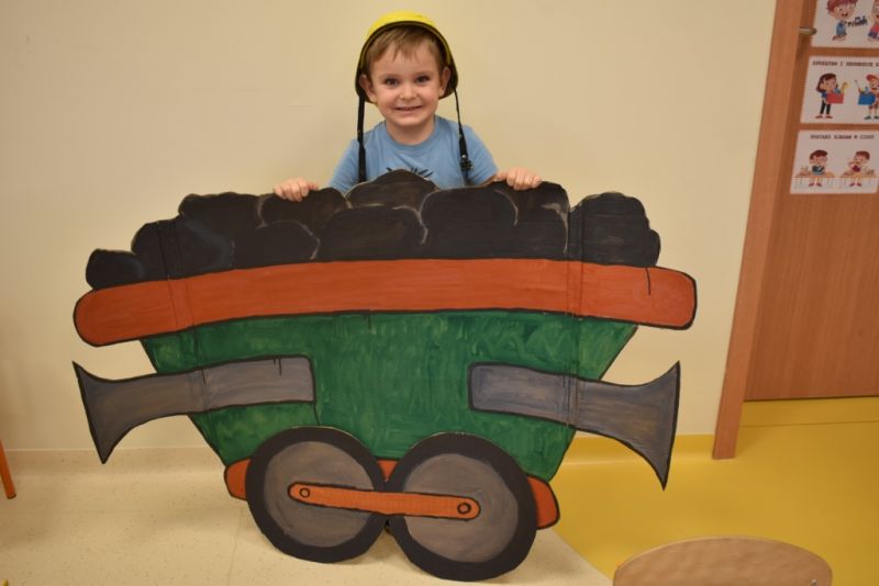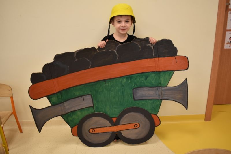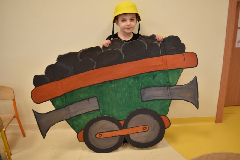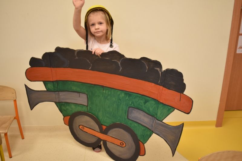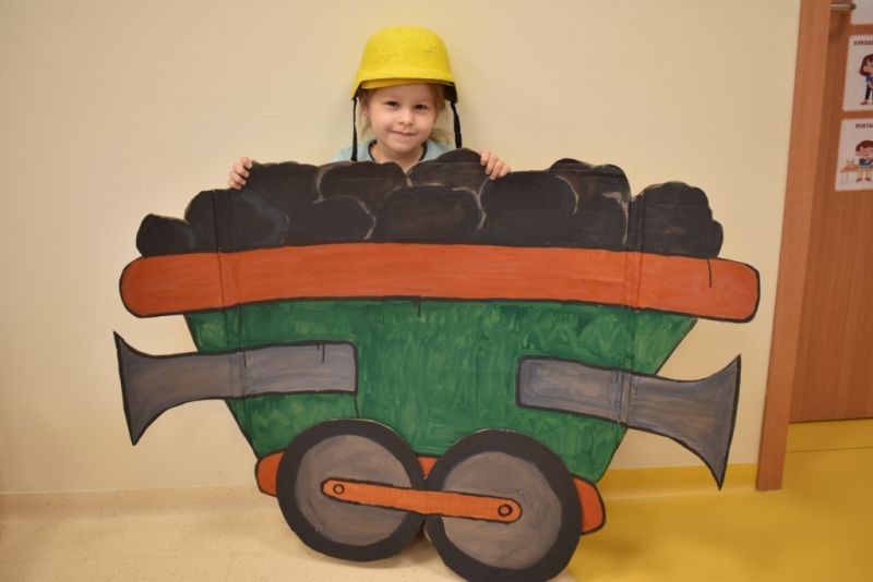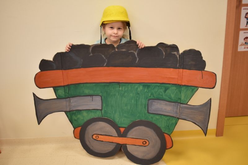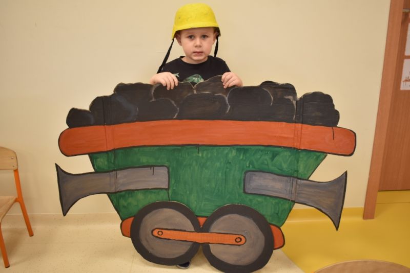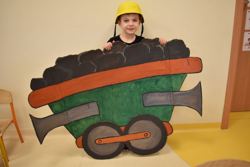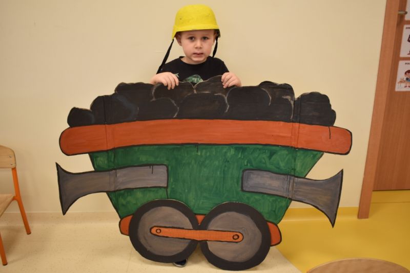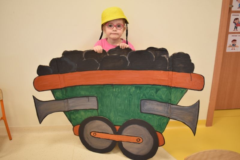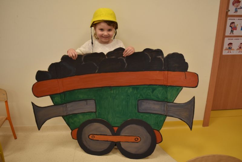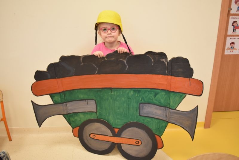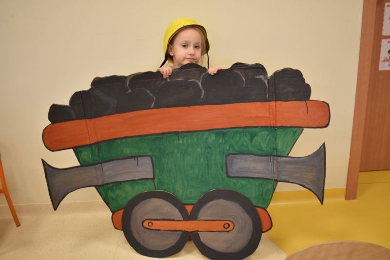 Dzisiaj obchodziliśmy w naszej grupie Dzień Górnika czyli Barbórkę. Dzieci miały okazję poznać pracę górnika, jego sprzęt, ubiór. Poznały węgiel, jego właściwości oraz zastosowanie w wielu dziedzinach. Zrobiły tez piękne prace plastyczne- czako, czyli czapkę górniczą. Na koniec wykonaliśmy pamiątkowe zdjęcia z wagonikiem.