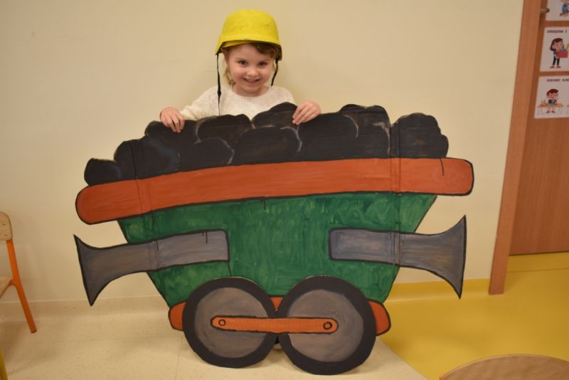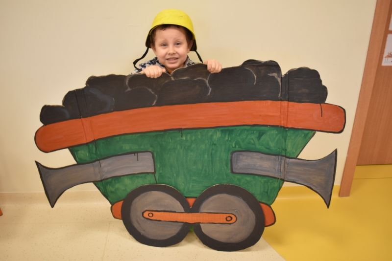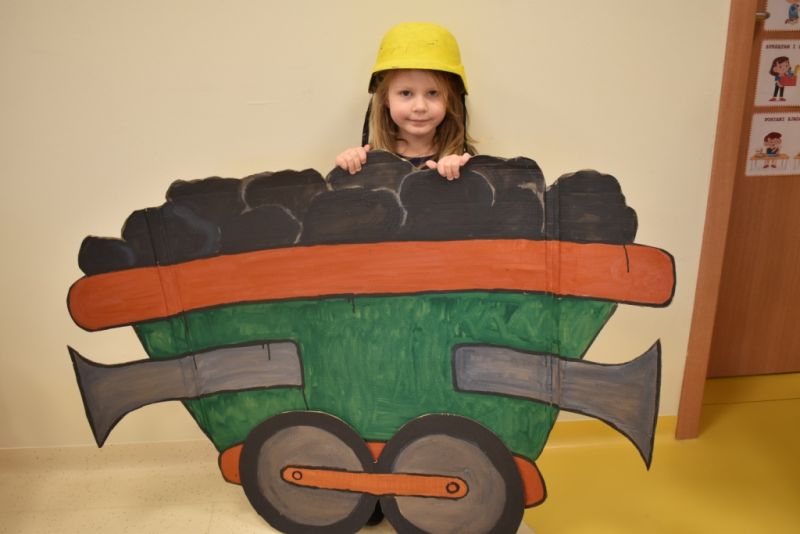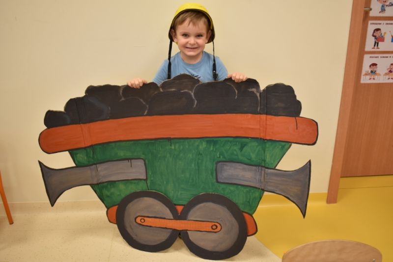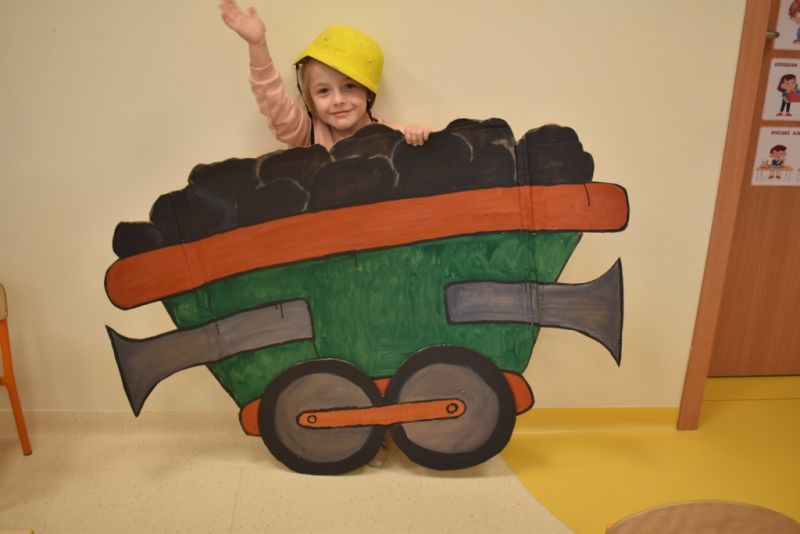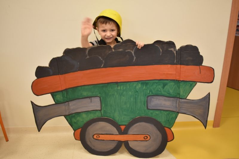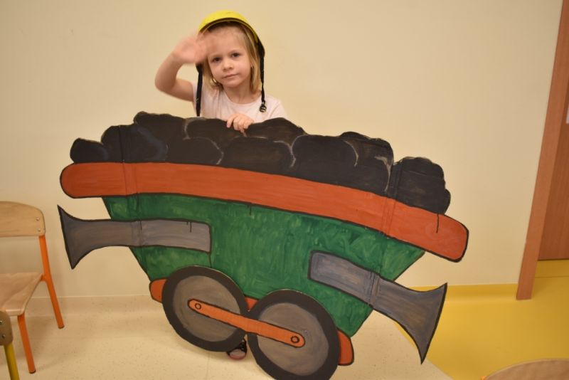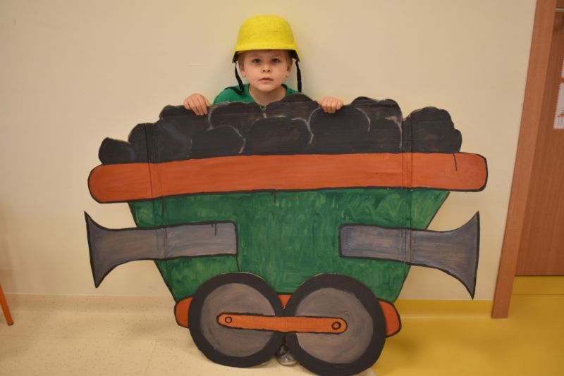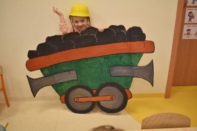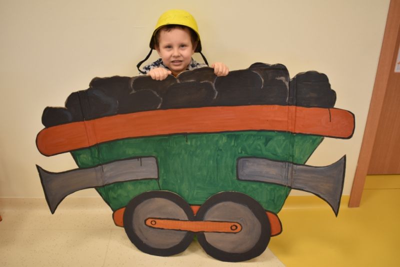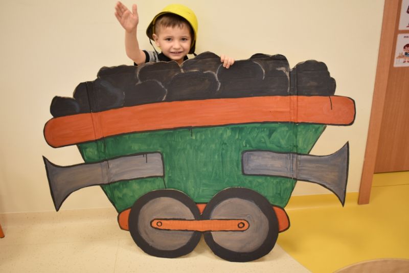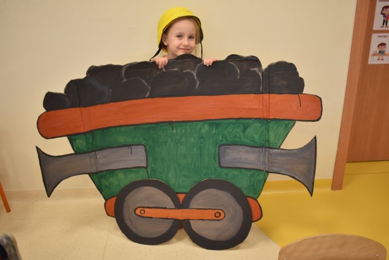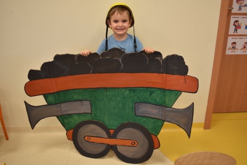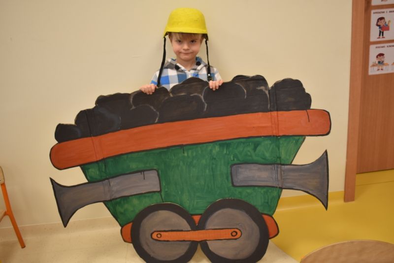 Dzisiaj obchodziliśmy w naszej grupie Dzień Górnika czyli Barbórkę. Dzieci miały okazję poznać pracę górnika, jego sprzęt, ubiór. Poznały węgiel, jego właściwości oraz zastosowanie w wielu dziedzinach. Zrobiły tez piękne prace plastyczne- czako, czyli czapkę górniczą. Na koniec wykonaliśmy pamiątkowe zdjęcia z wagonikiem.