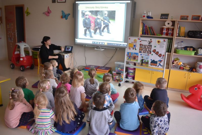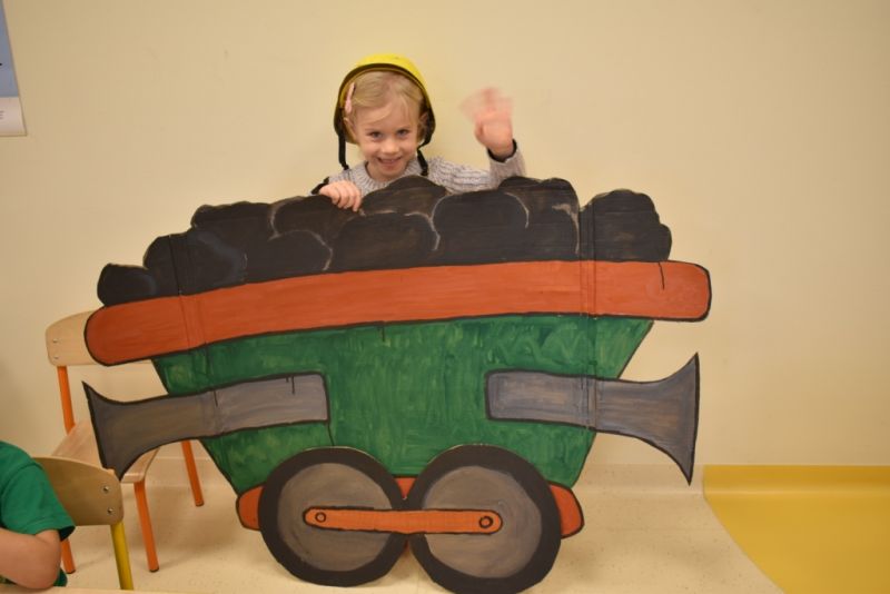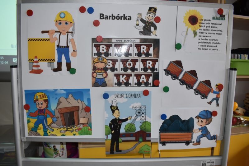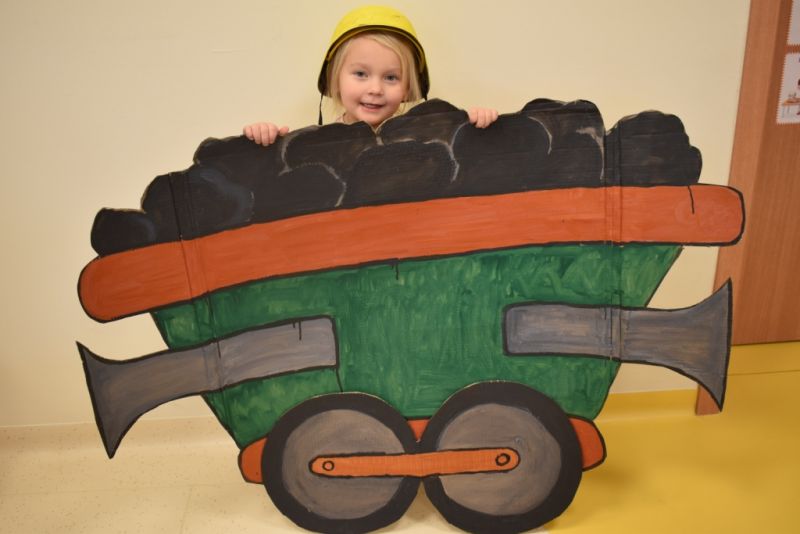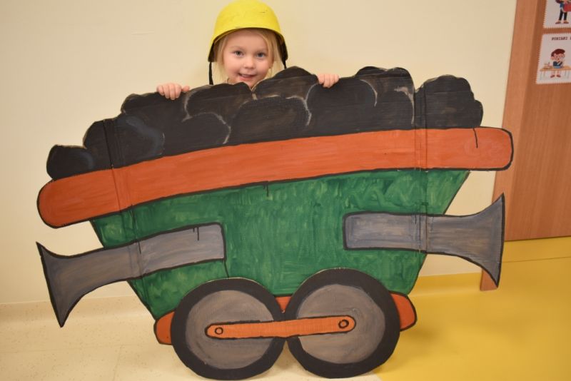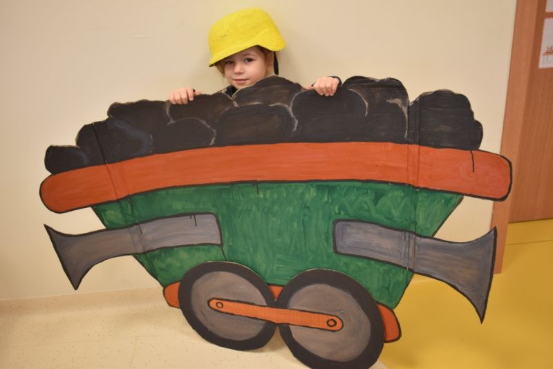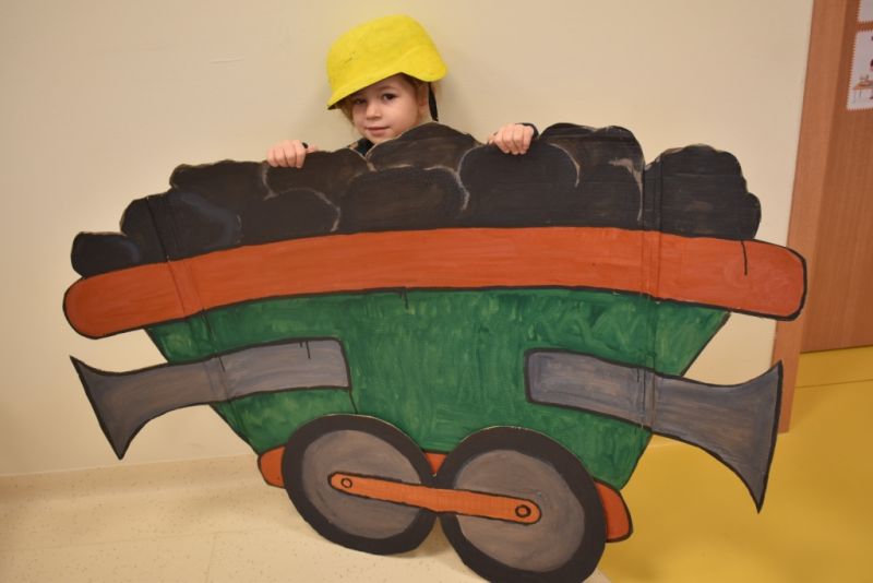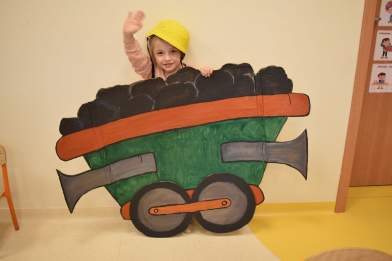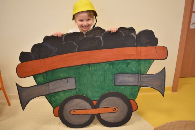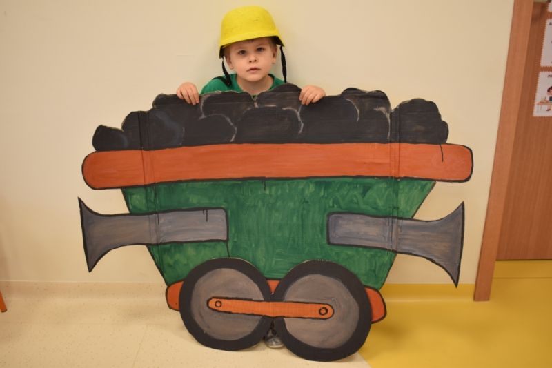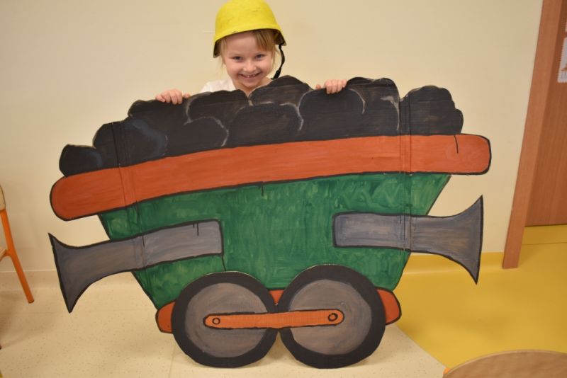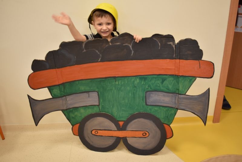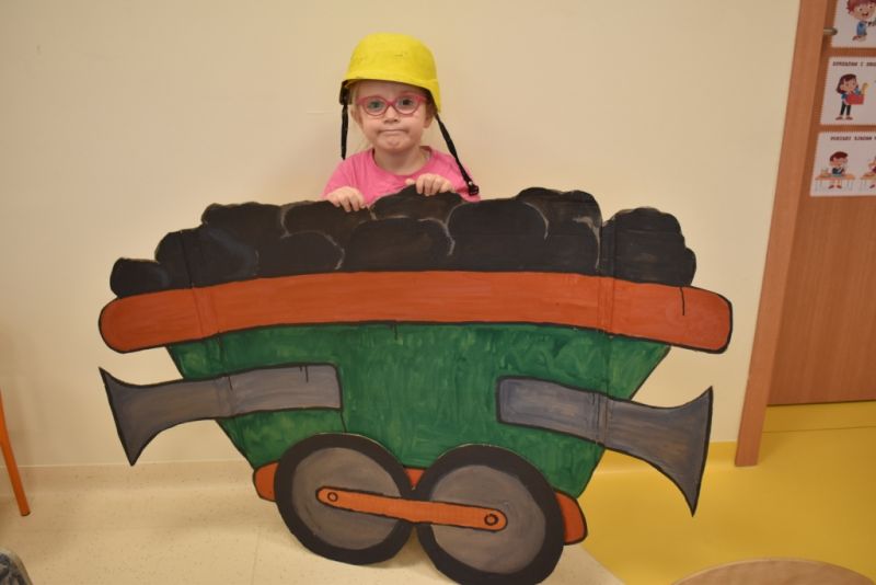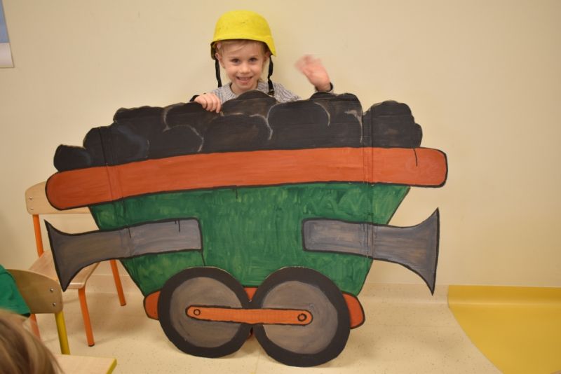 Dzisiaj obchodziliśmy w naszej grupie Dzień Górnika czyli Barbórkę. Dzieci miały okazję poznać pracę górnika, jego sprzęt, ubiór. Poznały węgiel, jego właściwości oraz zastosowanie w wielu dziedzinach. Zrobiły tez piękne prace plastyczne- czako, czyli czapkę górniczą. Na koniec wykonaliśmy pamiątkowe zdjęcia z wagonikiem.