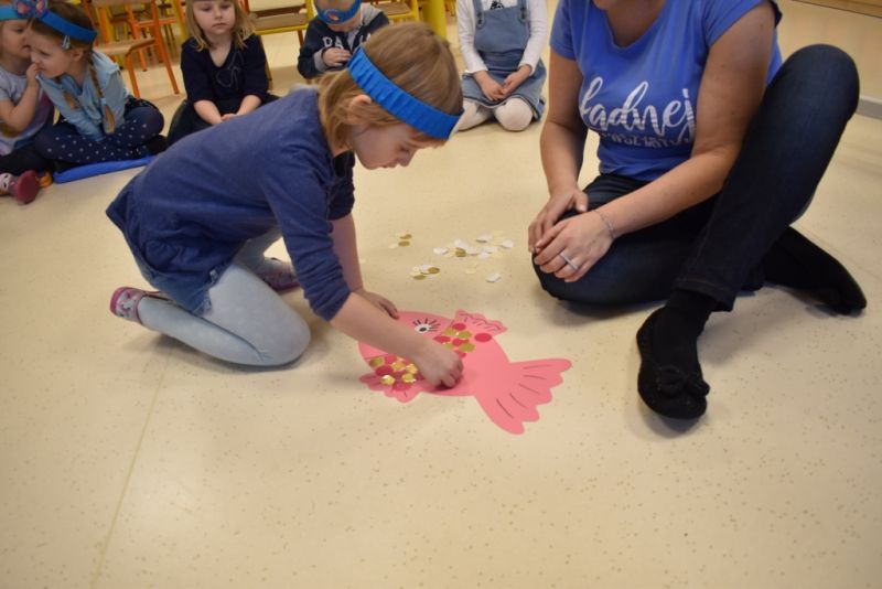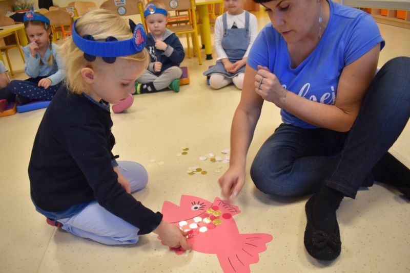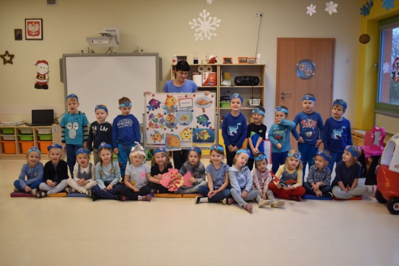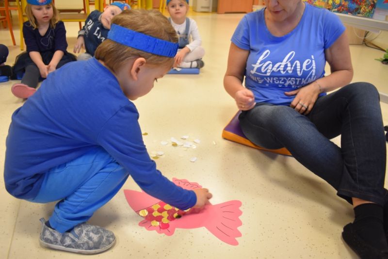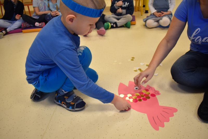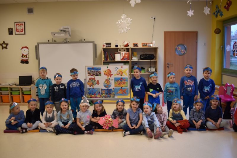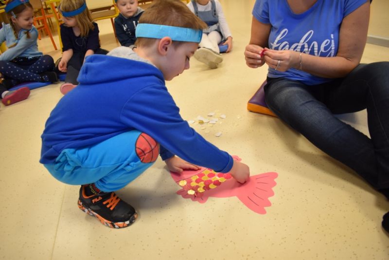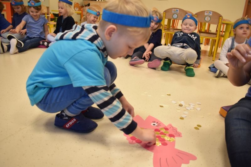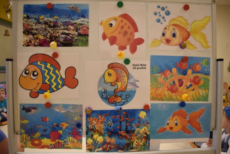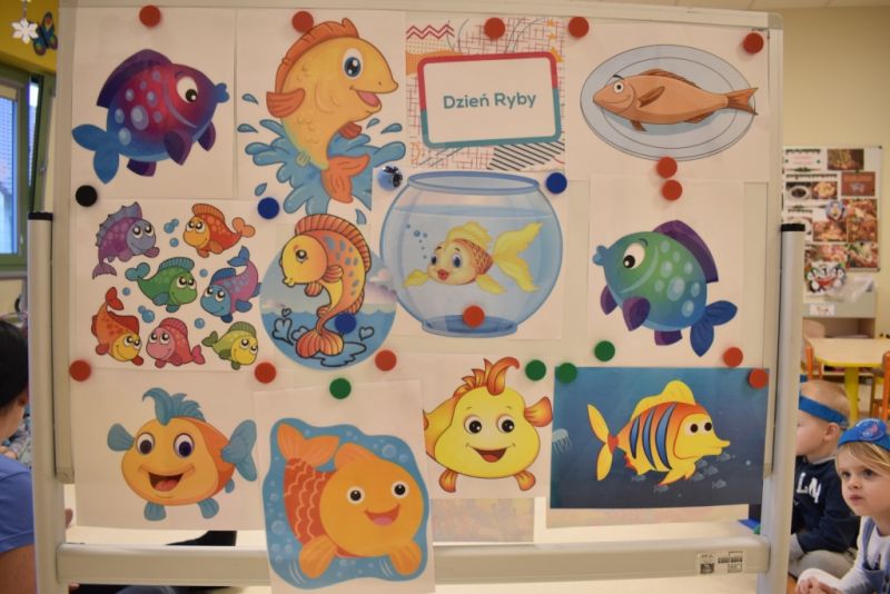 Dzisiaj po raz pierwszy obchodziliśmy w naszym przedszkolu Dzień Ryby. Poznaliśmy ciekawostki o rybach, dowiedzieliśmy się dlaczego warto je jeść, jak się nazywają itp. Rozwiązywaliśmy zagadki, obejrzeliśmy film edukacyjny "Morskie opowieści". Słuchaliśmy muzyki z bajki "Arielka" w trakcie której wykonaliśmy naszą złotą rybkę. Na koniec zapoznaliśmy się z bajką "O rybaku i złotej rybce".