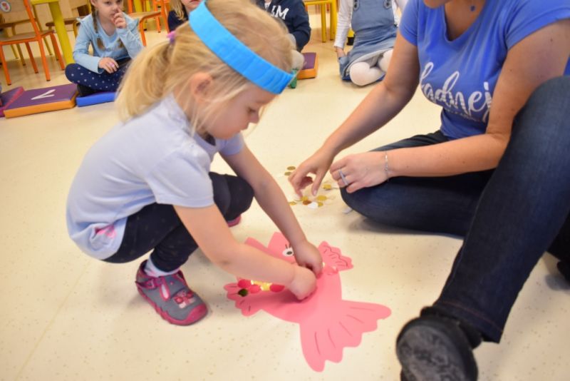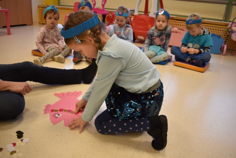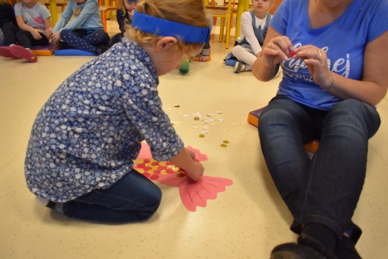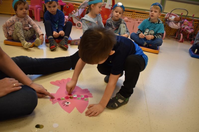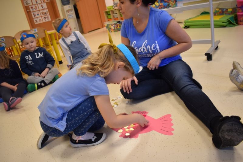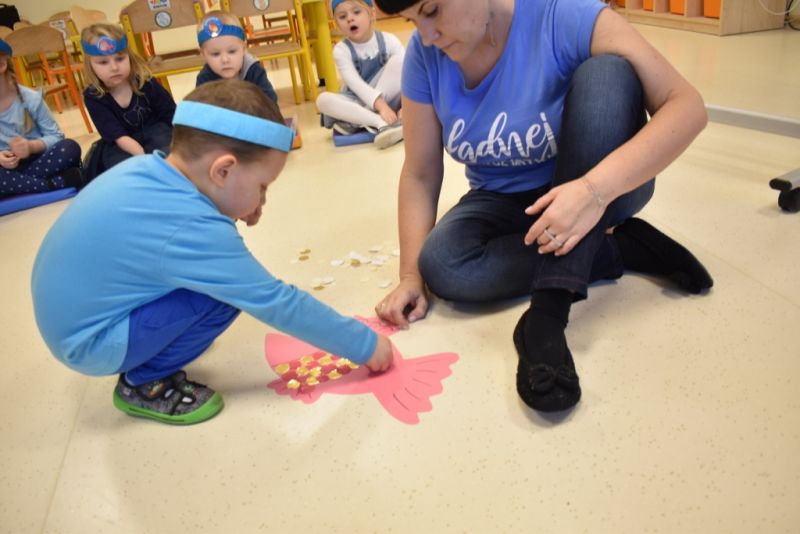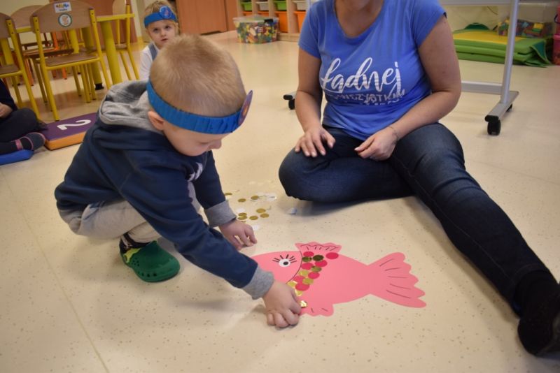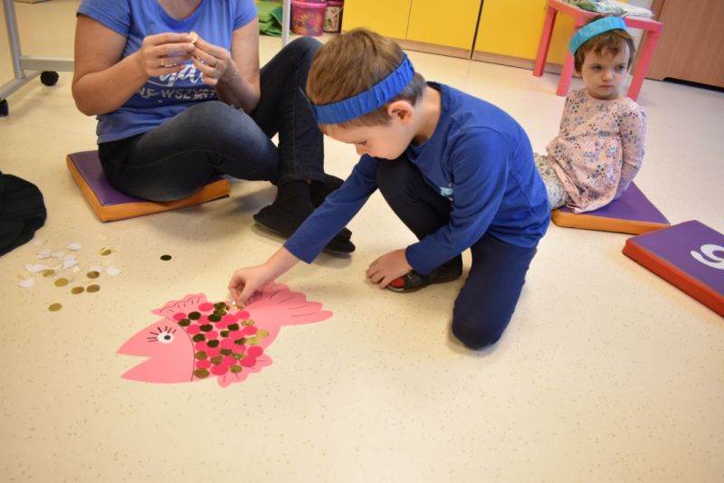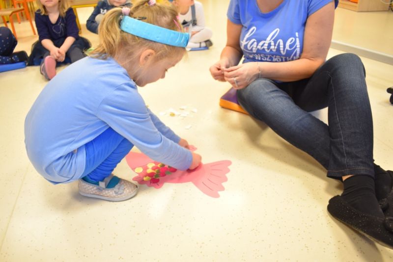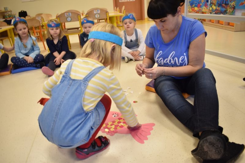Dzisiaj po raz pierwszy obchodziliśmy w naszym przedszkolu Dzień Ryby. Poznaliśmy ciekawostki o rybach, dowiedzieliśmy się dlaczego warto je jeść, jak się nazywają itp. Rozwiązywaliśmy zagadki, obejrzeliśmy film edukacyjny "Morskie opowieści". Słuchaliśmy muzyki z bajki "Arielka" w trakcie której wykonaliśmy naszą złotą rybkę. Na koniec zapoznaliśmy się z bajką "O rybaku i złotej rybce".
