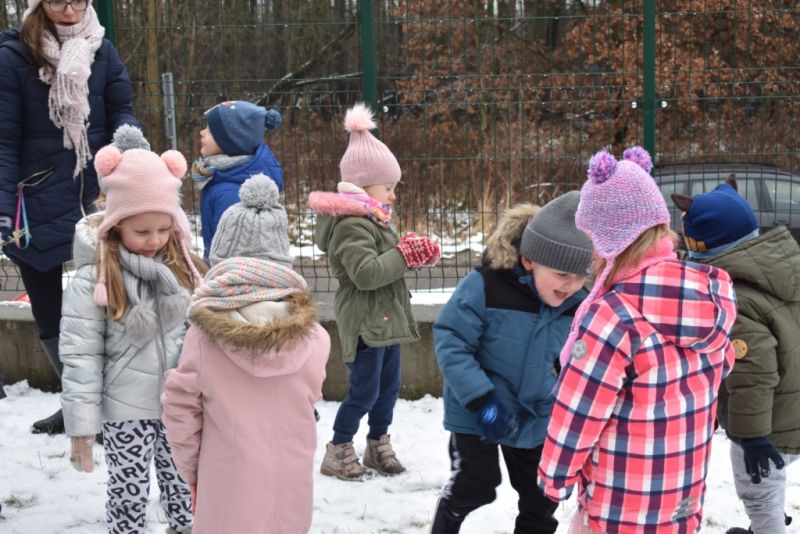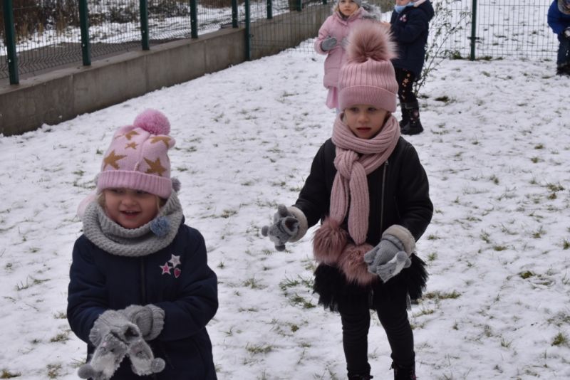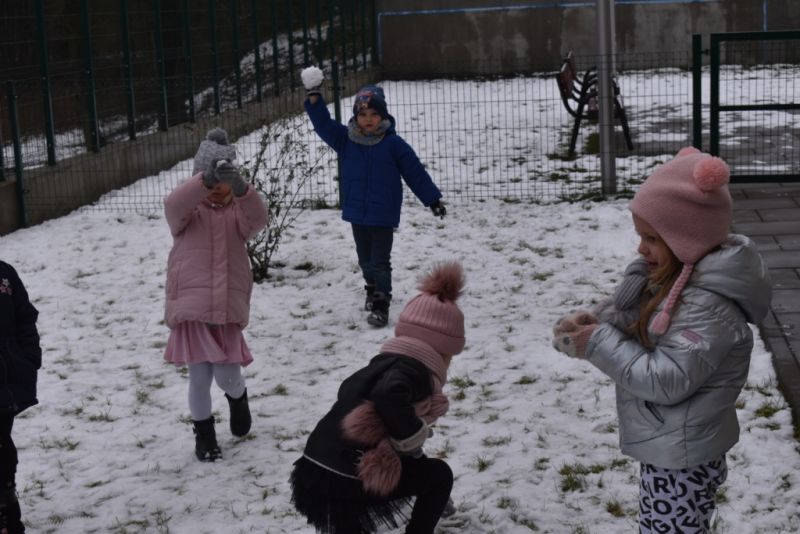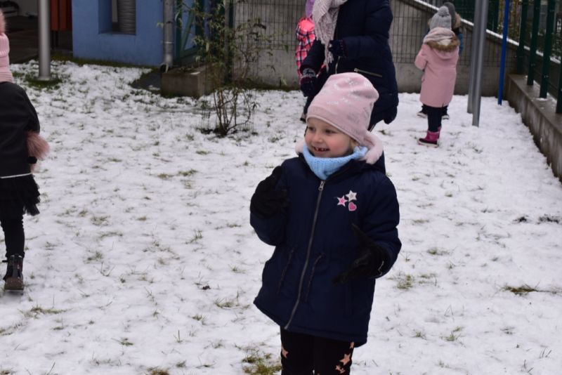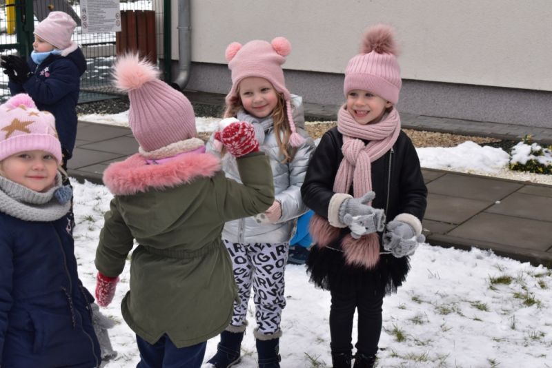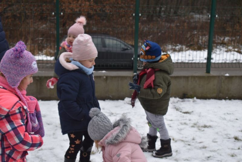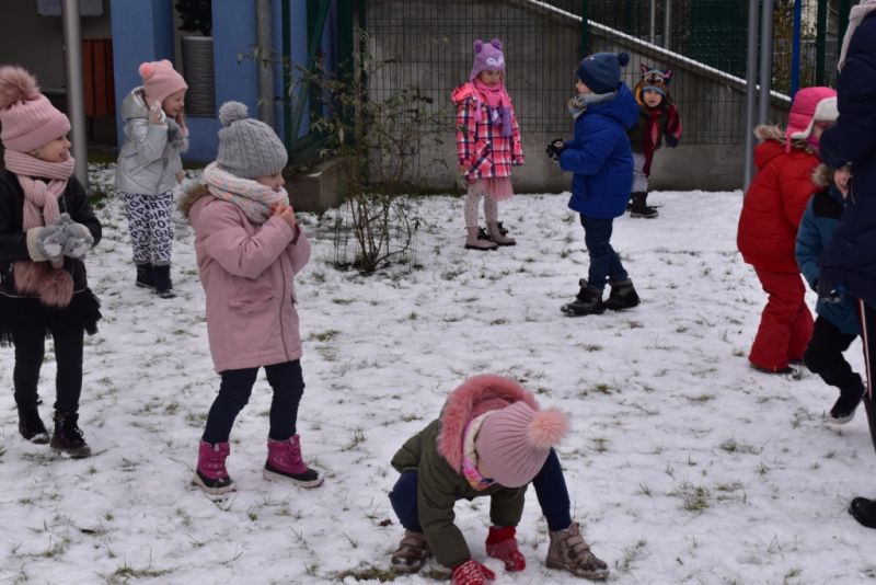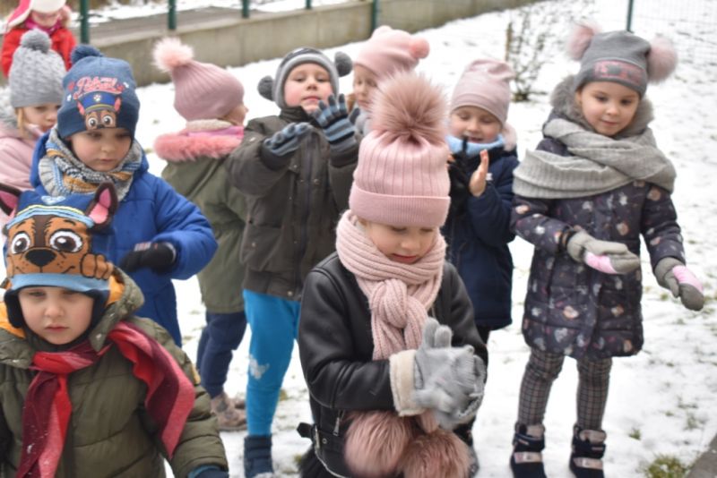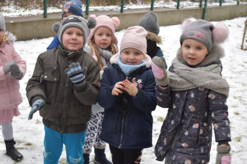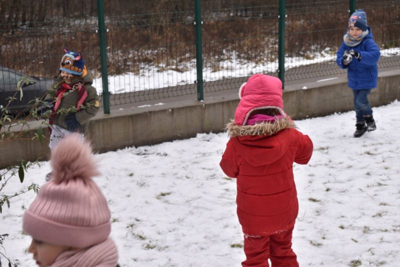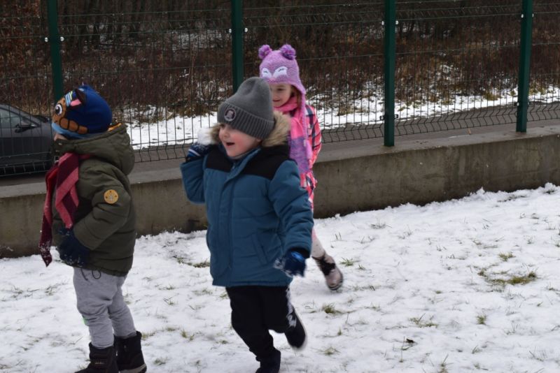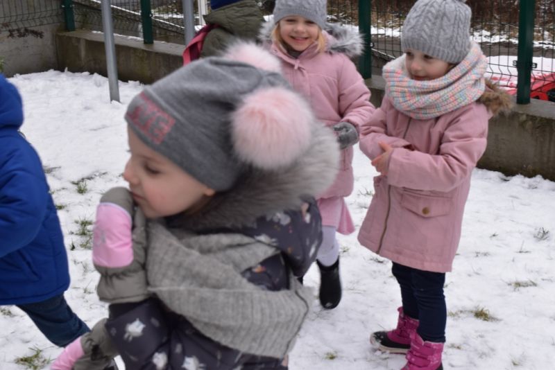 Dzisiaj podczas wyjścia na dwór bawiliśmy się śniegiem. Szukaliśmy śladów na śniegu, odgadywaliśmy do kogo należą. Sami robiliśmy śladu na śniegu, rysowaliśmy palcem po śniegu oraz robiliśmy śnieżki. To była cudowna zimowa zabawa.