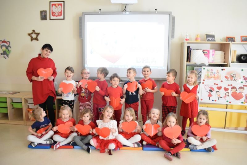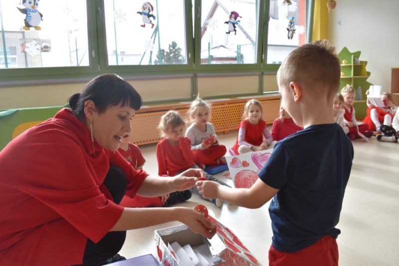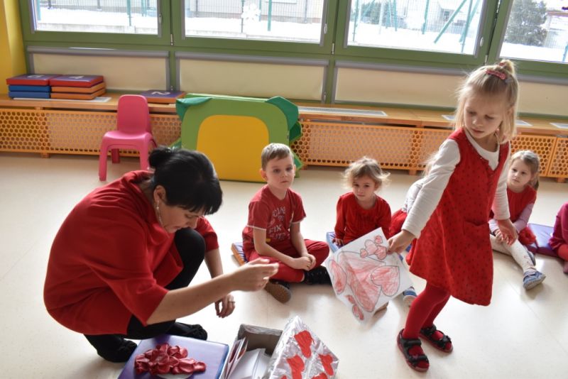 Dzisiaj świętowaliśmy w naszej grupie Walentynki- dzień dobrych uczuć. Poznaliśmy historię Walentynek, symbole święta zakochanych oraz wiele ciekawostek. Wspólnie bawiliśmy się, śpiewaliśmy piosenkę o Walentynkach, otrzymaliśmy Walentynki od naszych rówieśników z grupy. Każde dziecko otrzymało słodkie, czerwone serduszko, medale oraz balonowe serce.