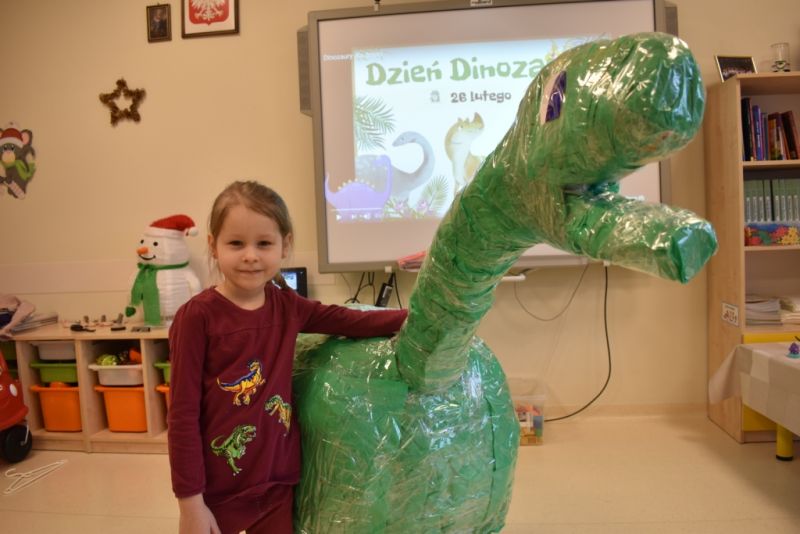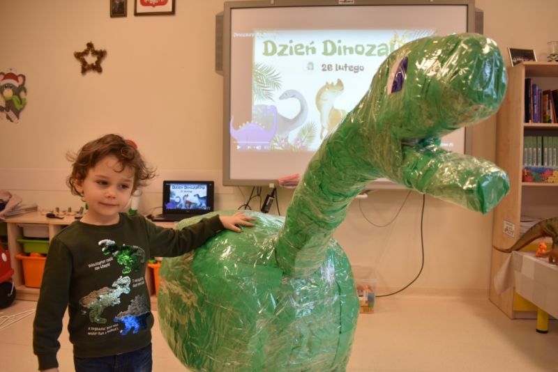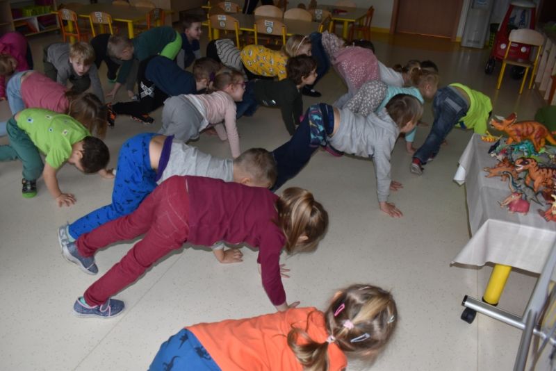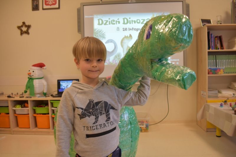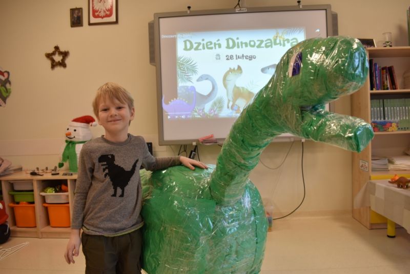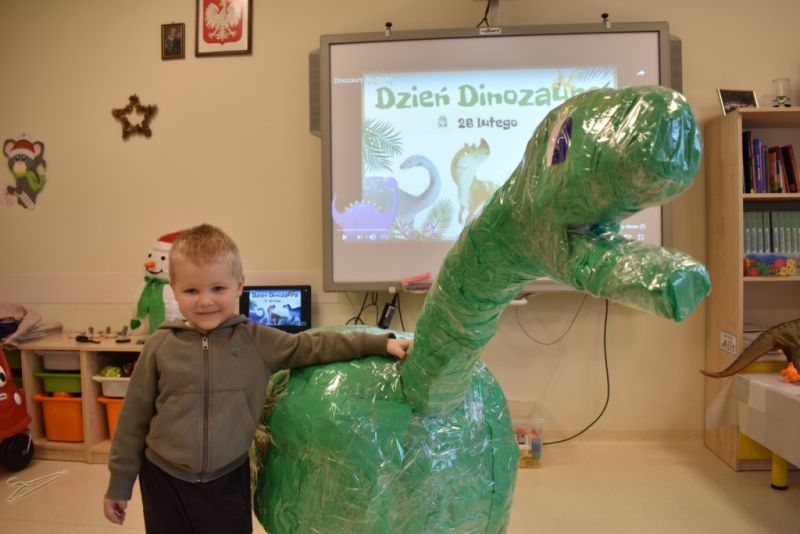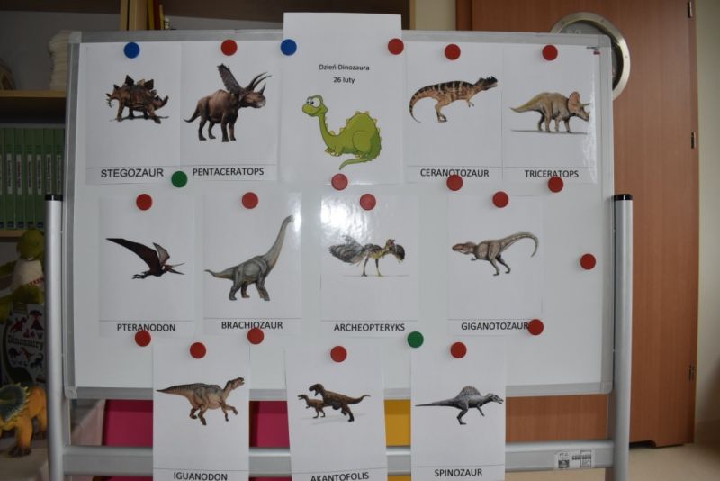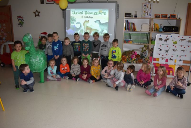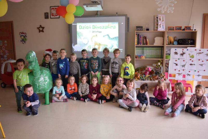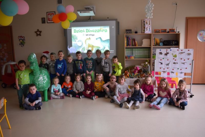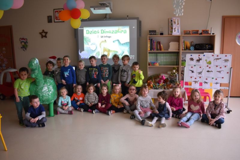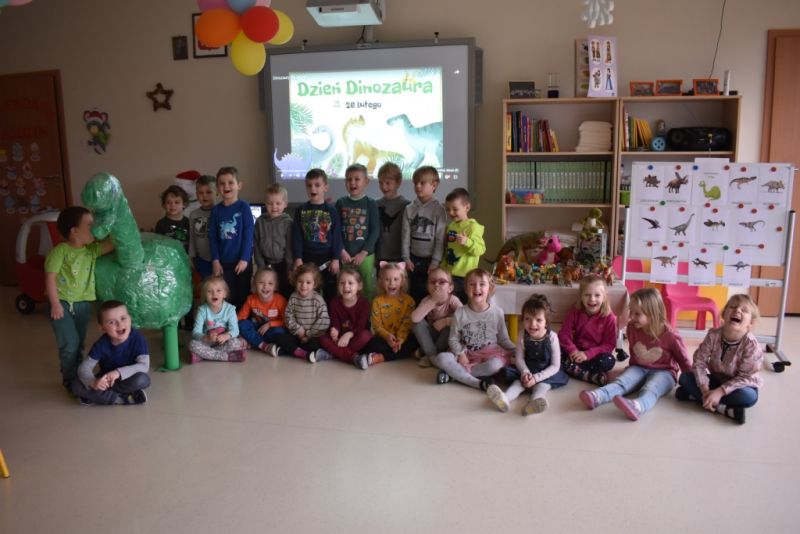 Dzisiaj w naszej grupie obchodziliśmy Dzień Dinozaura. Zrobiliśmy piękną wystawę z przyniesionych z domu dinozaurów. Poznaliśmy najpopularniejsze dinozaury oraz ciekawostki o nich. Na koniec wykonaliśmy dinozaury z gipsu oraz pokolorowaliśmy obrazki. Wspólnie ćwiczyliśmy z dinozaurami i wykonaliśmy pamiątkowe zdjęcia.
