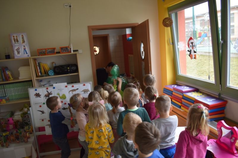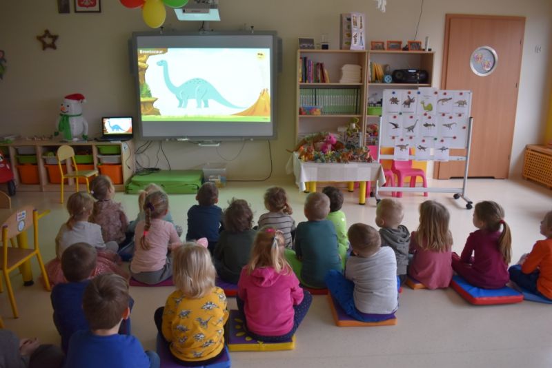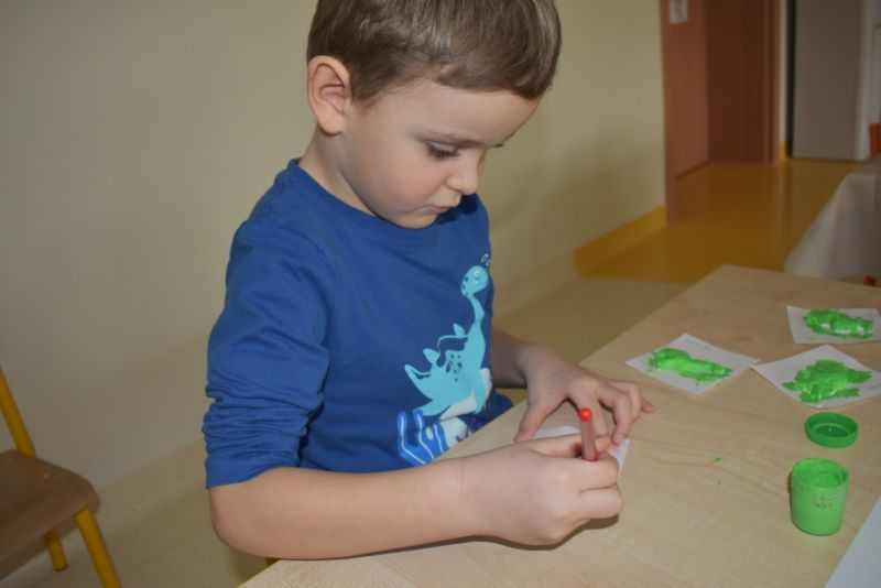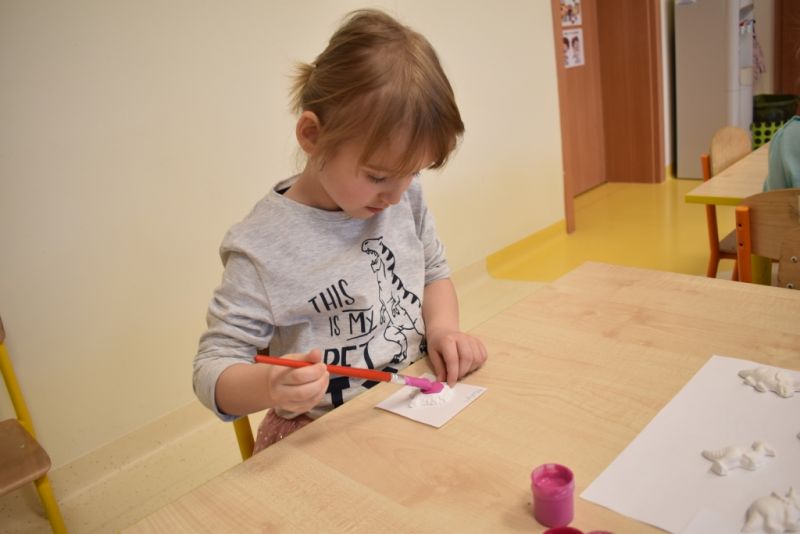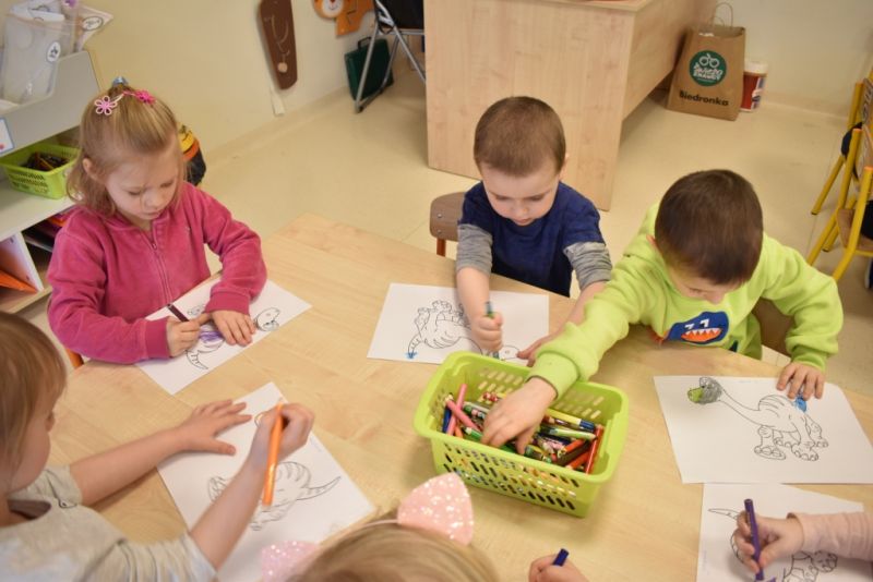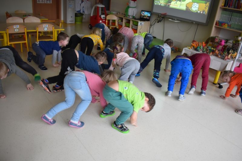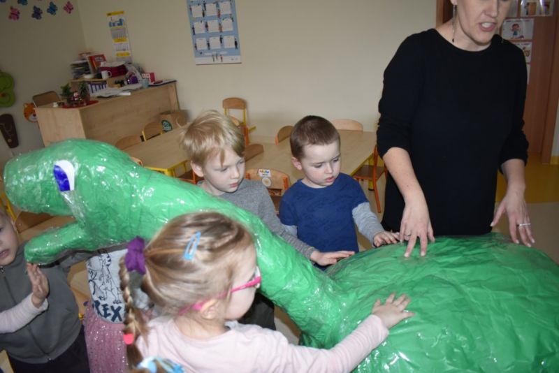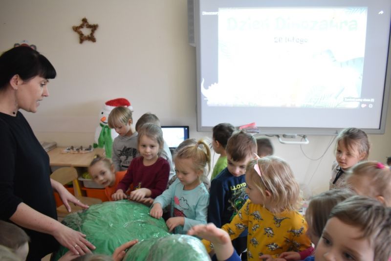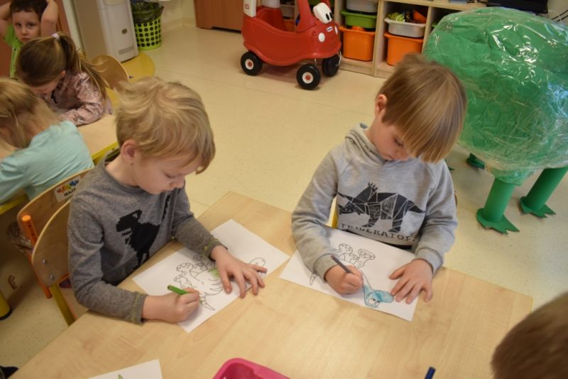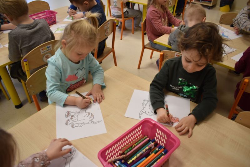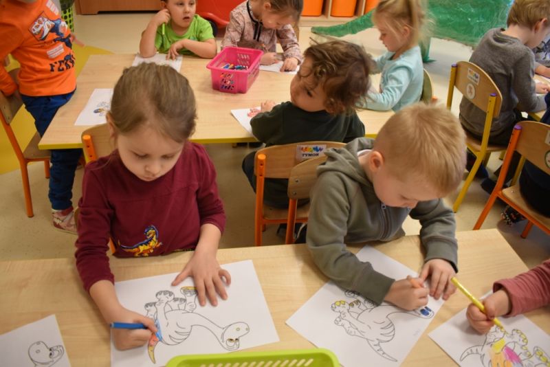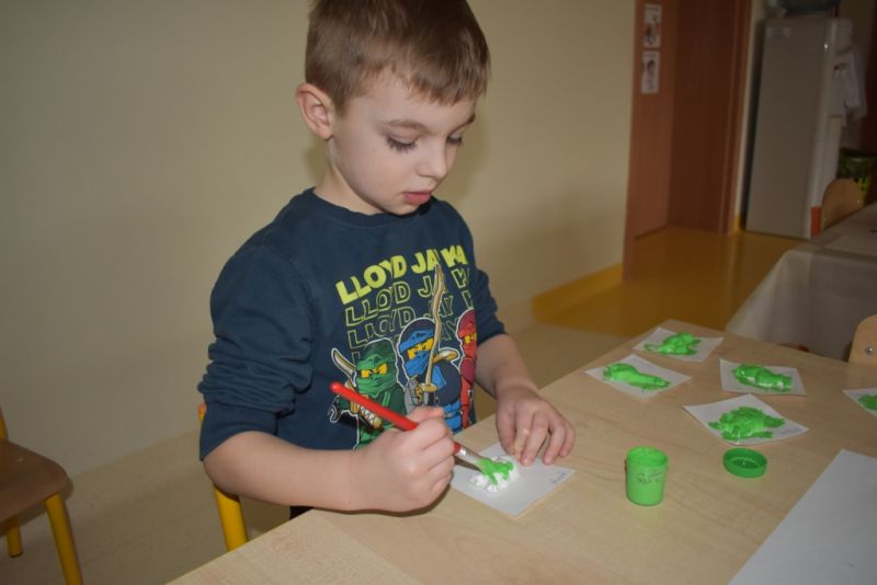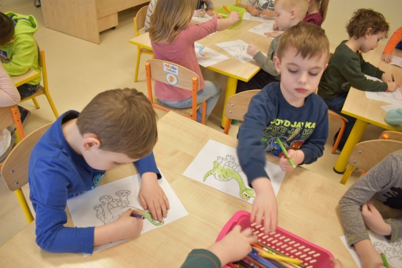 Dzisiaj w naszej grupie obchodziliśmy Dzień Dinozaura. Zrobiliśmy piękną wystawę z przyniesionych z domu dinozaurów. Poznaliśmy najpopularniejsze dinozaury oraz ciekawostki o nich. Na koniec wykonaliśmy dinozaury z gipsu oraz pokolorowaliśmy obrazki. Wspólnie ćwiczyliśmy z dinozaurami i wykonaliśmy pamiątkowe zdjęcia.