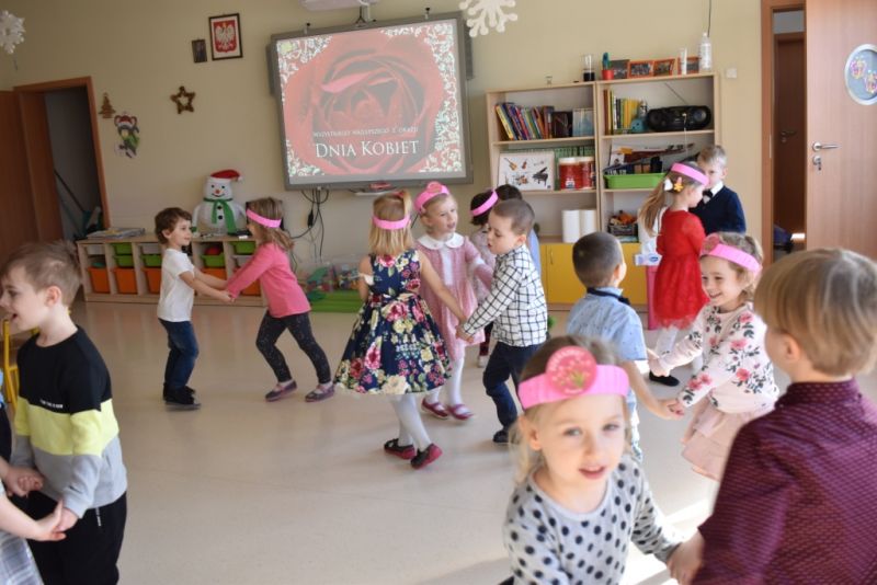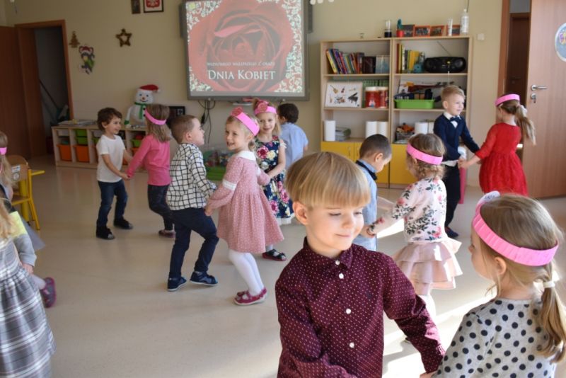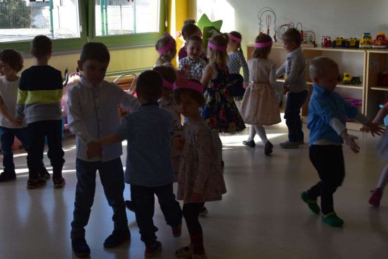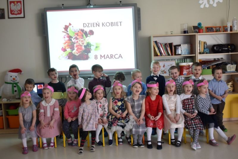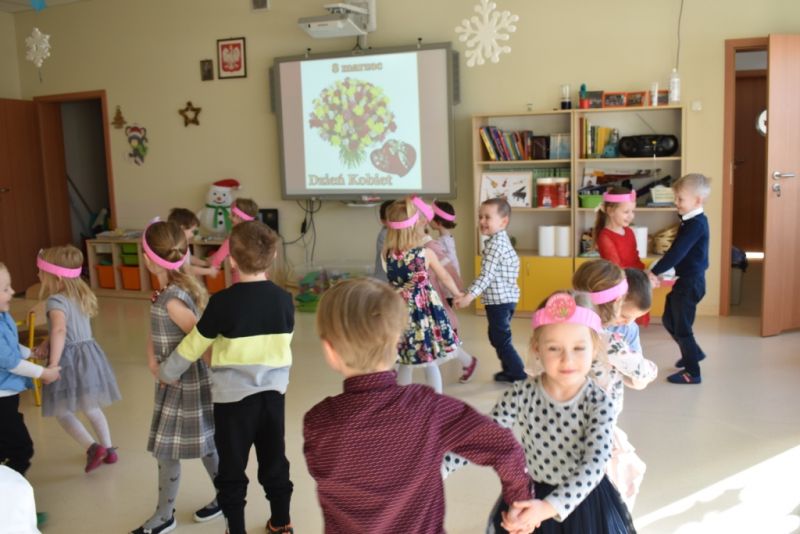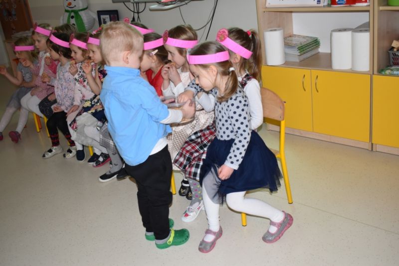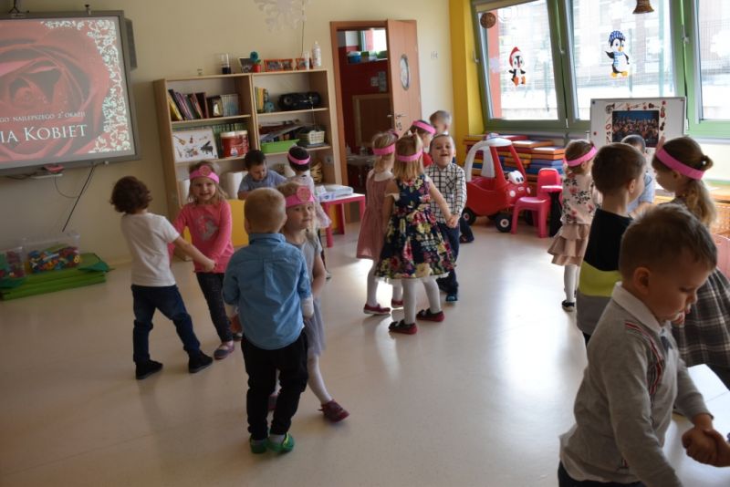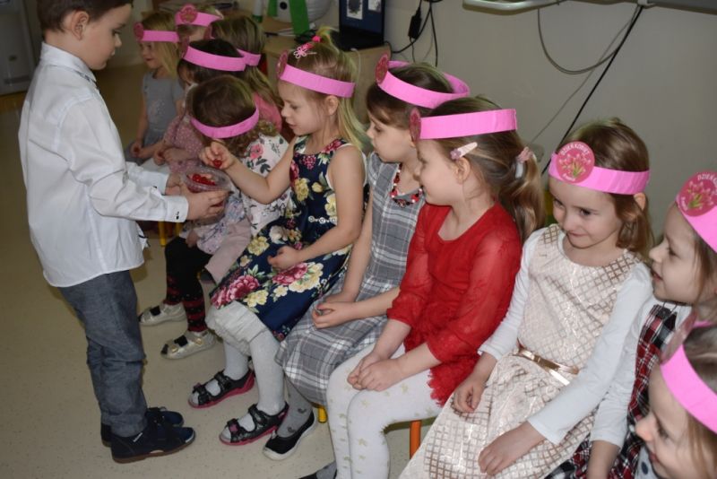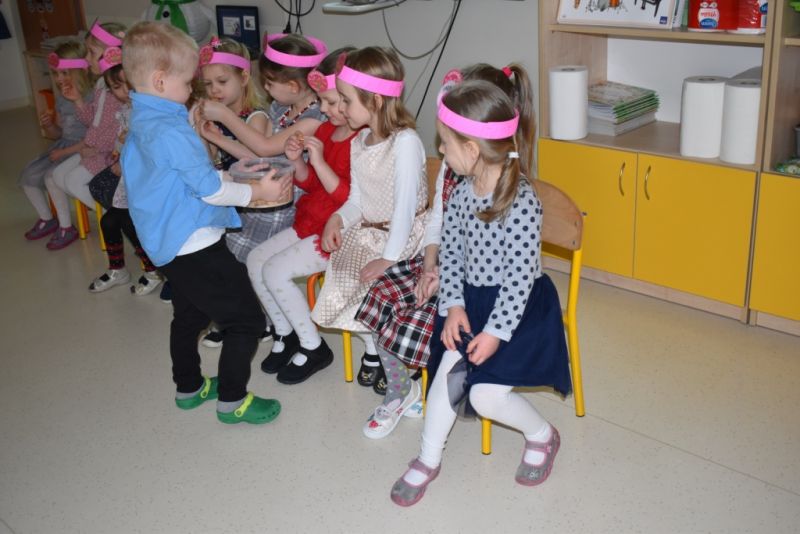Dzisiaj w naszej grupie świętowaliśmy Dzień Kobiet. Chłopcy zaśpiewali dziewczykom sto lat, złożyli życzenia, wręczyli upominki, a na koniec odbyła się wspólna zabawa taneczna. Do domu prezenty zabrały dziewczynki oraz duże piłki chłopcy. Nasi "mali mężczyźni" wręczyli wszystkim paniom w przedszkolu pyszne czekoladki i złożyli życzenia.