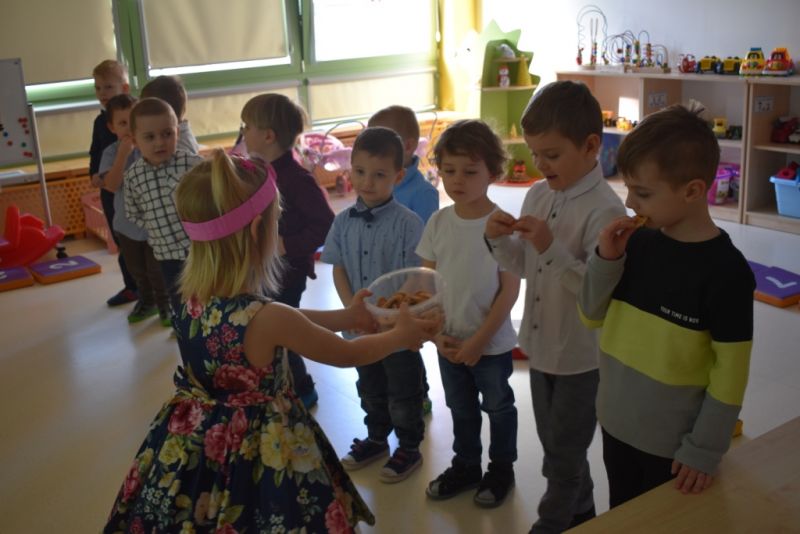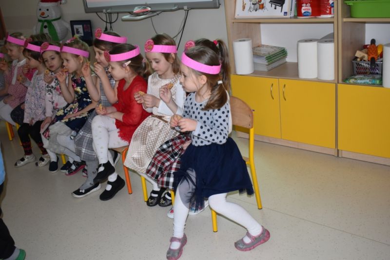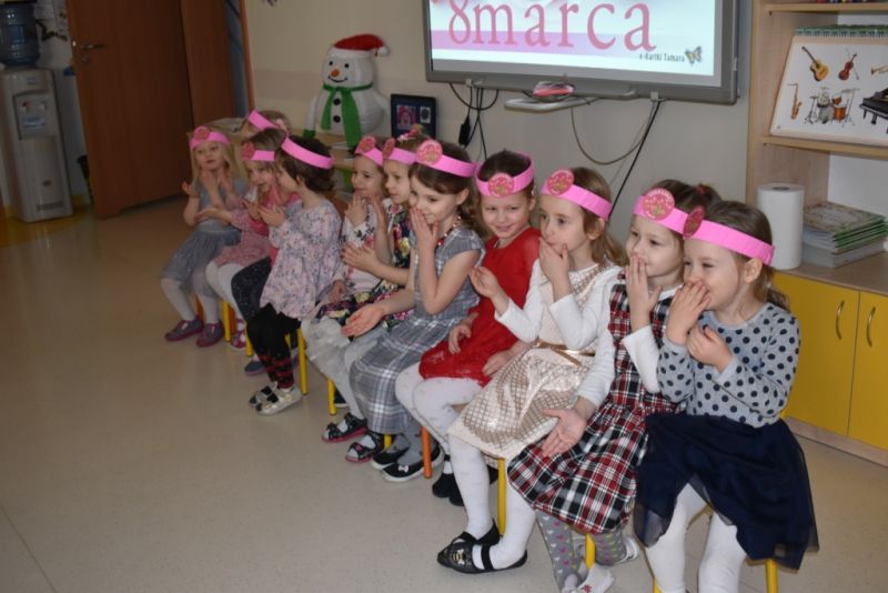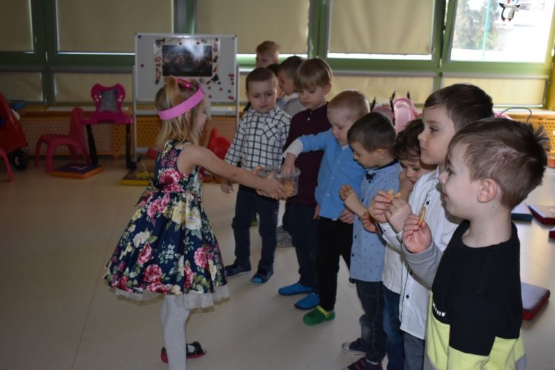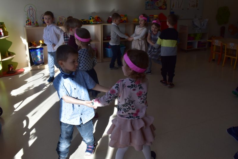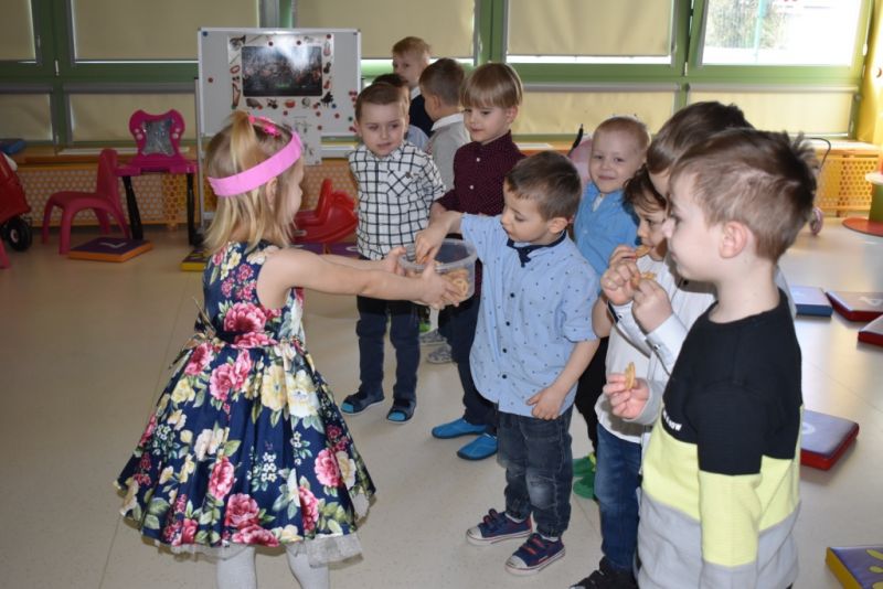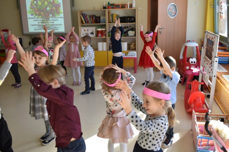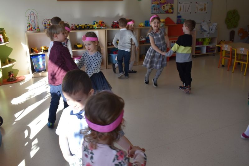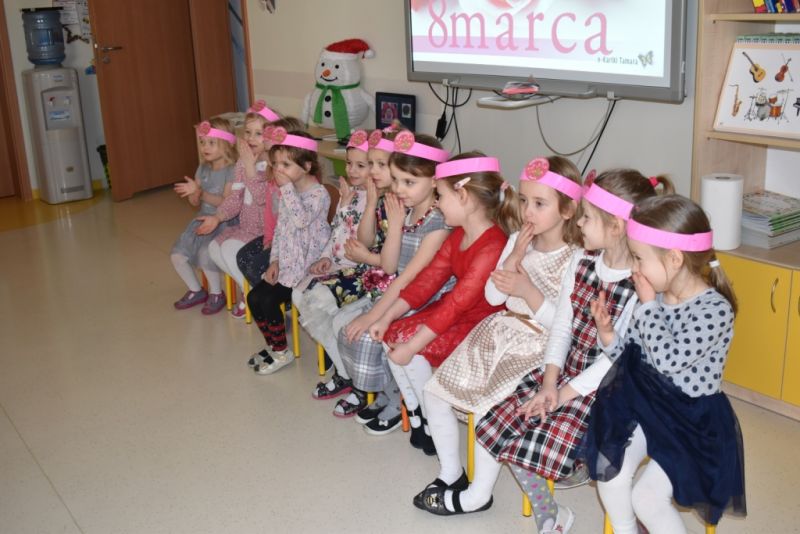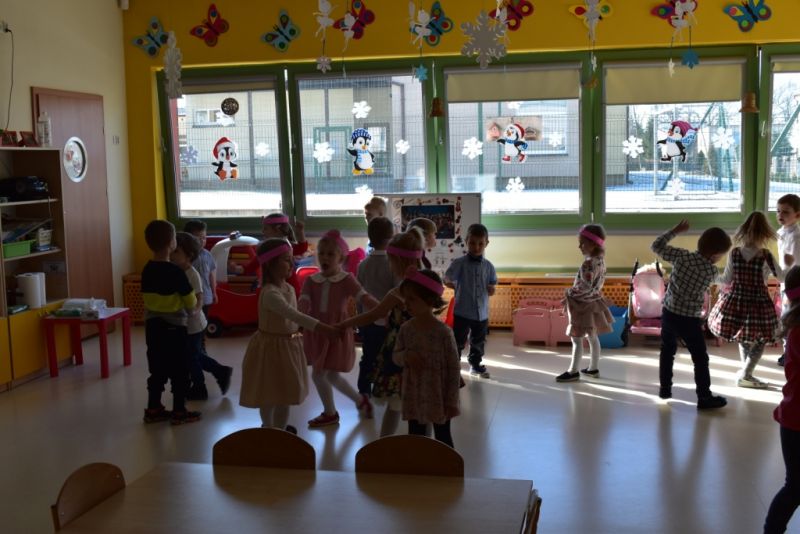 Dzisiaj w naszej grupie świętowaliśmy Dzień Kobiet. Chłopcy zaśpiewali dziewczykom sto lat, złożyli życzenia, wręczyli upominki, a na koniec odbyła się wspólna zabawa taneczna. Do domu prezenty zabrały dziewczynki oraz duże piłki chłopcy. Nasi "mali mężczyźni" wręczyli wszystkim paniom w przedszkolu pyszne czekoladki i złożyli życzenia.