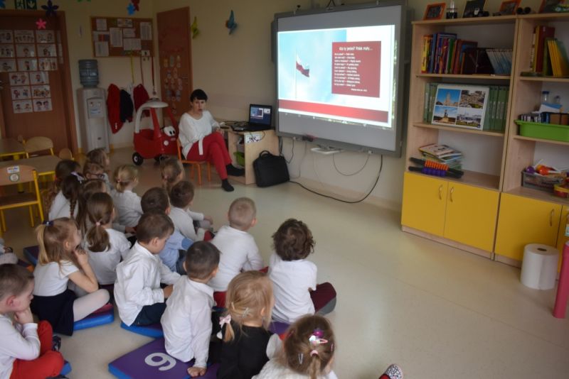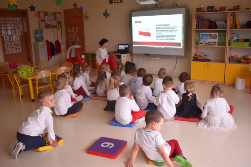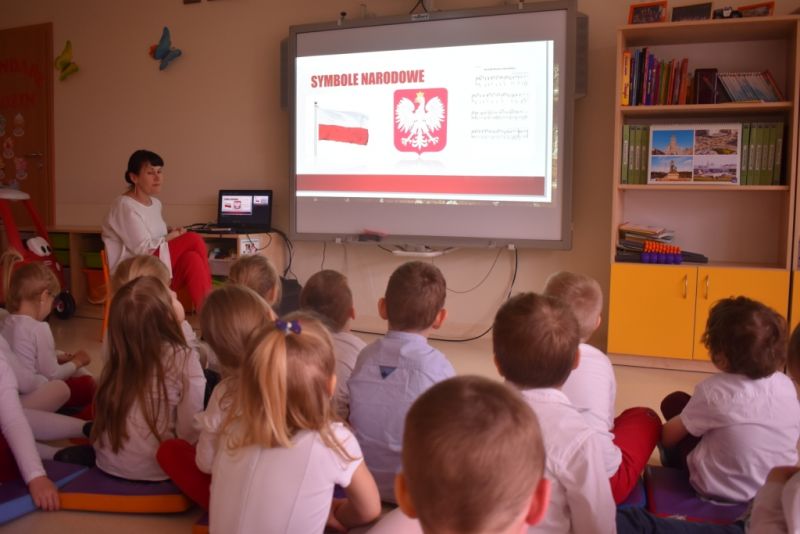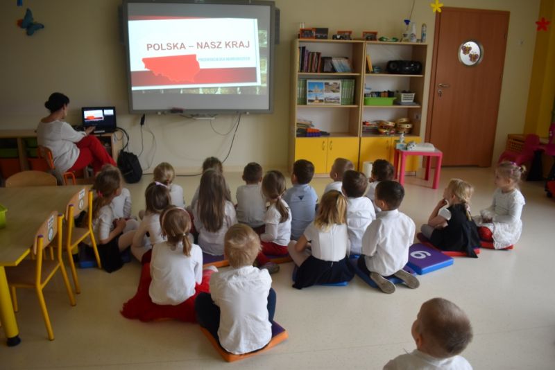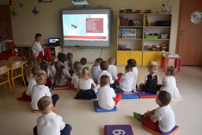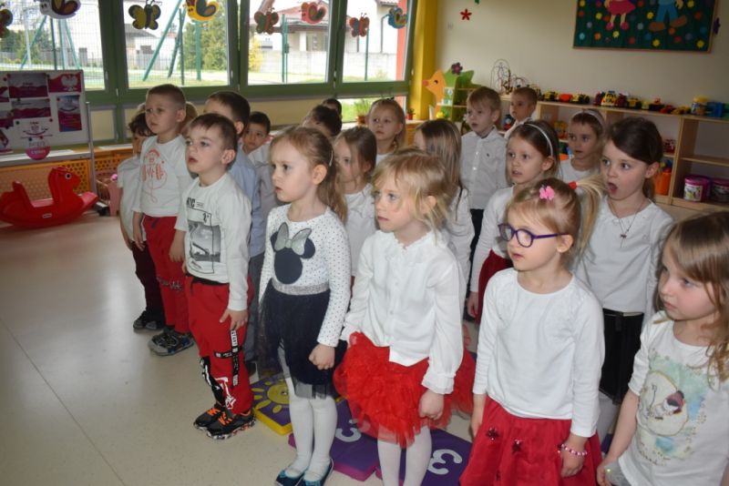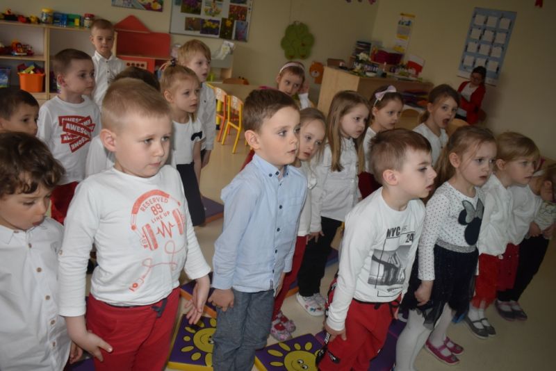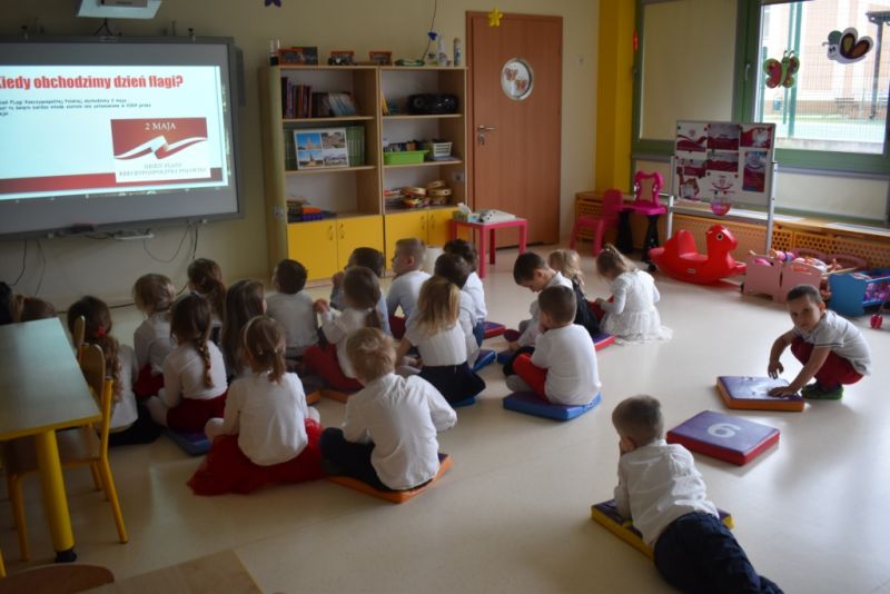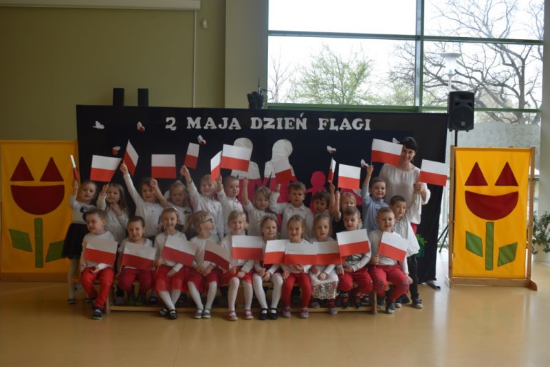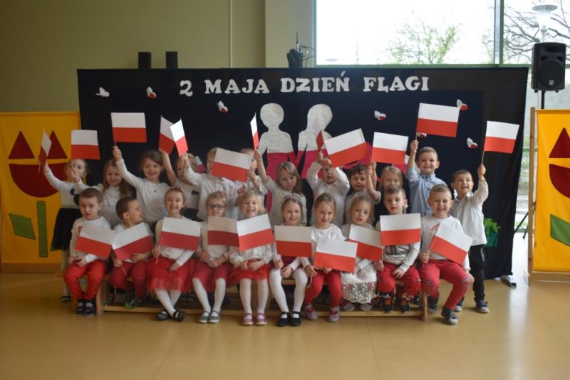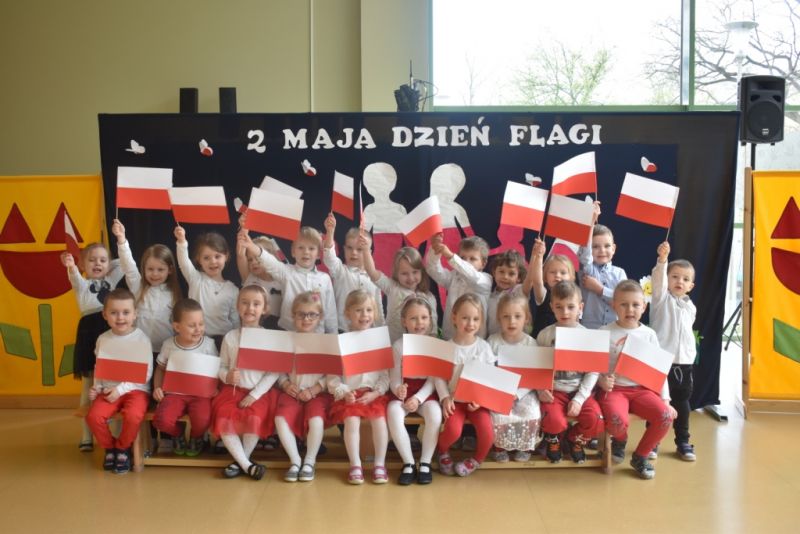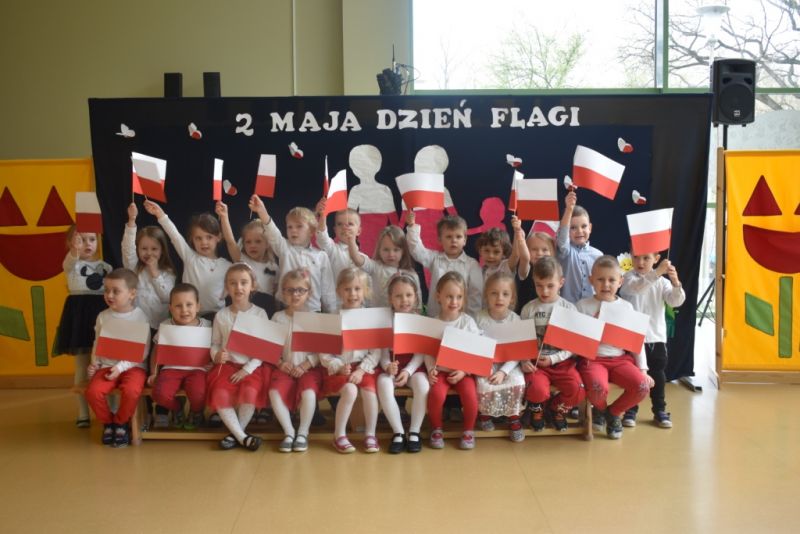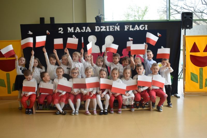 Dzisiaj obchodzliśmy Dzień Flagi. Ubraliśmy się na biało- czerwono lub galowo aby uroczyście świętować ten dzień. Utrwaliliśmy symbole narodowe, poznaliśmy stolicę Polski, najdłuższą rzekę w Polsce, hymn Polski, godło oraz flagę. Odgadywaliśmy zagadki związane z naszym kraje. Na koniec każdy wykonał flagę Polski, którą zabrał do swojego domu.