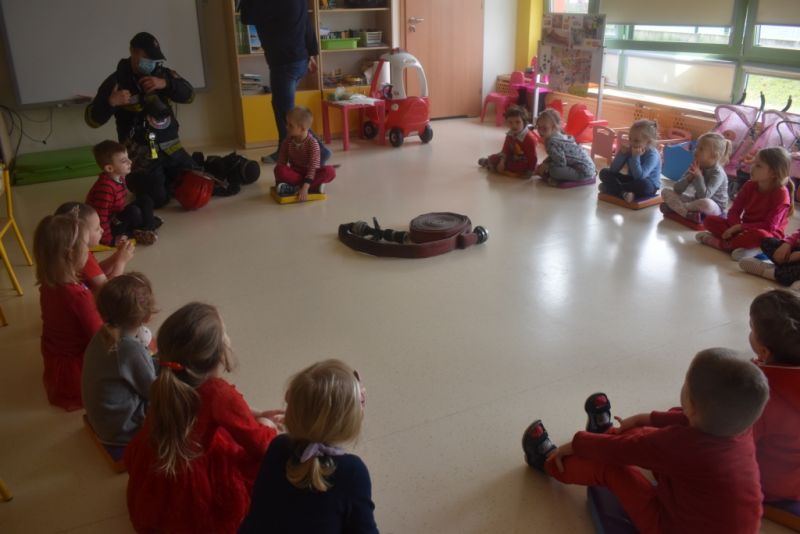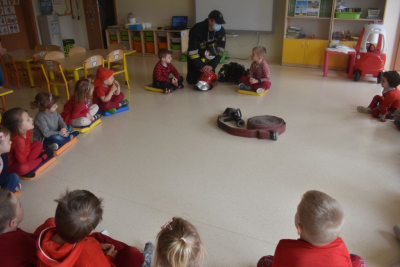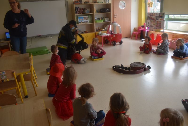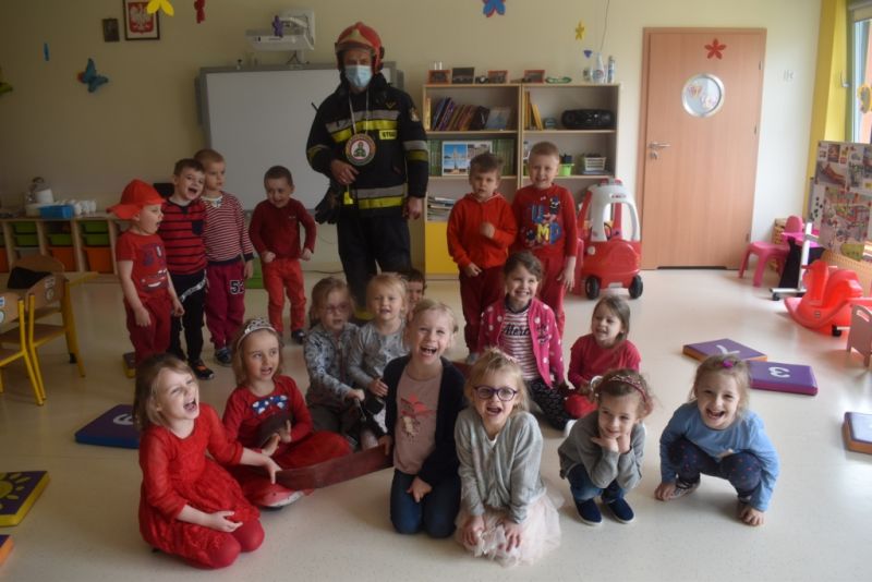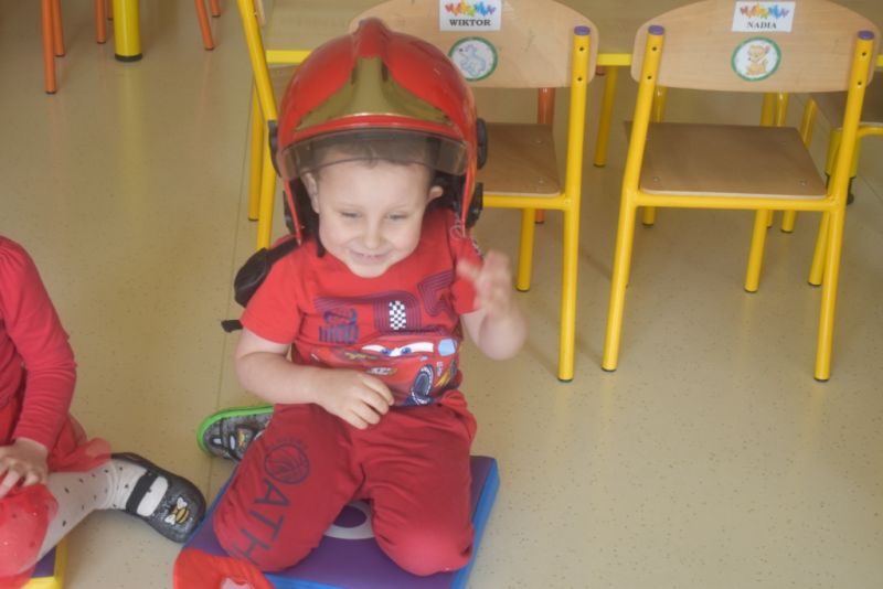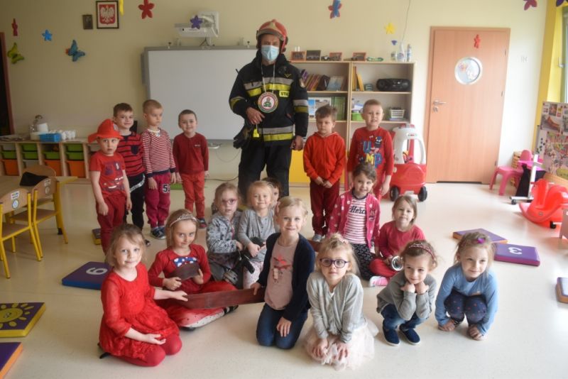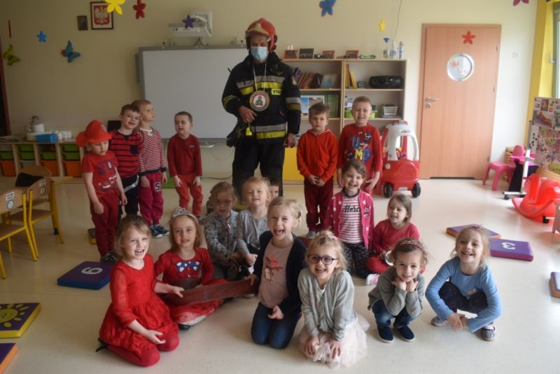 Dzisiaj w naszym przedszkolu obchodziliśmy Dzień Strażaka. Dowiedzieliśmy się ciekawostek o pracy strażaka, jego ubiór. Braliśmy aktywny udział w ćwiczeniach sprawnościowych jak przystało na prawdziwych, małych strażaków. Największą atrakcją było spotkanie z prawdziwym strażakiem, który opowiedział o swojej pracy, pokazał rekwizyty które wykorzystuje w swojej pracy na co dzień. To był dzień pełen emocji.