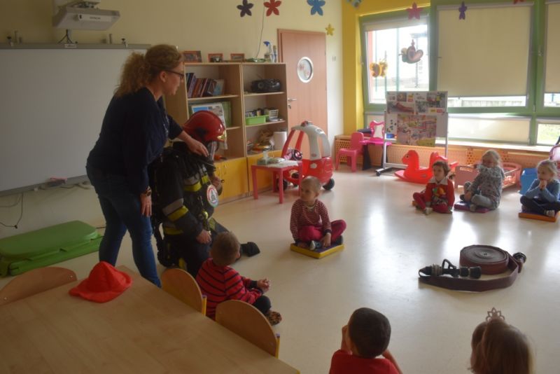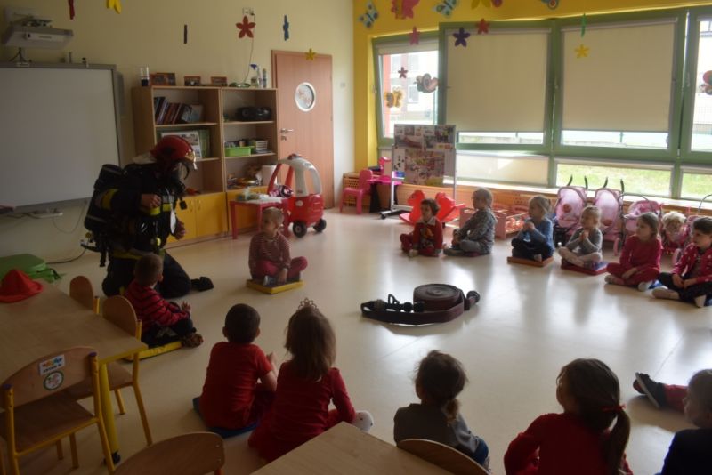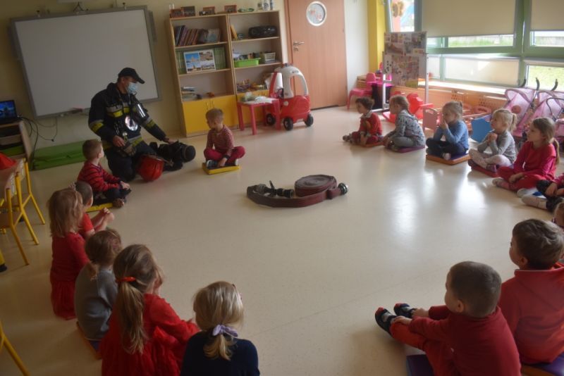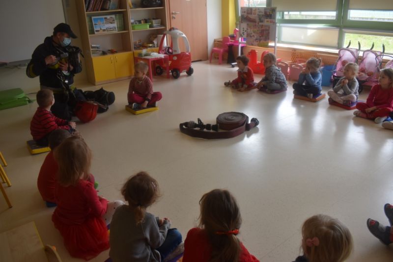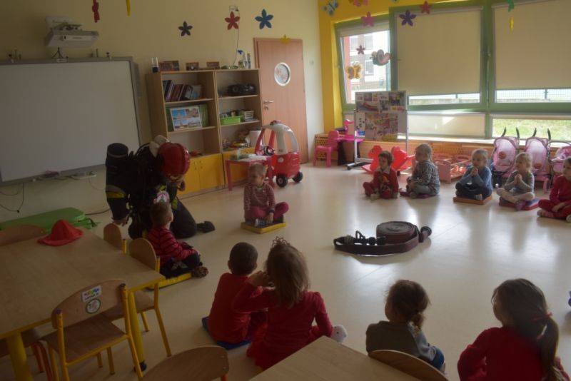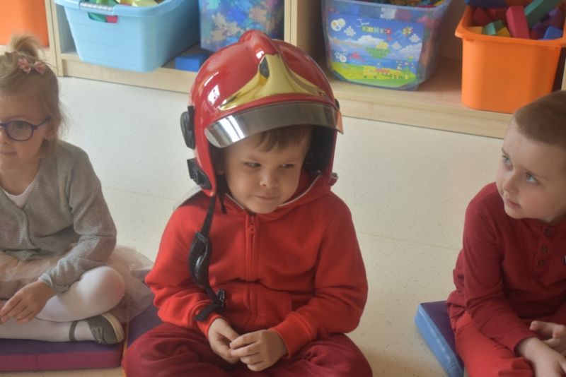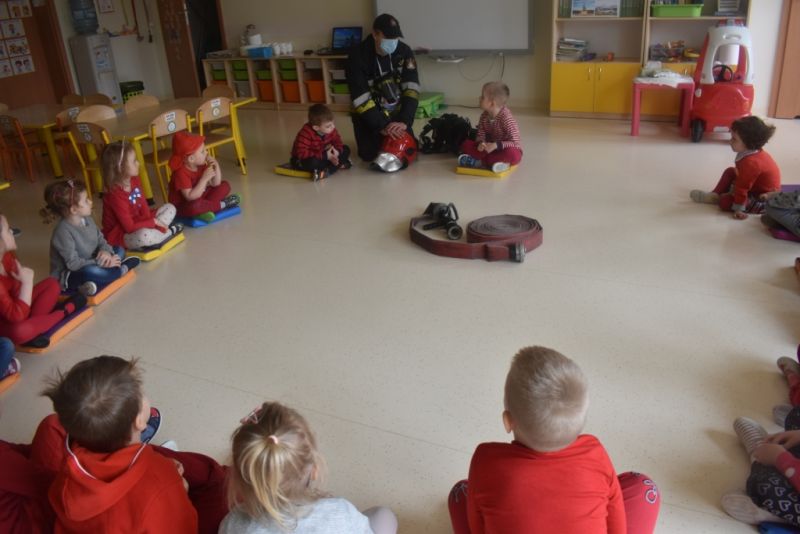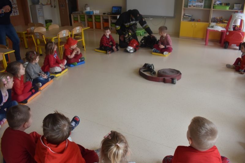 Dzisiaj w naszym przedszkolu obchodziliśmy Dzień Strażaka. Dowiedzieliśmy się ciekawostek o pracy strażaka, jego ubiór. Braliśmy aktywny udział w ćwiczeniach sprawnościowych jak przystało na prawdziwych, małych strażaków. Największą atrakcją było spotkanie z prawdziwym strażakiem, który opowiedział o swojej pracy, pokazał rekwizyty które wykorzystuje w swojej pracy na co dzień. To był dzień pełen emocji.