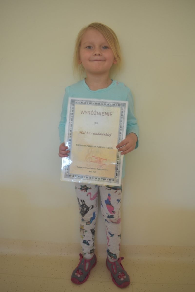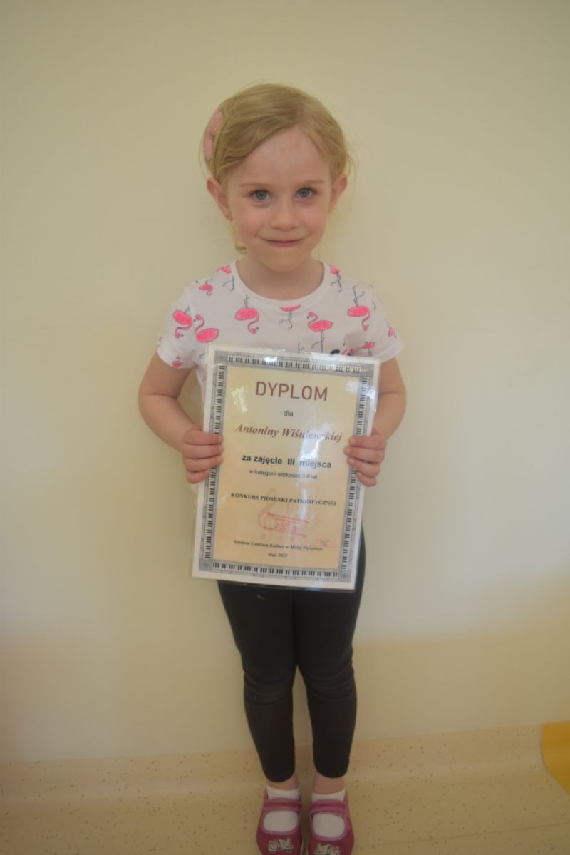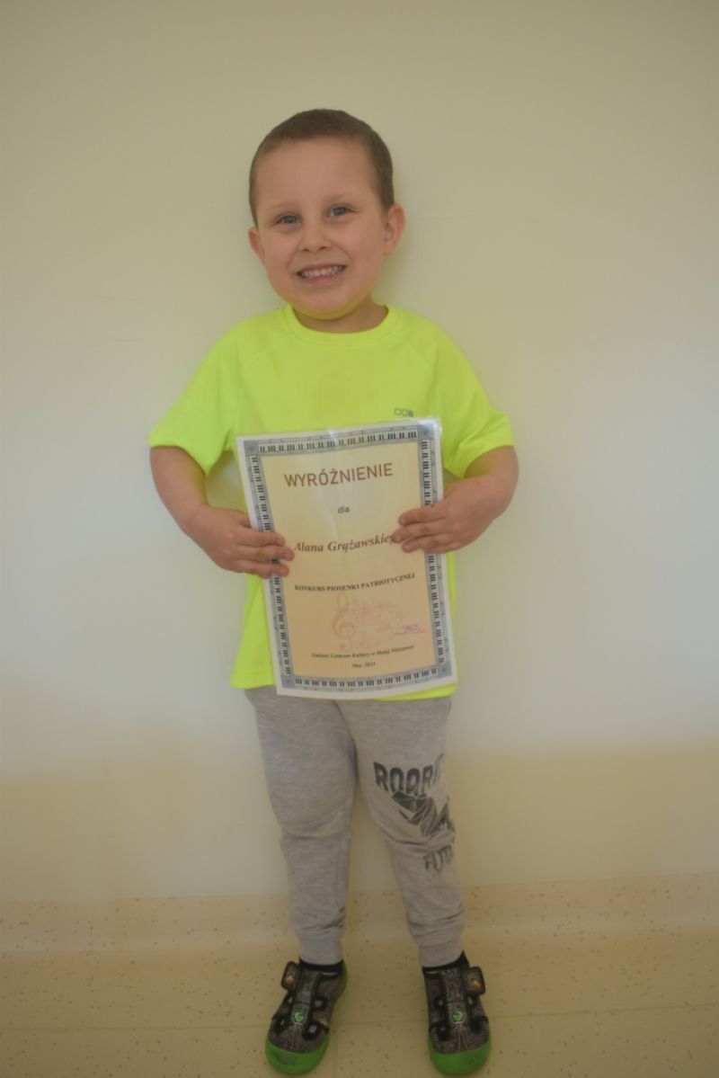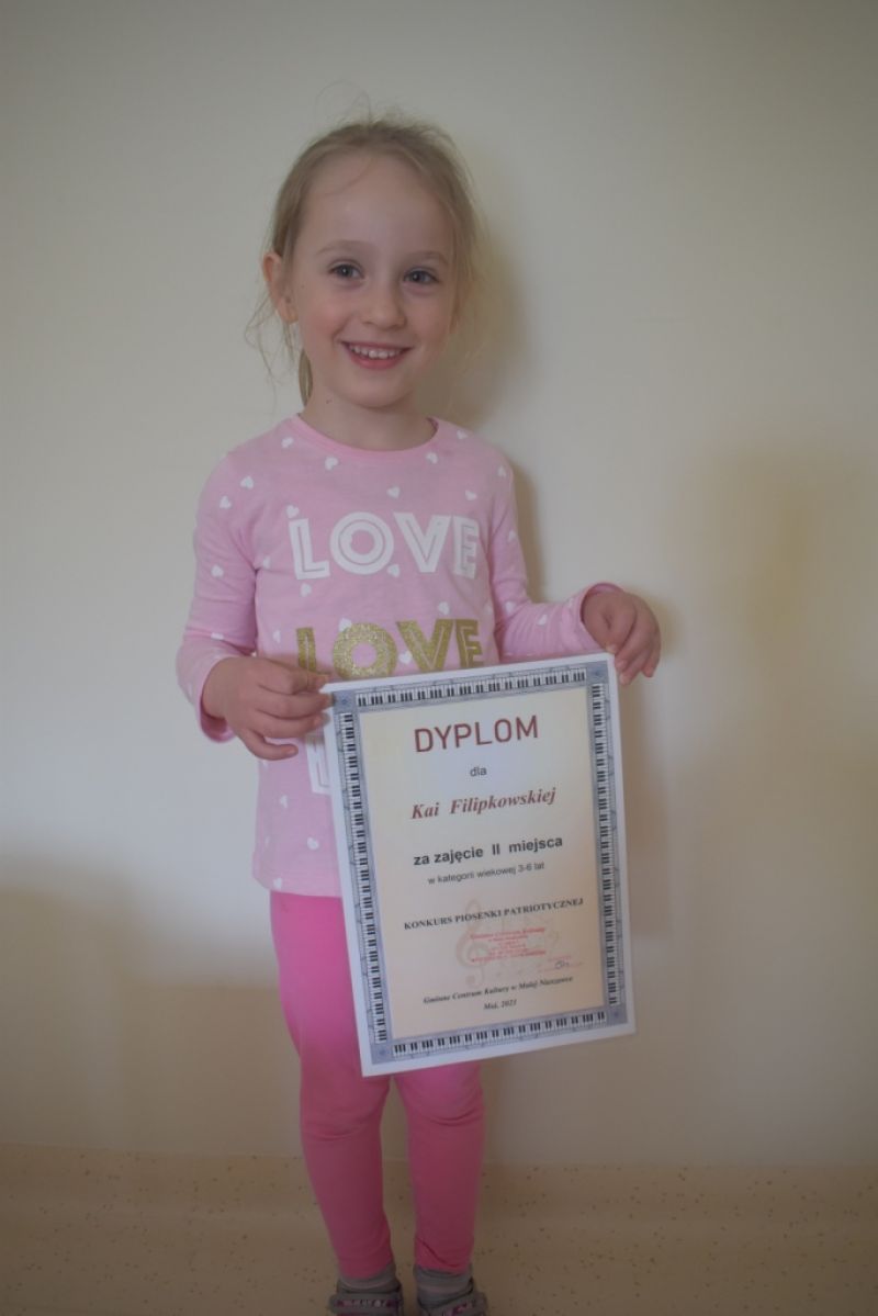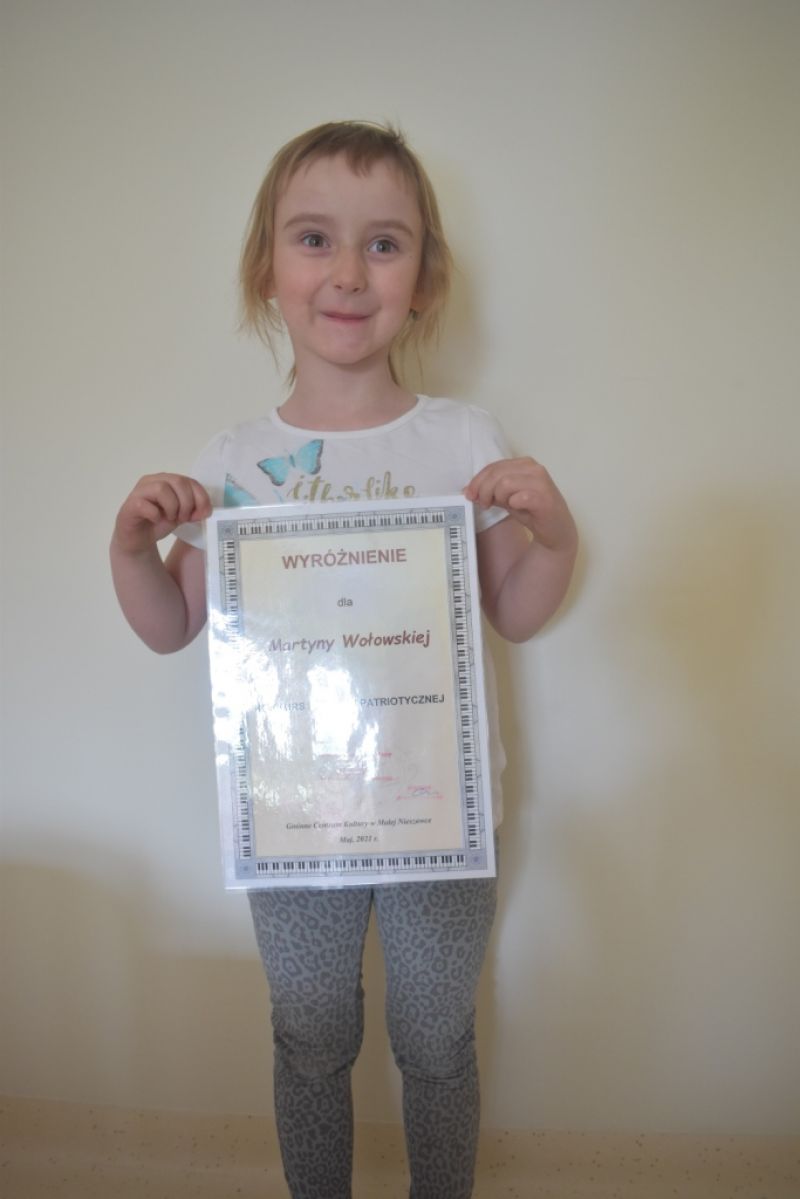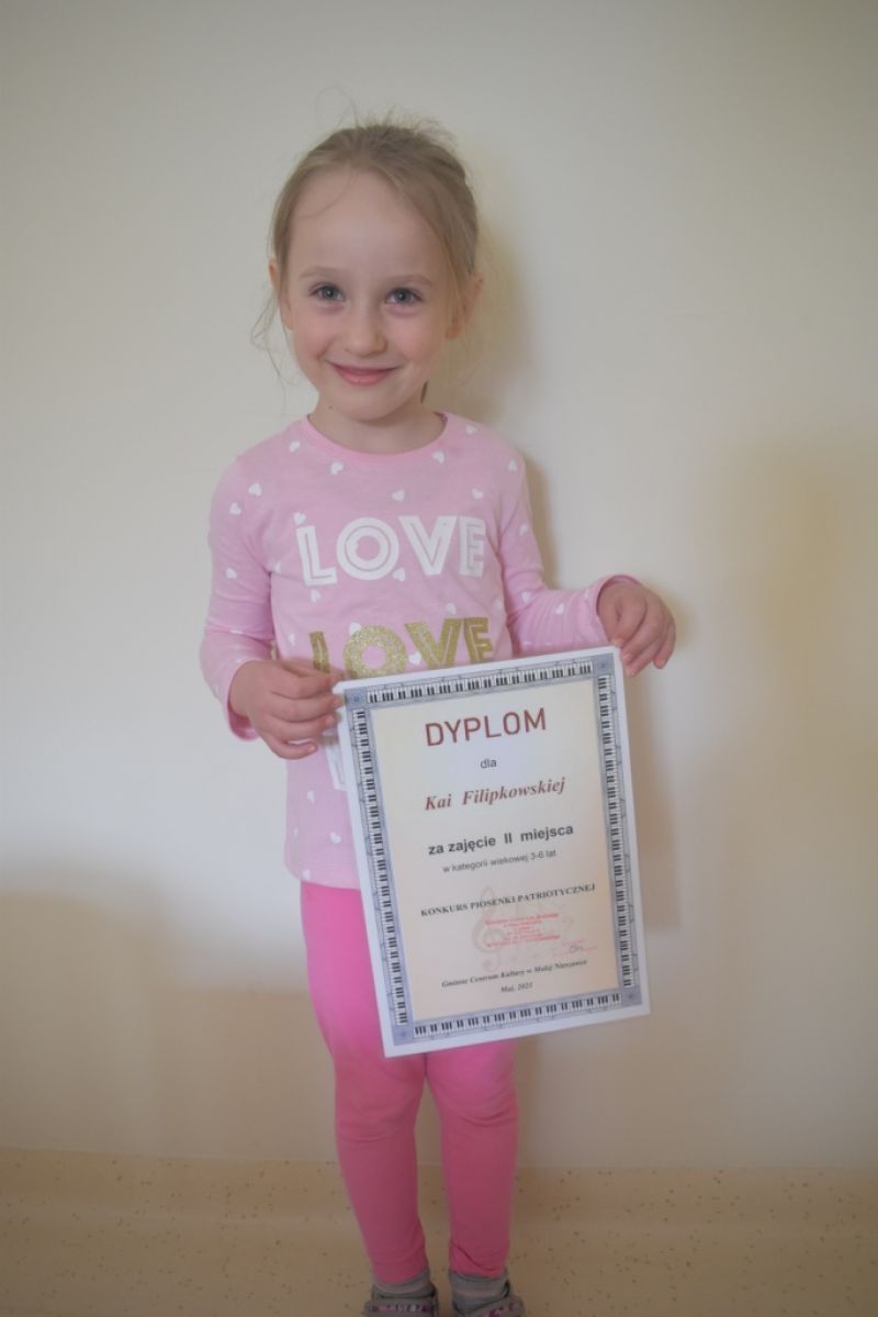 Dzieci z naszej grupy wzięły udział w Konkursie Piosenki Patriotycznej online organizowanym przez Gminne Centrum Kultury w Małej Nieszawce. Naszym dzieciom udało się odnieść sukces i zdobyły: