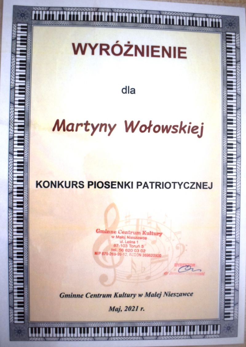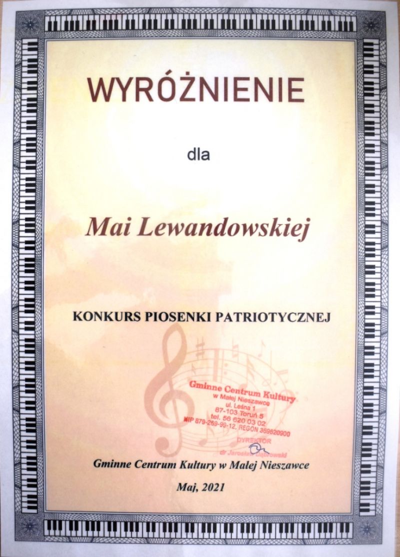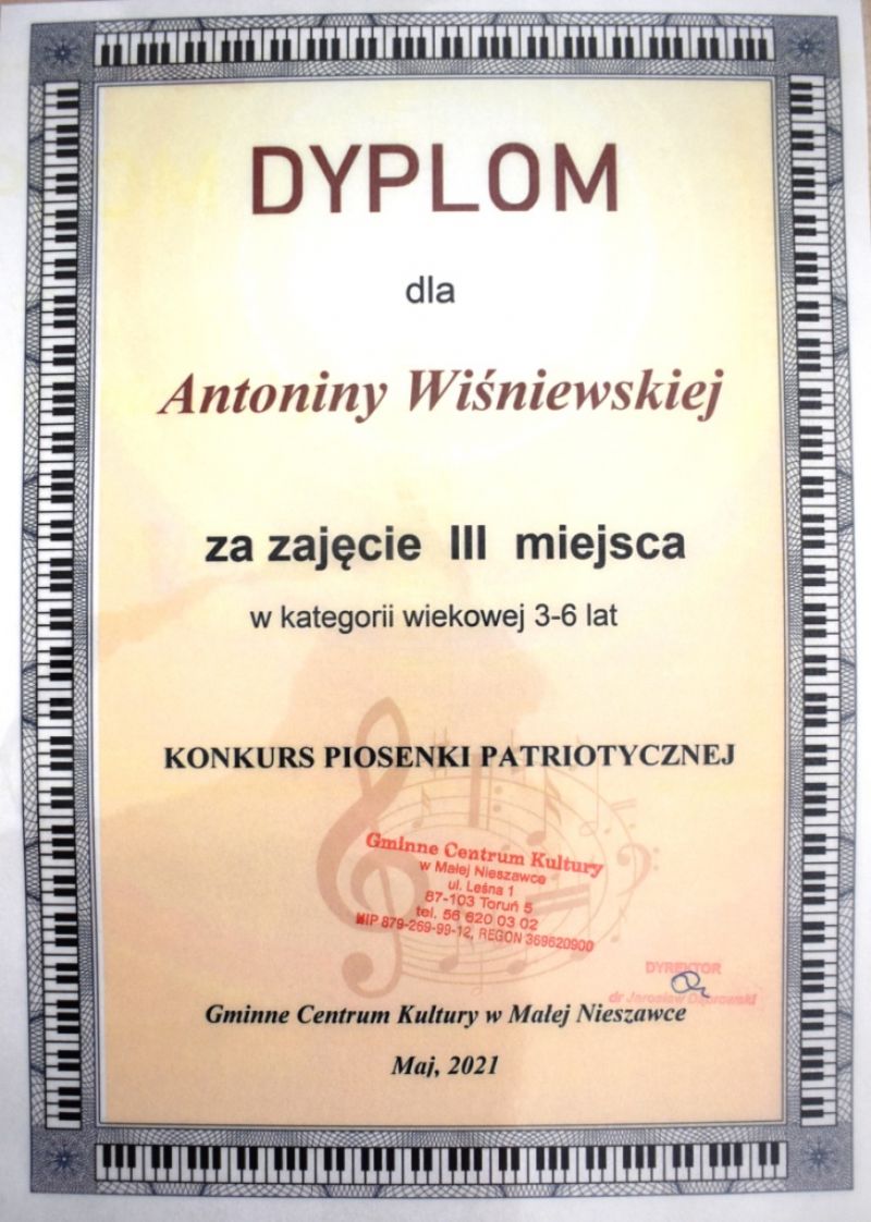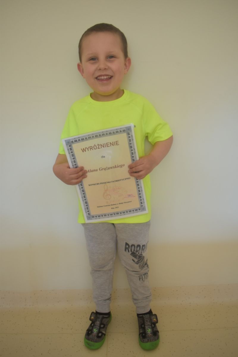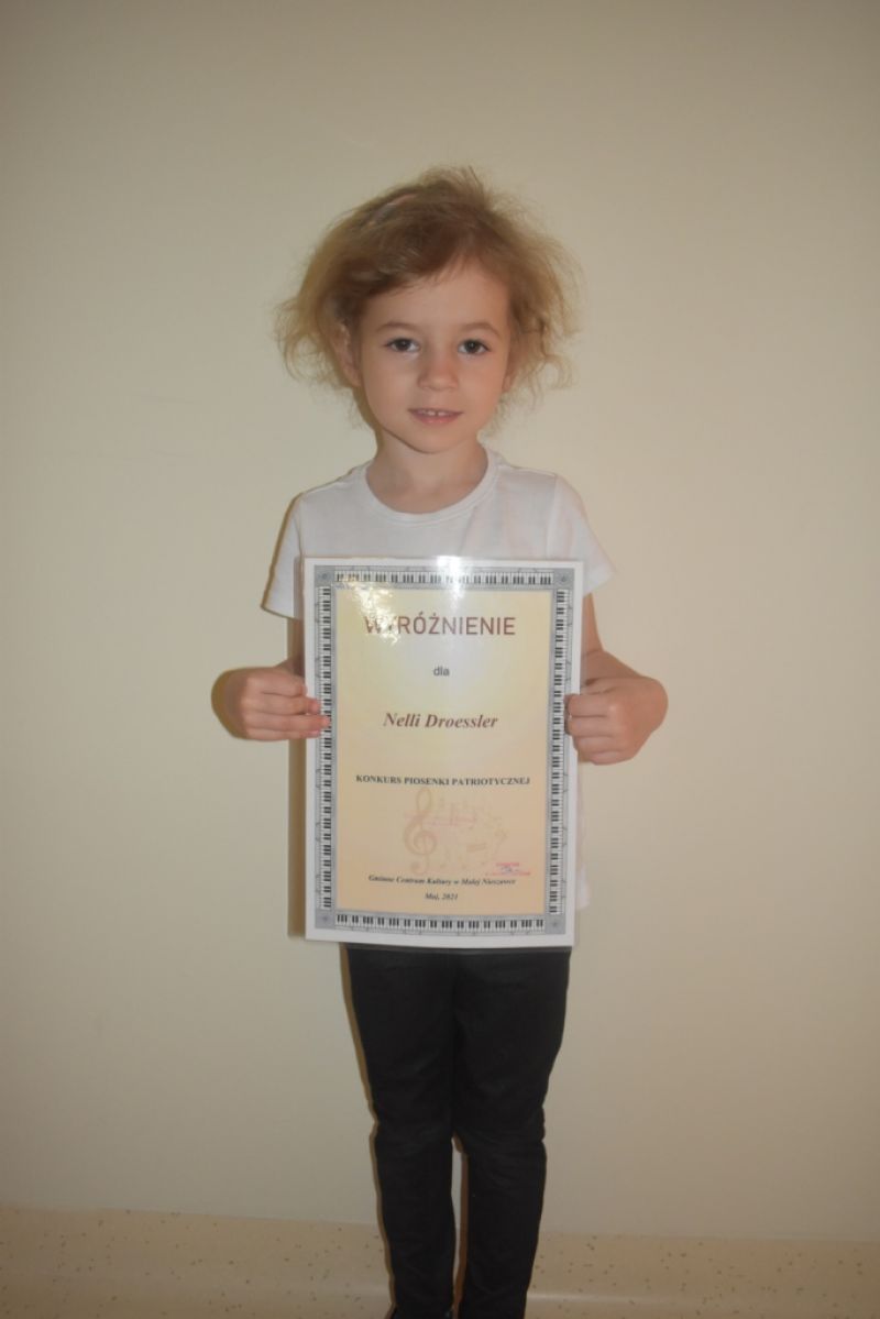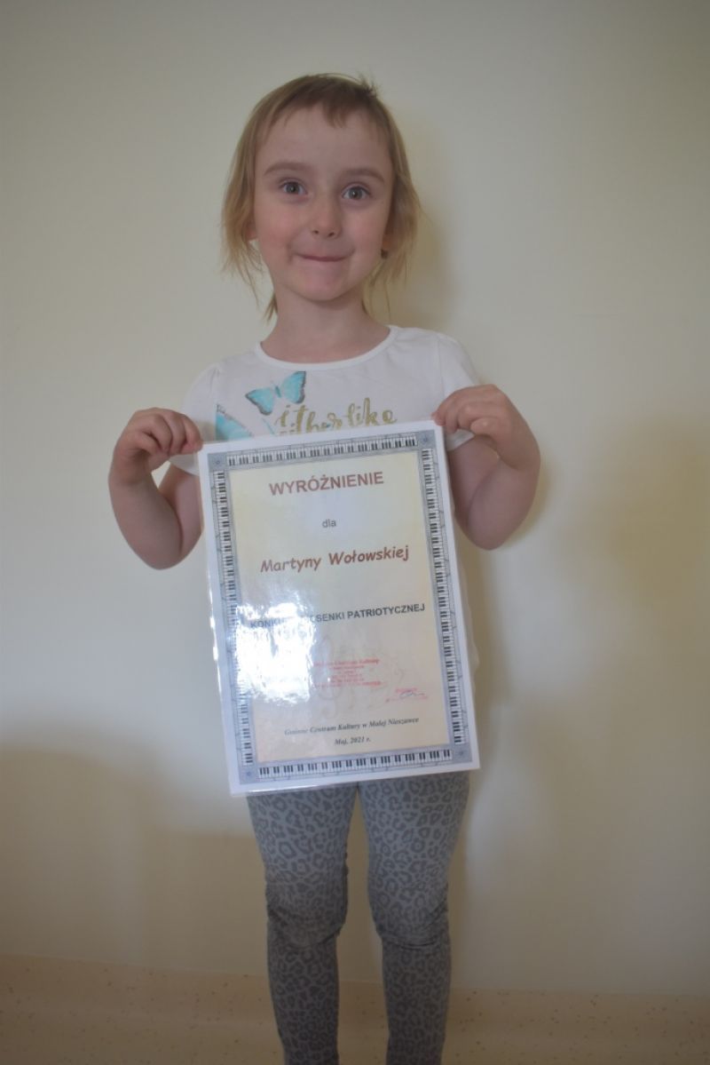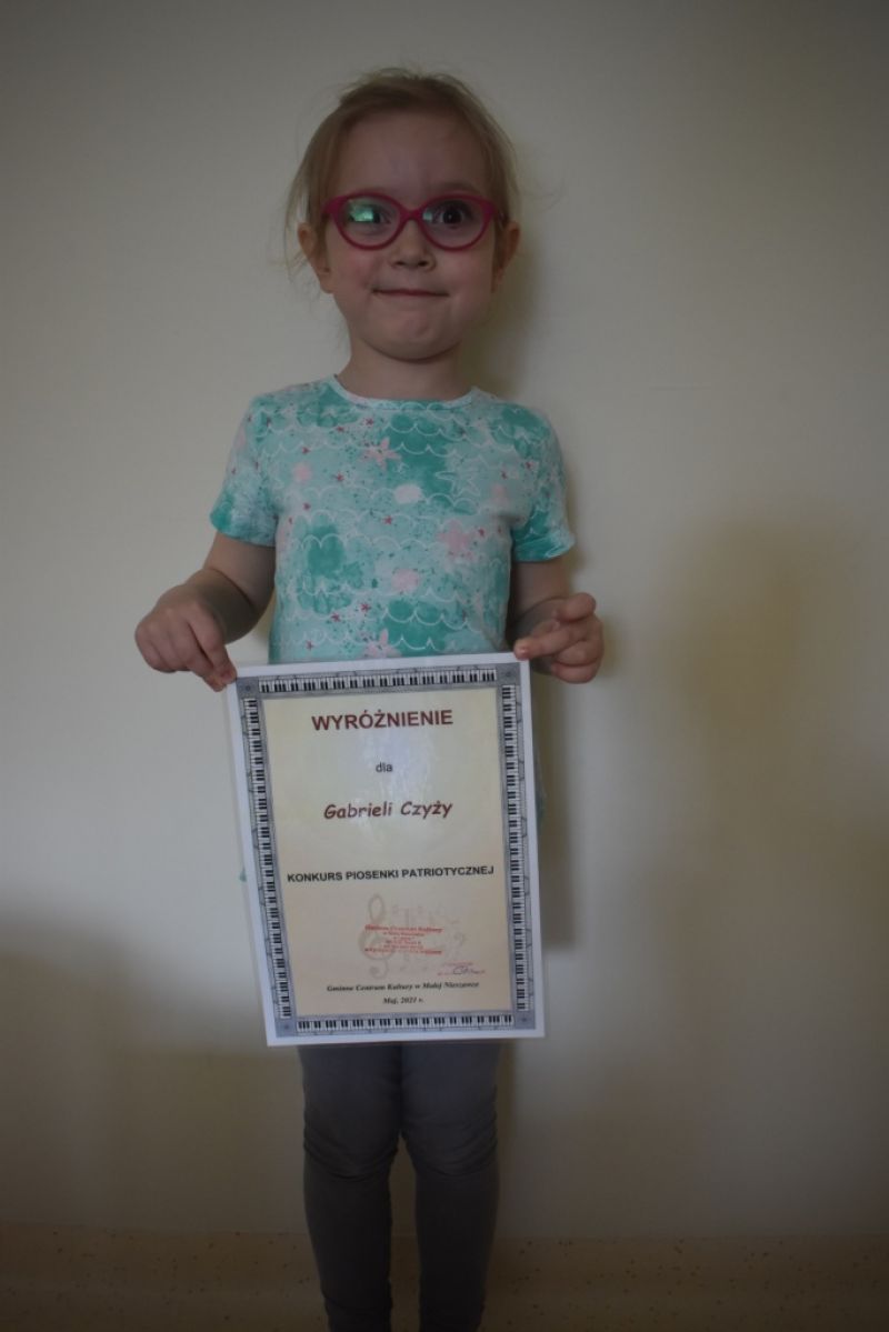 Dzieci z naszej grupy wzięły udział w Konkursie Piosenki Patriotycznej online organizowanym przez Gminne Centrum Kultury w Małej Nieszawce. Naszym dzieciom udało się odnieść sukces i zdobyły: