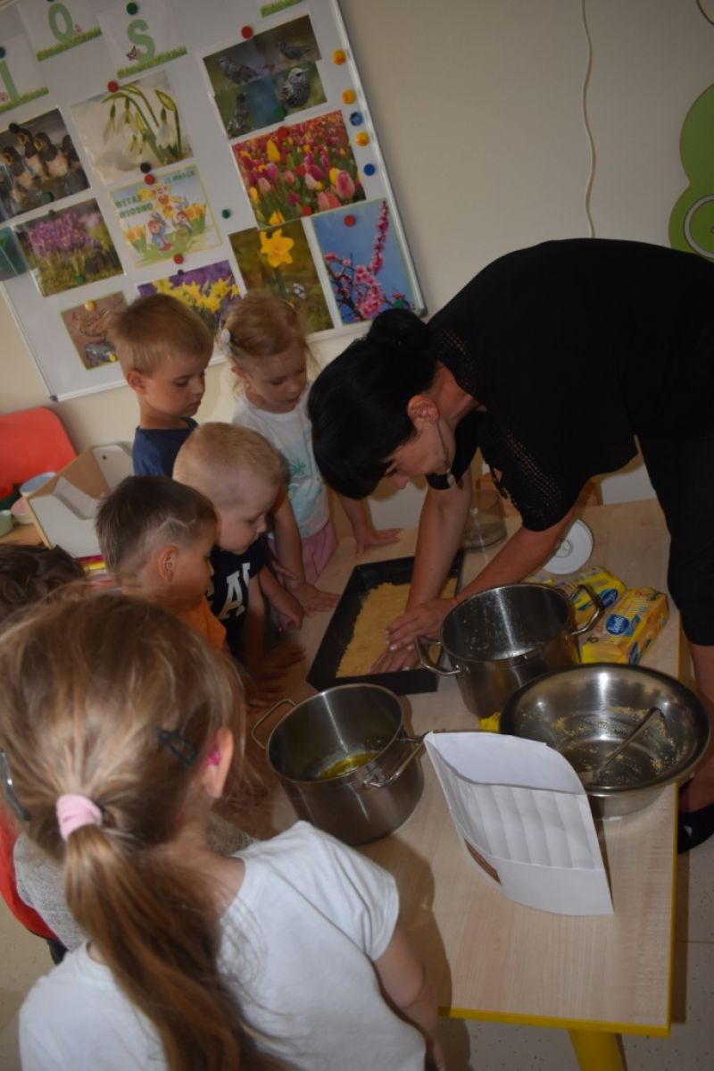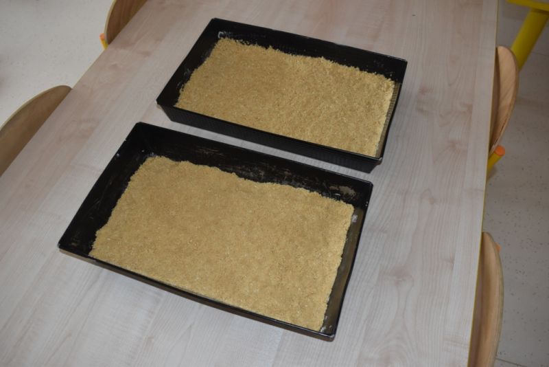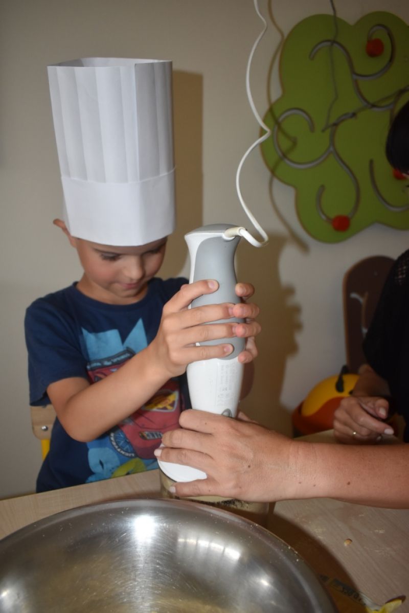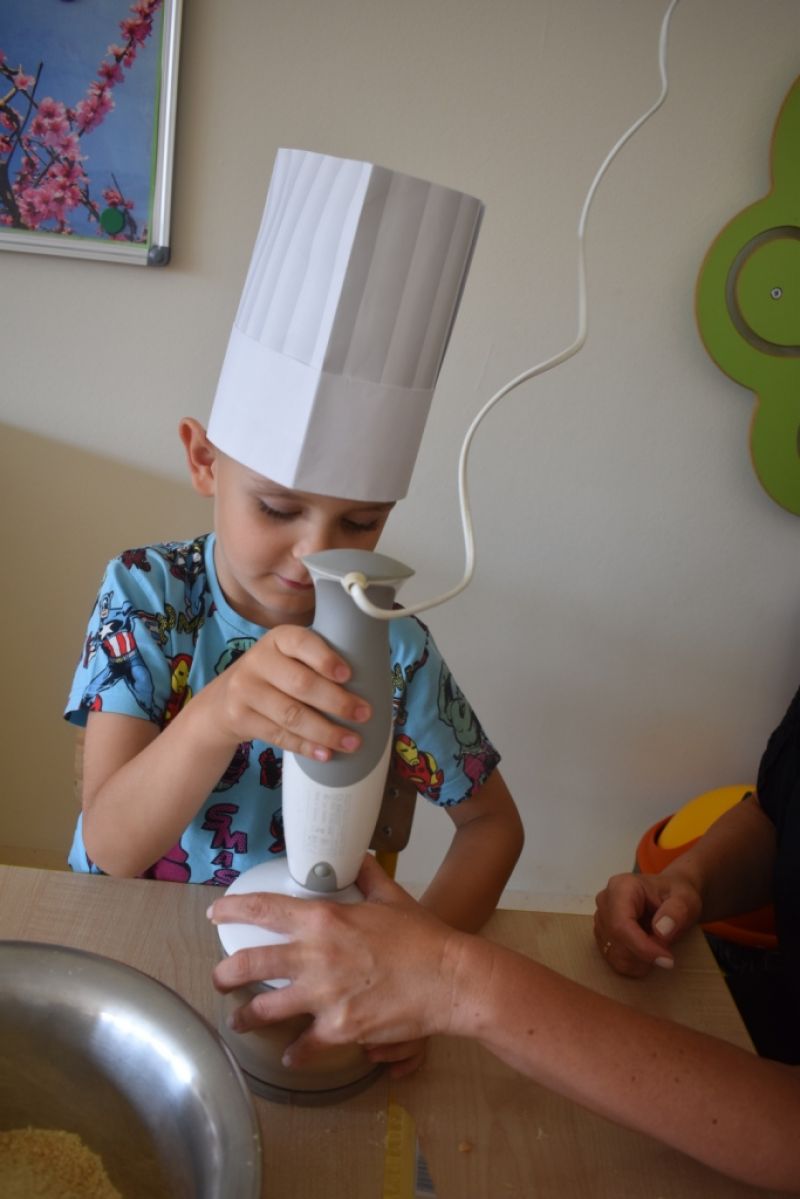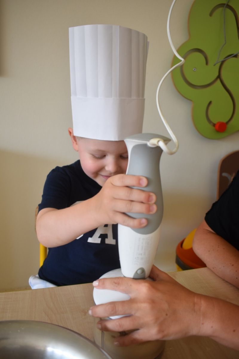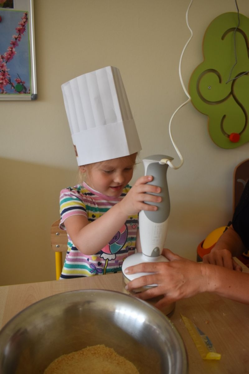Dzisiaj upiekliśmy 4 blachy sernika dla naszych rodziców na piknik Motylków. Okazaliśmy się wybitnymi cukiernikami. To była przednia zabawa i nauka jednocześnie.