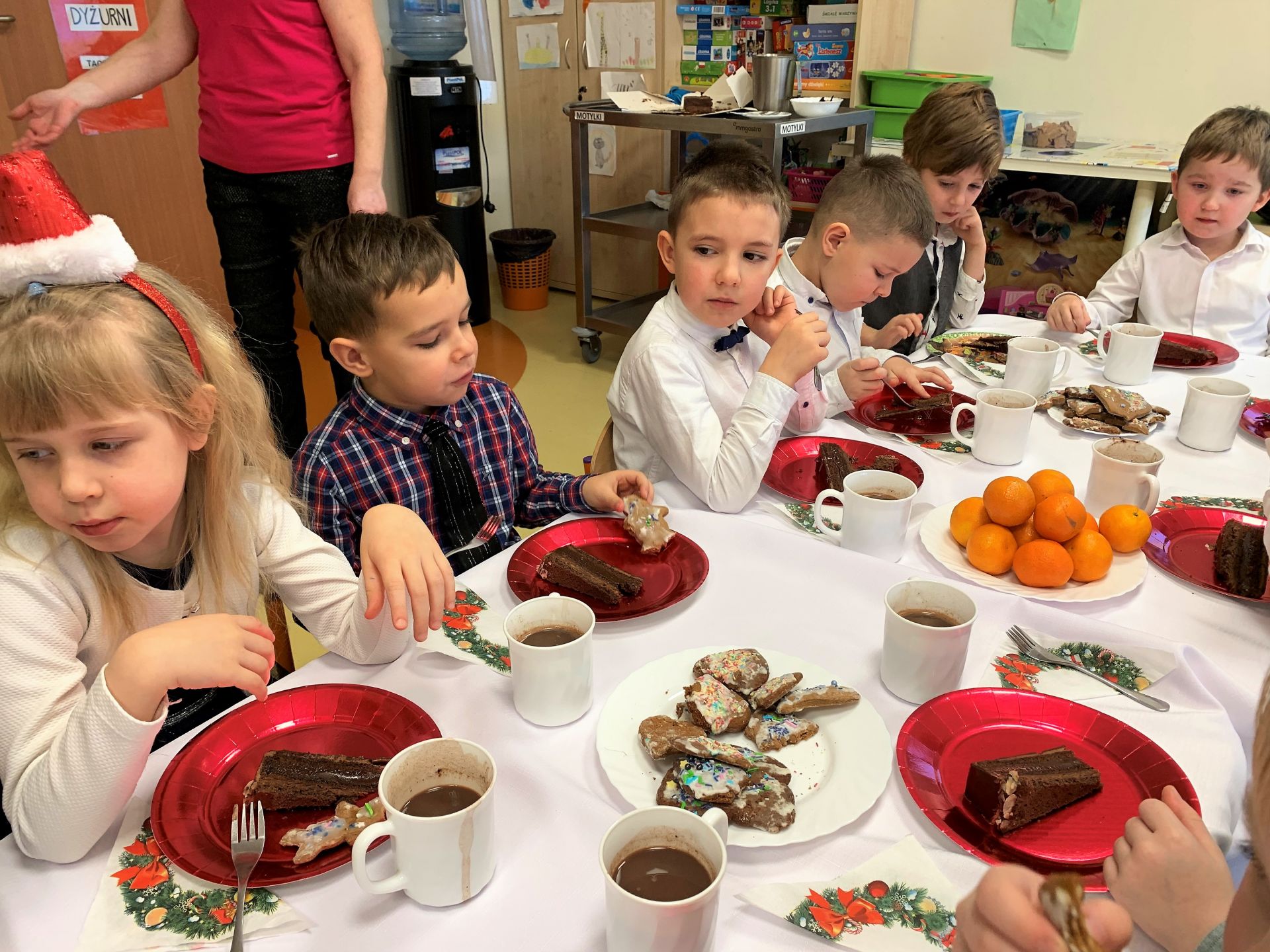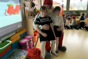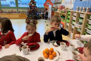 Dnia 18 grudnia 2020 r. dzieci z grupy Wiewiórek złożyły sobie świąteczne życzenia. Tego dnia odwiedził nas Święty Mikołaj z prezentami. Spotkanie zakończyliśmy słodkim poczęstunkiem przy świątecznym stole.
